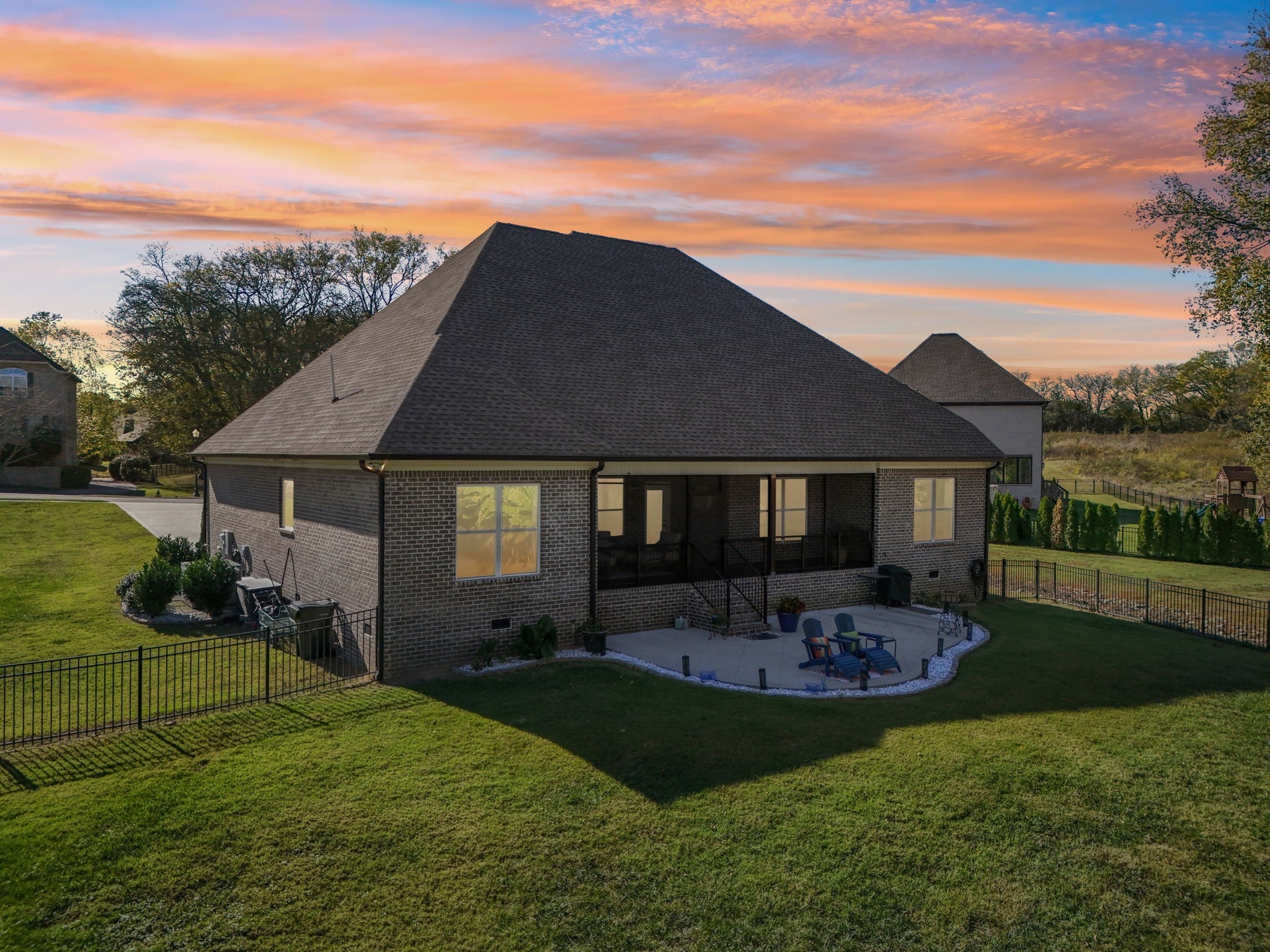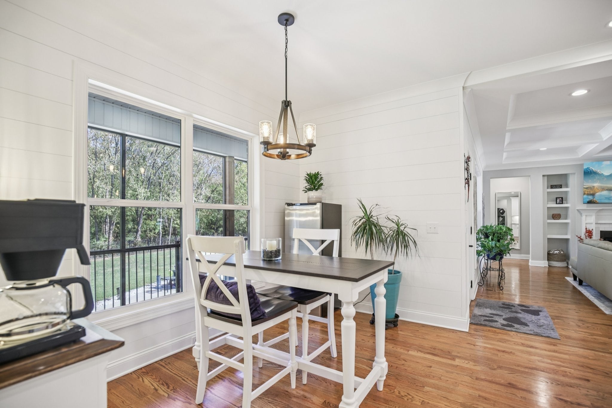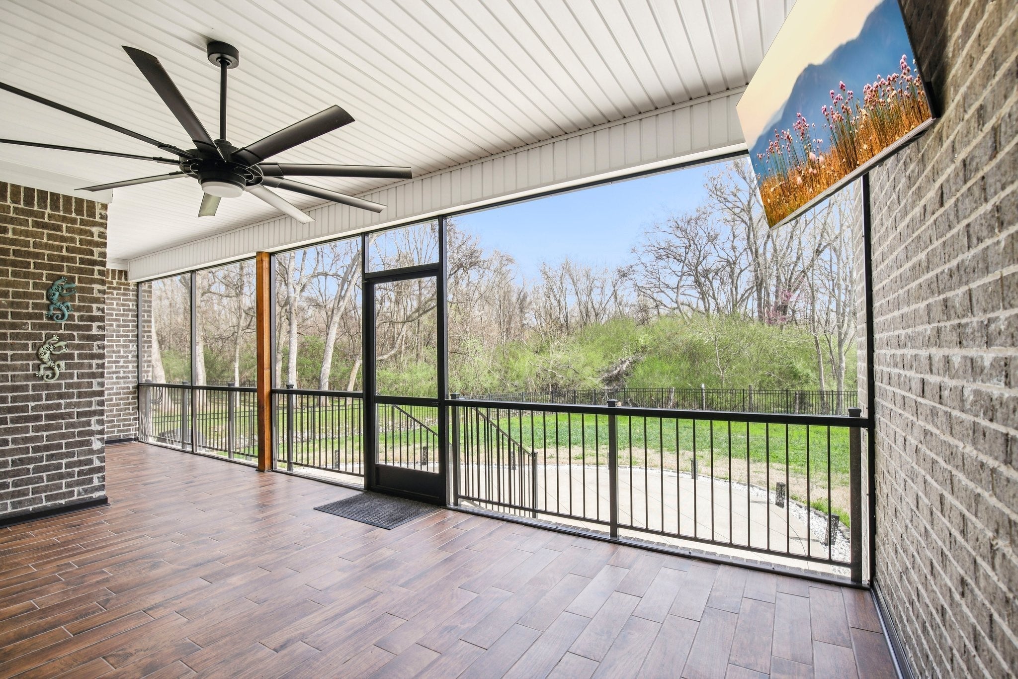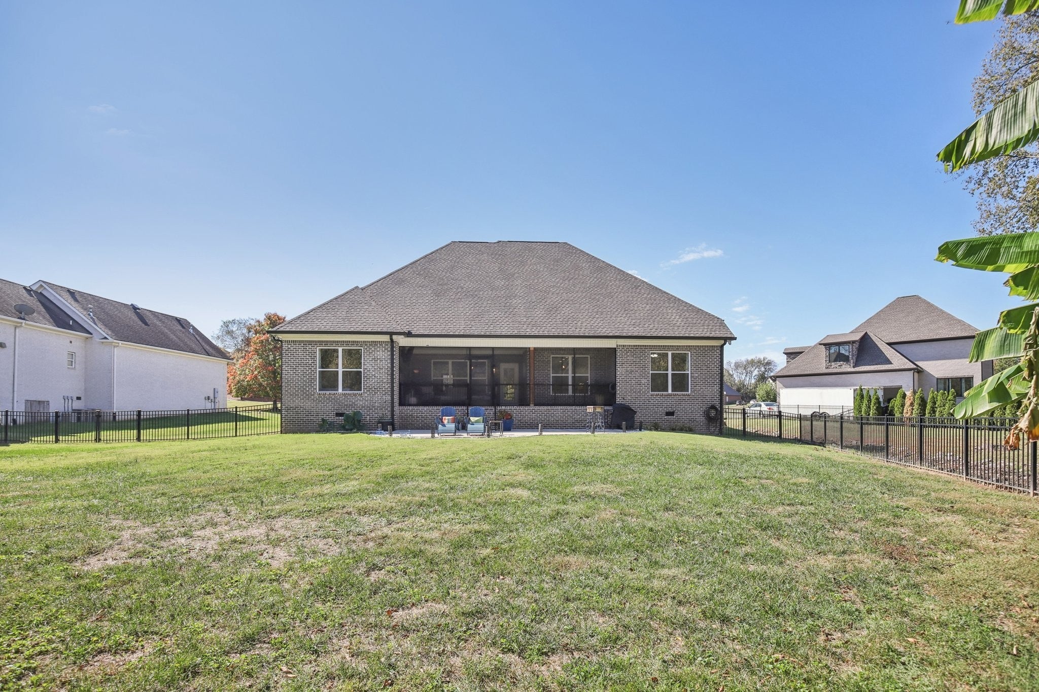 Step inside this gorgeous 3-bedroom, 3 full, 2 half bath home and be immediately impressed by premium details, including upgraded hardwood and tile flooring, custom built-ins, coffered ceilings, and custom closets throughout. The kitchen features a massive gathering island, bright white soft-close cabinetry, a gas cooktop, subway tile backsplash, upgraded Bosch appliances, and a sunny breakfast nook. All three bedrooms are conveniently located on the main level. The Primary Suite offers beautiful views, an ensuite with a standing tub, a large tiled shower with a glass enclosure, a dual vanity, and a massive walk-in closet with custom wood shelving. The two secondary bedrooms also boast large walk-in closets and private ensuite full bathrooms. Relax and enjoy the screened porch or patio overlooking the private, fenced yard, which backs directly to Corps of Engineers land, guaranteeing no rear neighbors. Property line extends to the second fence on the left side of the home. Additional features include a dedicated office, formal dining space, a great room with a cozy fireplace, a laundry room with built-in sink and cabinets, and an oversized 2-car garage measuring 30 by 23 feet, with plenty of room for garage cabinets or storing a golf cart for trips to the nearby golf course or neighborhood restaurants. Upstairs, the spacious bonus room with an attached half bath offers flexible space that could easily serve as a fourth bedroom and provides attic access for extra storage. Lovingly maintained and thoughtfully updated, this home is ready for its new owner. Schedule a tour today to see it in person.
