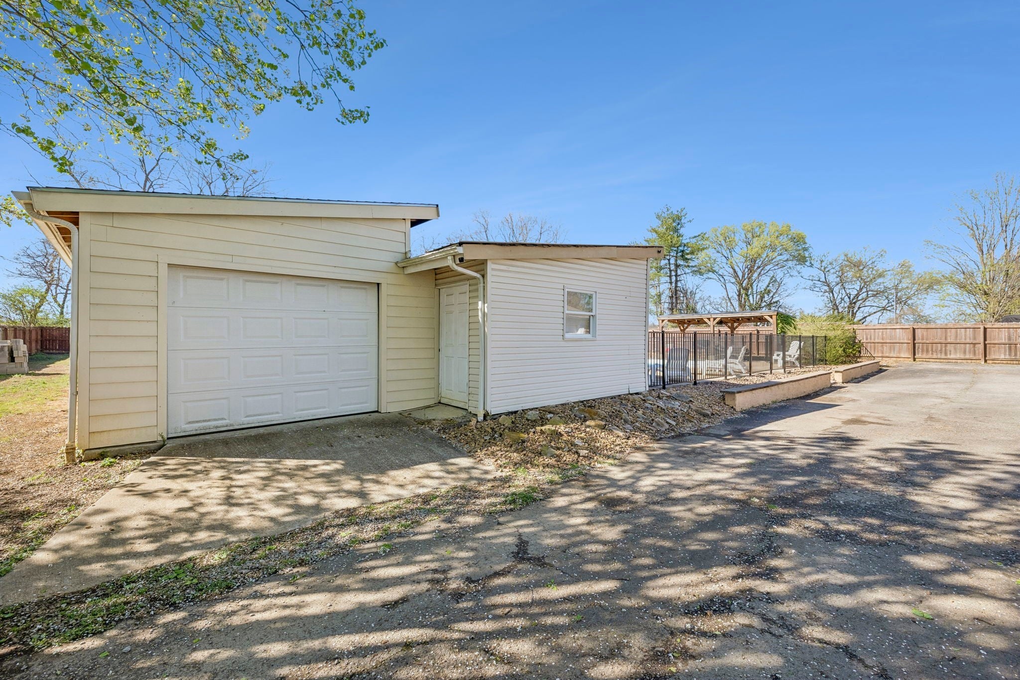 Located less than half a mile from Drake’s Creek Marina, Sanders Ferry Park, and the Old Hickory boat ramp, this property offers the perfect blend of convenience, recreation, and space. Sitting on nearly an acre and fully enclosed with a privacy fence, the backyard is truly a dream; featuring an in-ground POOL, multiple beautiful seating areas, and a charming pergola. The spacious primary suite is on the ground level and includes new flooring, new paint, a private living room, an updated vanity, and extra closet space. All hardwood, tile and LVP, no carpet here! A two-car attached garage provides everyday convenience, while the detached drive-thru garage with updated electrical and a pool house offer endless possibilities: gym, man cave, workshop, she-shed, or just additional storage! HVAC & Water Heater ~2 Years Old. *City is currently completing the new sidewalk and driveway along the side yard.
