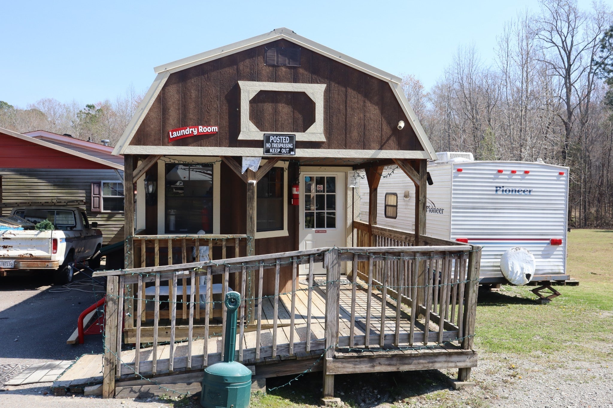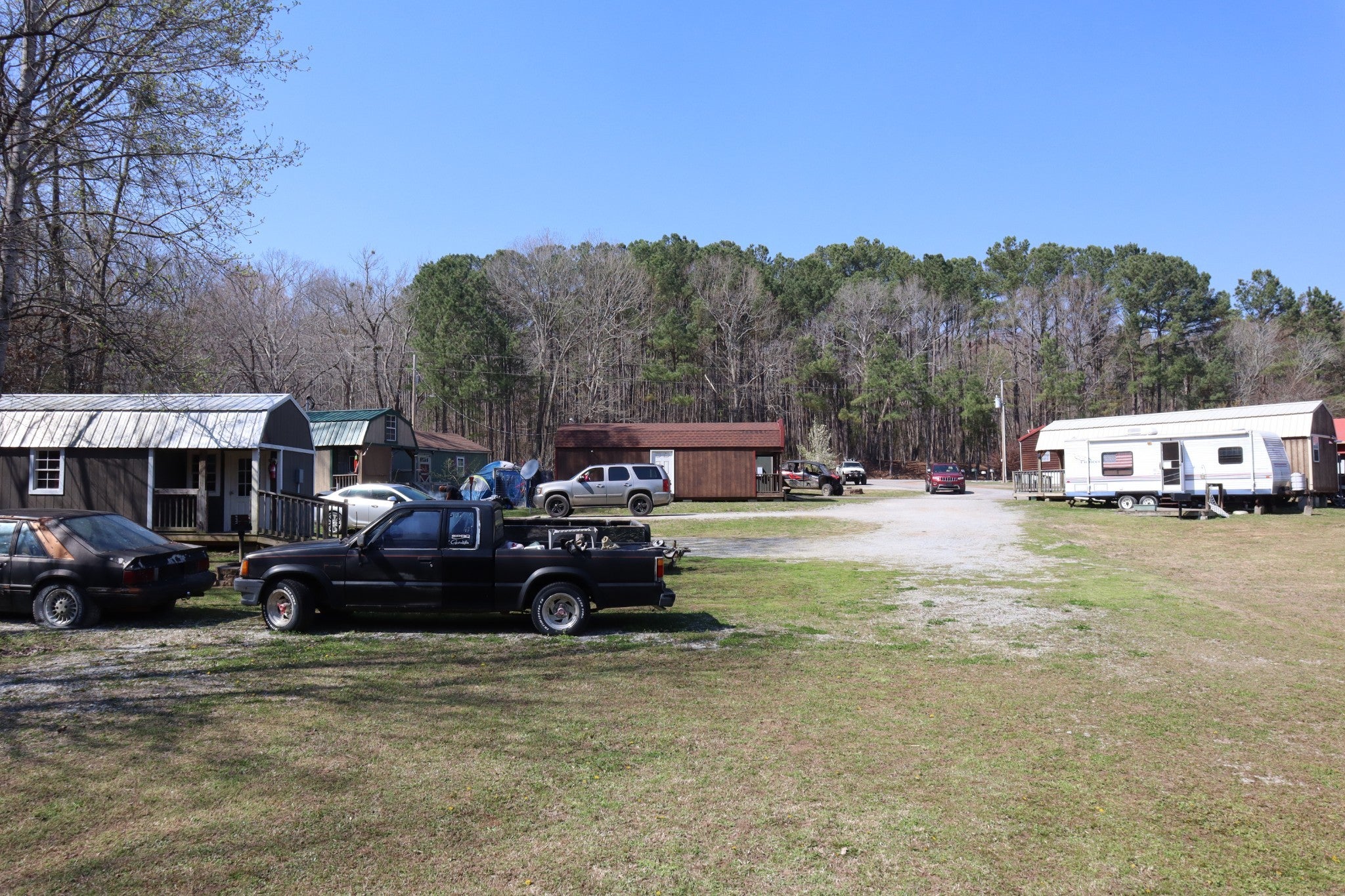 Income-generating campground property located in an unincorporated area just minutes from multiple boat ramps. The property features one double-wide mobile home, three cabins, four designated RV/camping sites, a bathhouse, and a laundry building equipped with three washers and three dryers. Additional improvements include a storage shed and a garage shed. The property is leased year-round, offering steady income and an excellent opportunity for investors seeking a turnkey recreational rental property. Buyer and buyer's agent to verify all information. Do not disturb tenants without approval from the listing agent.