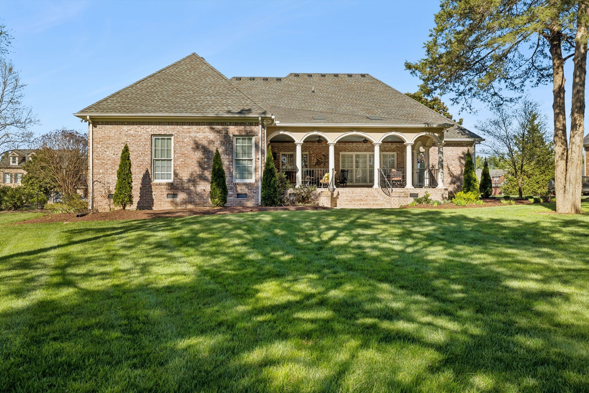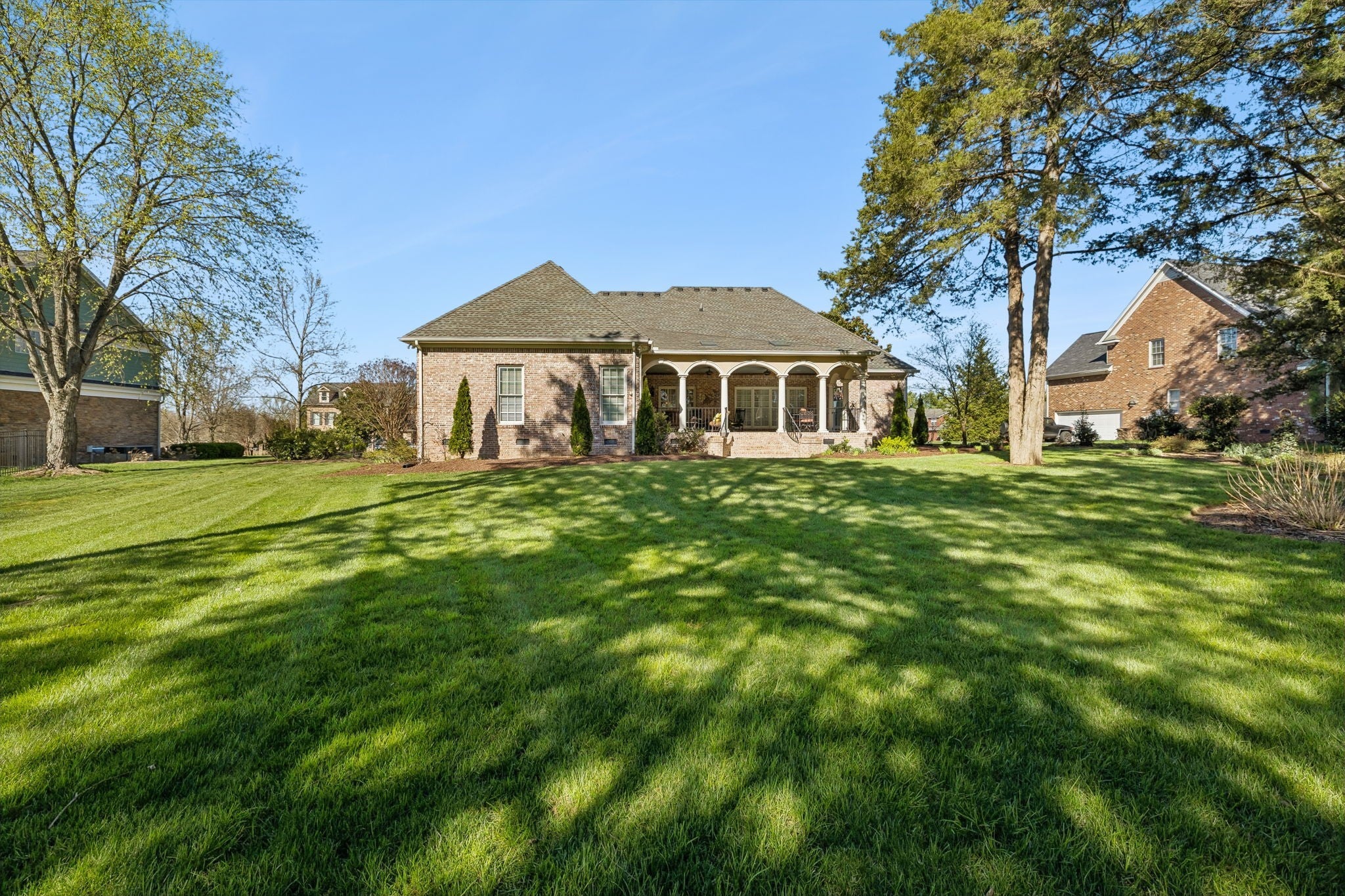 Luxury, space, and timeless craftsmanship come together in this stunning custom 4-bedroom, 3-bath home in highly sought-after Murfreesboro, perfectly positioned on a beautifully landscaped 0.67 acre private lot with lush green surroundings and a privacy fence. From the moment you enter the welcoming foyer, rich hardwood floors and elegant built-in features set the tone for refined yet comfortable living. The heart of the home showcases a warm two-sided fireplace connecting the inviting living room and sunroom, creating the perfect atmosphere for relaxing or entertaining year-round. The thoughtfully designed kitchen offers custom cabinetry, recessed lighting, and a seamless eat-in layout alongside both a formal dining room and breakfast space - ideal for everything from casual mornings to memorable gatherings. The spacious primary suite is a true retreat featuring granite double vanities, a soaking tub, separate shower, and a generous walk-in closet, while two additional bedrooms and a full bath on the main level offer convenient living. Upstairs, a private bedroom with full bath and walk-in closet provides flexible space for guests, a home office, or a creative studio, along with an expansive bonus room complete with wet bar and built-in entertainment center. I would say "Step outside to a spacious Tuscan-inspired covered patio, complete with stunning tile flooring. This is the perfect space to spend your summer evenings for outdoor dining, entertaining, and quiet relaxation while overlooking the beautifully maintained yard. A side-entry 3-car garage and extended driveway offer ample parking and convenience. Located just minutes from Middle Tennessee State University and the charm of historic downtown Murfreesboro, with easy access to shopping, dining, and top local amenities, this exceptional Rutherford County home blends upscale comfort with everyday accessibility. Schedule your private showing and experience the lifestyle this remarkable property has to offer.