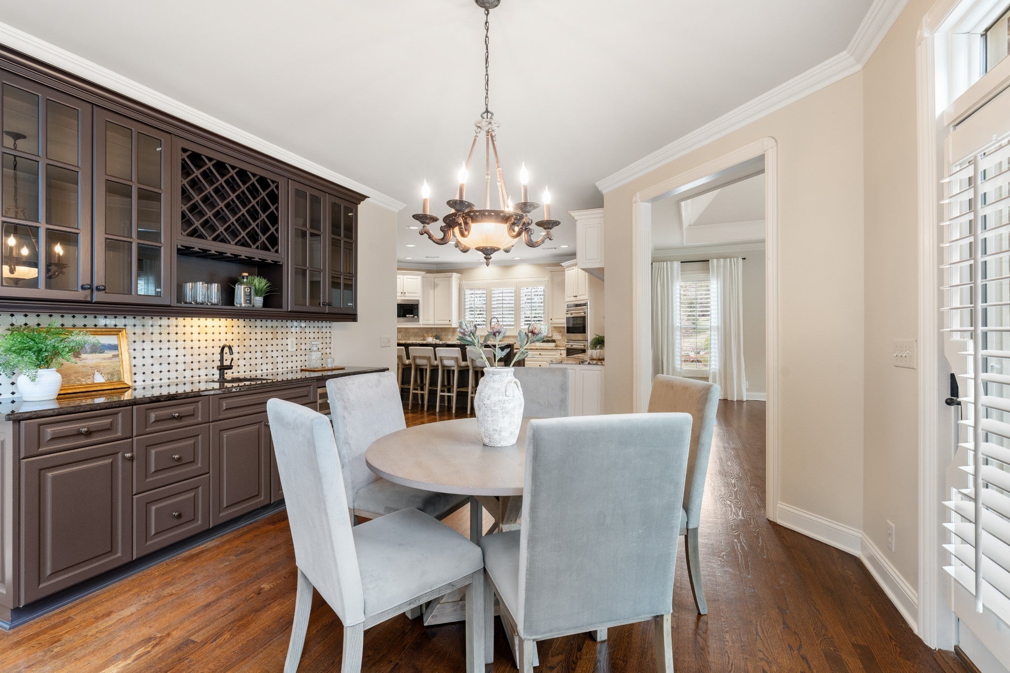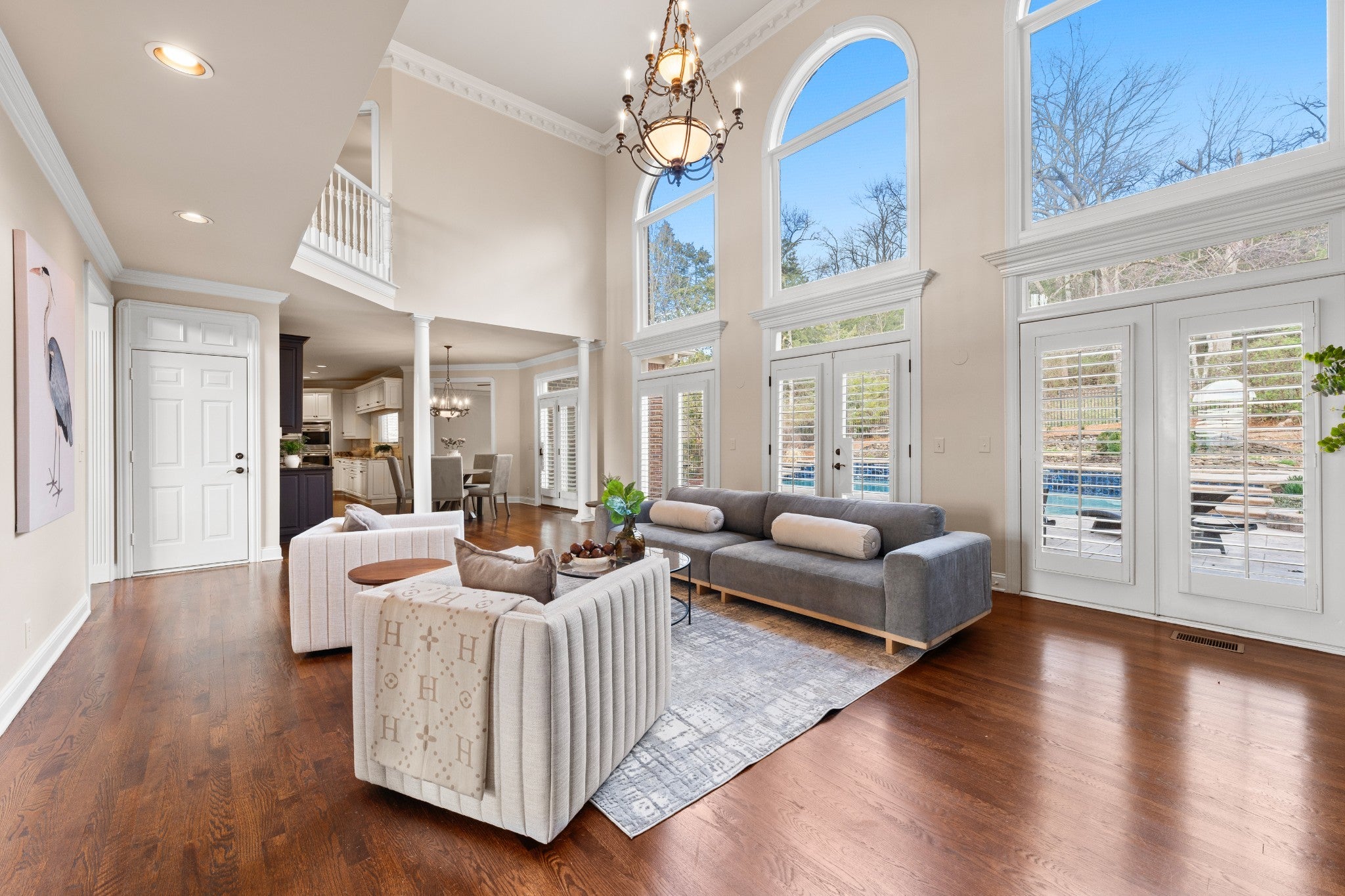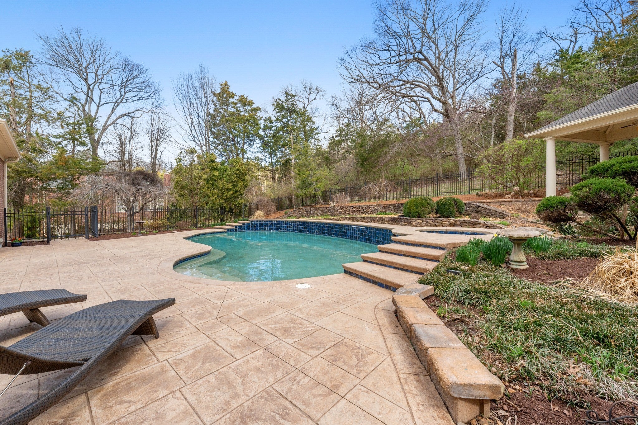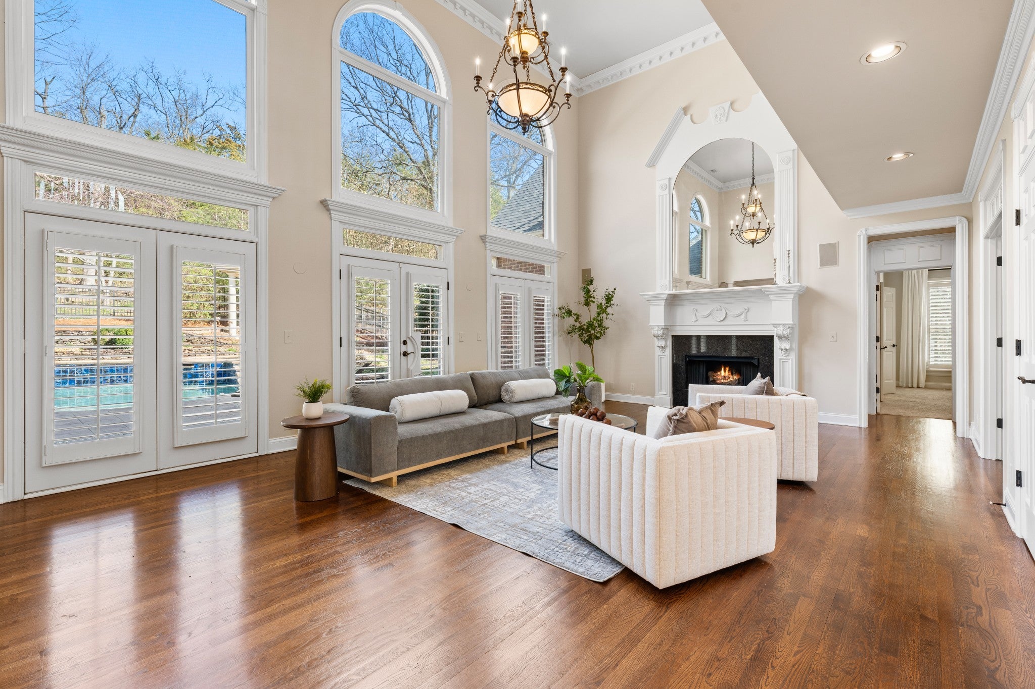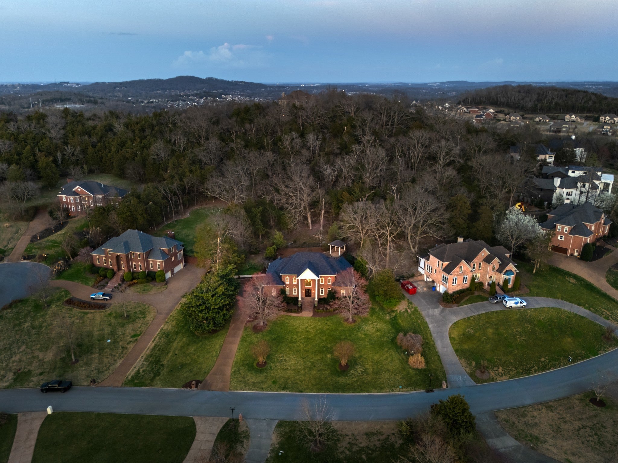 Set on one of only 16 estate lots in Brentwood's hilltop enclave of Chevoit Hills, this custom all-brick residence offers timeless elegance and exceptional indoor-outdoor living on 1 acre. The main level showcases a spacious primary retreat with a beautifully updated spa-inspired bath featuring quartz countertops, a soaking tub, and separate walk-in closets. Each additional bedroom offers its own private ensuite bath, providing comfort and privacy for family and guests alike. Designed for both everyday living and entertaining, the chef’s kitchen is appointed with a Sub-Zero refrigerator, Wolf 5-burner gas cooktop, new microwave, abundant white cabinetry, and granite countertops. The adjoining breakfast nook features custom built-in cabinetry and a wet bar for added convenience. Dual staircases offer both a grand front staircase and a secondary rear staircase for everyday functionality. Sophisticated architectural details including crown molding and plantation shutters are found throughout the home, while the expansive living room offers a warm gathering space centered around a gas fireplace.The fully finished basement provides additional living and recreation space, complete with a second gas fireplace and pool table area. The saltwater pool and hot tub create a private backyard retreat, enhanced by multiple recent upgrades to the pool’s mechanical systems. Additional highlights include a spacious three-car garage, central vacuum system, and a convenient dumbwaiter connecting the garage to the main floor laundry room. New roof (2023), new HVAC (2022) and tankless hot water heater. Most windows & exterior doors have been replaced. HOA is $150/year.