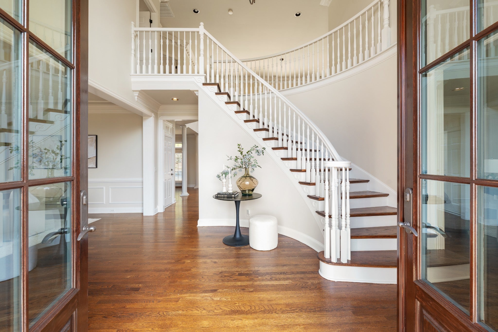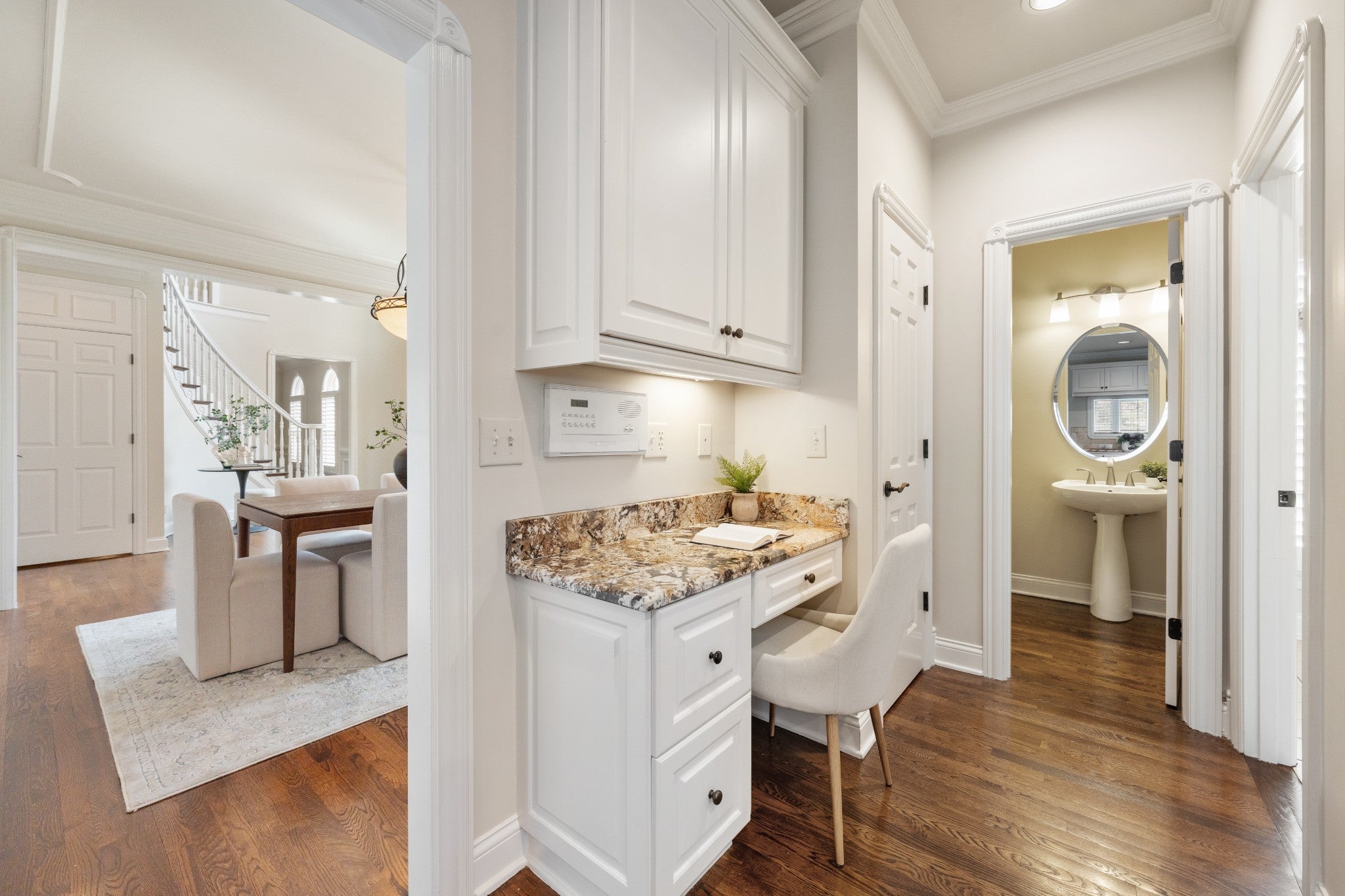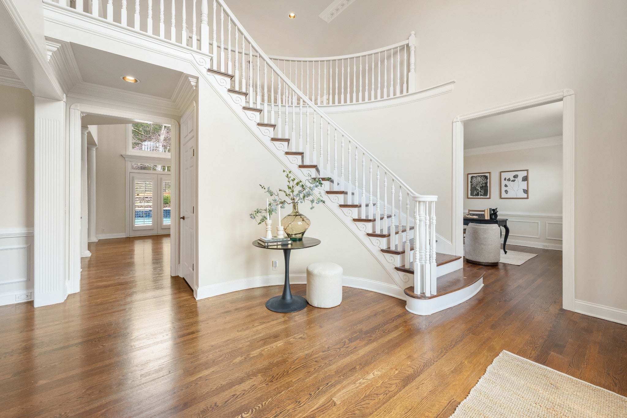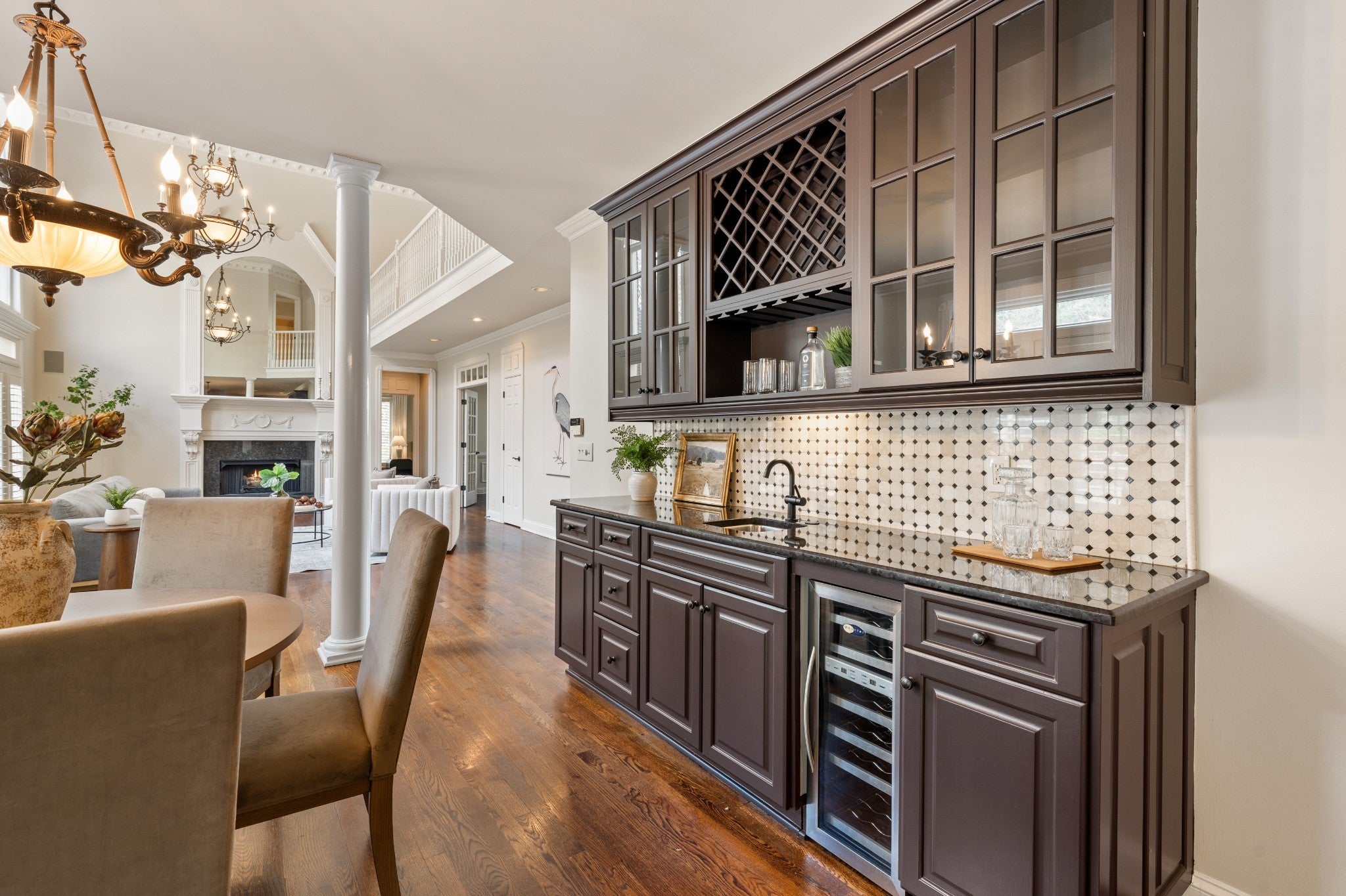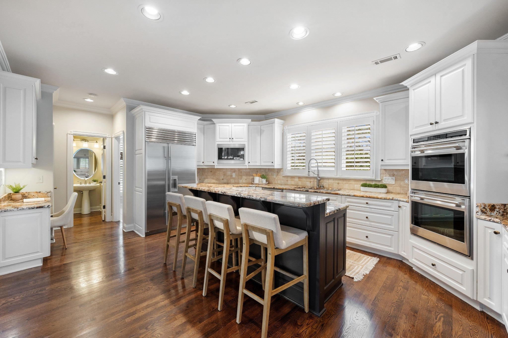 Set on one of only 16 estate lots in Brentwood's hilltop enclave of Chevoit Hills, this custom all-brick residence offers timeless elegance and exceptional indoor-outdoor living on 1 acre. The main level showcases a spacious primary retreat with a beautifully updated spa-inspired bath featuring quartz countertops, a soaking tub, and separate walk-in closets. Each additional bedroom offers its own private ensuite bath, providing comfort and privacy for family and guests alike. Designed for both everyday living and entertaining, the chef’s kitchen is appointed with a Sub-Zero refrigerator, Wolf 5-burner gas cooktop, new microwave, abundant white cabinetry, and granite countertops. The adjoining breakfast nook features custom built-in cabinetry and a wet bar for added convenience. Dual staircases offer both a grand front staircase and a secondary rear staircase for everyday functionality. Sophisticated architectural details including crown molding and plantation shutters are found throughout the home, while the expansive living room offers a warm gathering space centered around a gas fireplace.The fully finished basement provides additional living and recreation space, complete with a second gas fireplace and pool table area. The saltwater pool and hot tub create a private backyard retreat, enhanced by multiple recent upgrades to the pool’s mechanical systems. Additional highlights include a spacious three-car garage, central vacuum system, and a convenient dumbwaiter connecting the garage to the main floor laundry room. New roof (2023), new HVAC (2022) and tankless hot water heater. Most windows & exterior doors have been replaced. HOA is $150/year.