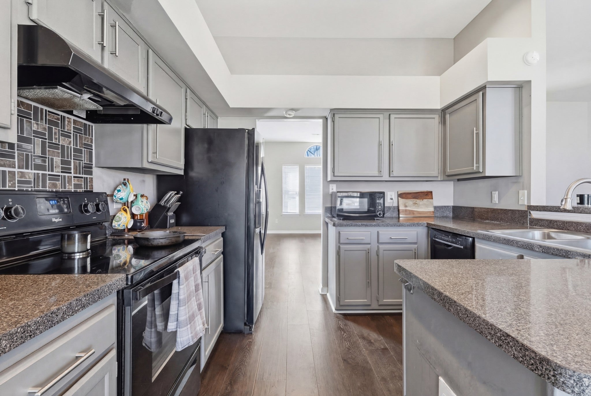 - Electric Oven, Cooktop, Dishwasher, Disposal, Dryer, Microwave, Refrigerator, Washer