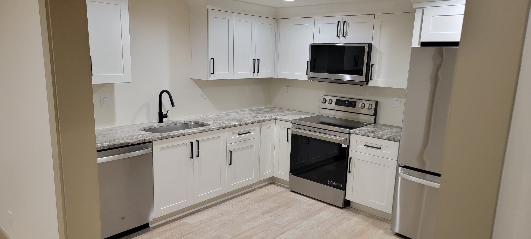 - Built-In Electric Oven, Built-In Gas Range, Dishwasher, Disposal, Microwave, Refrigerator, Stainless Steel Appliance(s)
