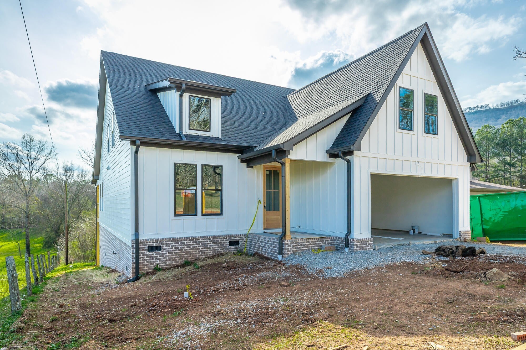 Just listed! The Cedar Creek, a stunning new construction home by FSH Construction in the highly desirable Red Bank community of Chattanooga. This prime location offers convenient access to downtown Chattanooga while being surrounded by scenic beauty, including views of Signal Mountain. Completion is anticipated by the end of April, presenting a rare opportunity to own a move-in-ready modern farmhouse masterpiece. The Cedar Creek floor plan masterfully blends elegant modern farmhouse design with functional, everyday living. The open-concept main level welcomes you with a covered entry that flows into a spacious great room featuring a cozy gas log fireplace with a custom wood mantel and shiplap surround, accentuated by impressive 14-foot vaulted ceilings for an airy, inviting feel. Seamlessly connected to the great room is a well-appointed kitchen ideal for entertaining, complete with a large work island offering casual seating, ample cabinetry, stainless steel appliances, and walk-in pantry. The main level features a primary suite, boasting a spacious bedroom and a spa-like ensuite bathroom with dual vanities, a separate soaking tub and tiled shower, private water closet, and an expansive walk-in closet. Also on the main floor, a versatile office (or potential fourth bedroom) with vaulted ceiling provides flexible space, conveniently served by a full guest bathroom. The spacious entry foyer welcomes with a shiplap accent wall and opens to the adjacent office/flex. The owner's entry from the garage includes a practical mud room with bench, and an oversized laundry room for added everyday convenience. Upstairs, two additional bedrooms feature expansive closets, a full bath, and a finished bonus room that offers more versatile living space. Direct walk-out attic access from the hallway provides excellent storage or future expansion potential.