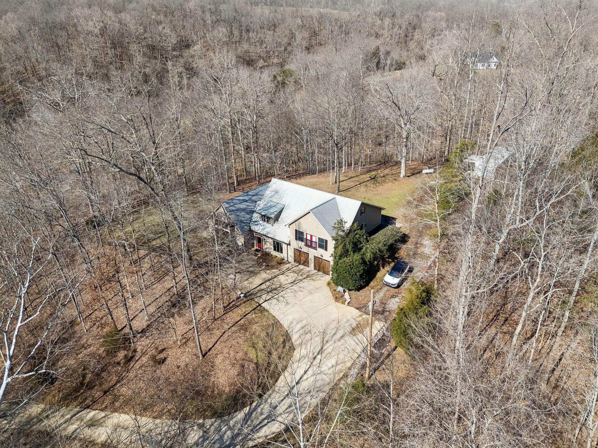 Tucked away on a scenic 4.28-acre hilltop, minutes from Hwy 100, this custom-built home offers the rare combination today’s buyers are searching for — privacy, space, and high-speed connectivity within reach of Nashville. 55 miles to downtown via Hwy 100 – approximately 1 hour. With 4 bedrooms and 3,980 sq ft of living space (4,580 under roof), the home was thoughtfully designed for both everyday comfort and modern work-from-home lifestyles. Step inside to a dramatic Great Room with an 18' ceiling, warm pine tongue-and-groove detail, and a striking stone fireplace that anchors the heart of the home. Large casement windows fill the space with natural light and capture the peaceful hilltop surroundings. The kitchen features custom maple and cherry cabinetry, granite countertops, and a Butler’s Pantry, blending craftsmanship with practical design for entertaining and daily living. For remote professionals, the home includes a dedicated office/guest suite with high-speed fiber internet, allowing you to work productively while enjoying the calm of country living. The private Primary Suite feels like its own retreat, highlighted by a 12-foot ceiling, pine T&G accents, and oversized walk-in closets with exceptional storage. Upstairs, two spacious bedrooms share a Jack-and-Jill bath and enjoy the convenience of an upper-level laundry. Additional features include: • Exercise / game room • Covered patio and hot tub for relaxing evenings • Fenced side yard perfect for pets • 12’ x 40’ powered workshop ideal for hobbies or small business use • Finished, insulated 2-car garage with sink and ductwork ready • Energy-efficient construction with 2x6 exterior walls, spray foam insulation, dual-fuel HVAC, and zoned water heaters Whether you’re working remotely, commuting occasionally to Nashville, or simply looking for a peaceful place to recharge, this hilltop hideaway delivers space, privacy, and craftsmanship in a setting that feels miles away from everything — yet close to it all.