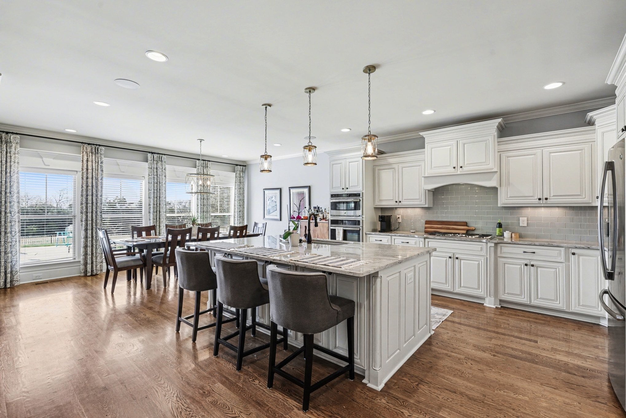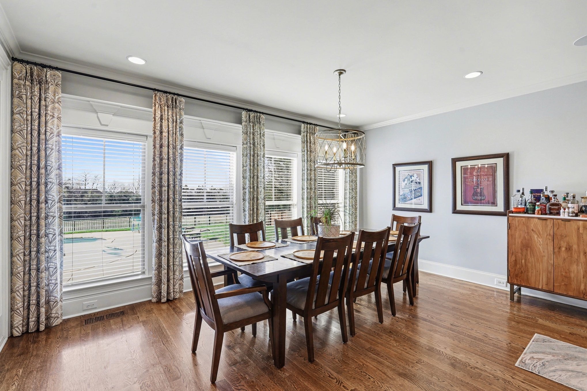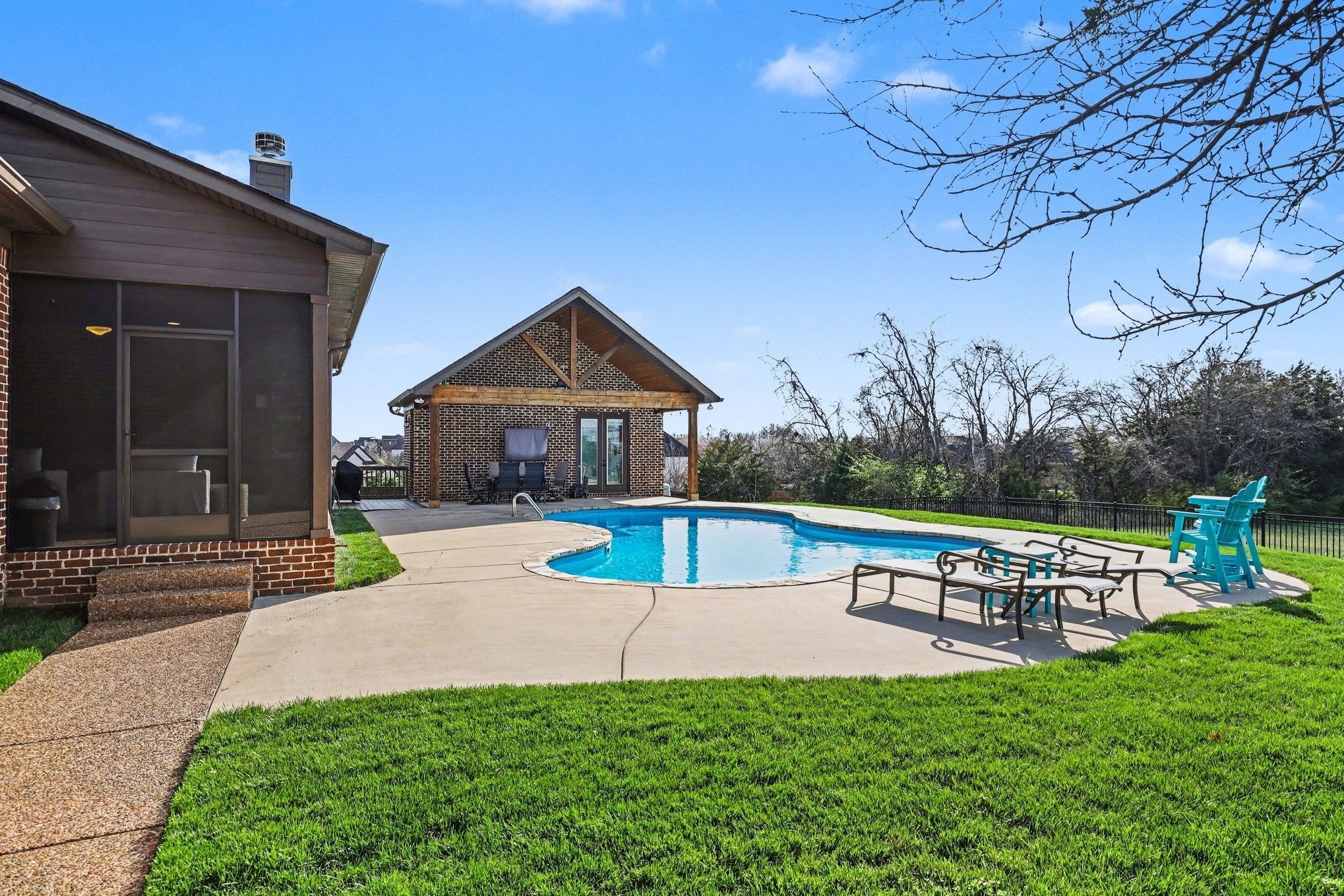 From the moment you arrive, the lush landscaping and beautifully maintained yard set the tone for this stunning property! Situated on nearly half an acre, this 4-bedroom home offers 3 full baths, 2 half baths, plus an additional half bath in the pool house. Enter your private backyard oasis featuring a sparkling pool, inviting pool house, and covered patio with a cozy wood-burning fireplace—perfect for relaxing or entertaining year-round. The main level includes a spacious owner’s suite, an additional bedroom with full bath, and a dedicated office. Upstairs offers two bedrooms, 1.5 baths, and a large flex space ideal for a media room, playroom, or workspace. Inside, hardwood floors on the main, coffered ceilings, and a warm gas fireplace add charm, while additional highlights include a whole-home water softener, irrigation system, and a 3-car garage with extra driveway parking. Conveniently located minutes from shopping, dining, and local events.