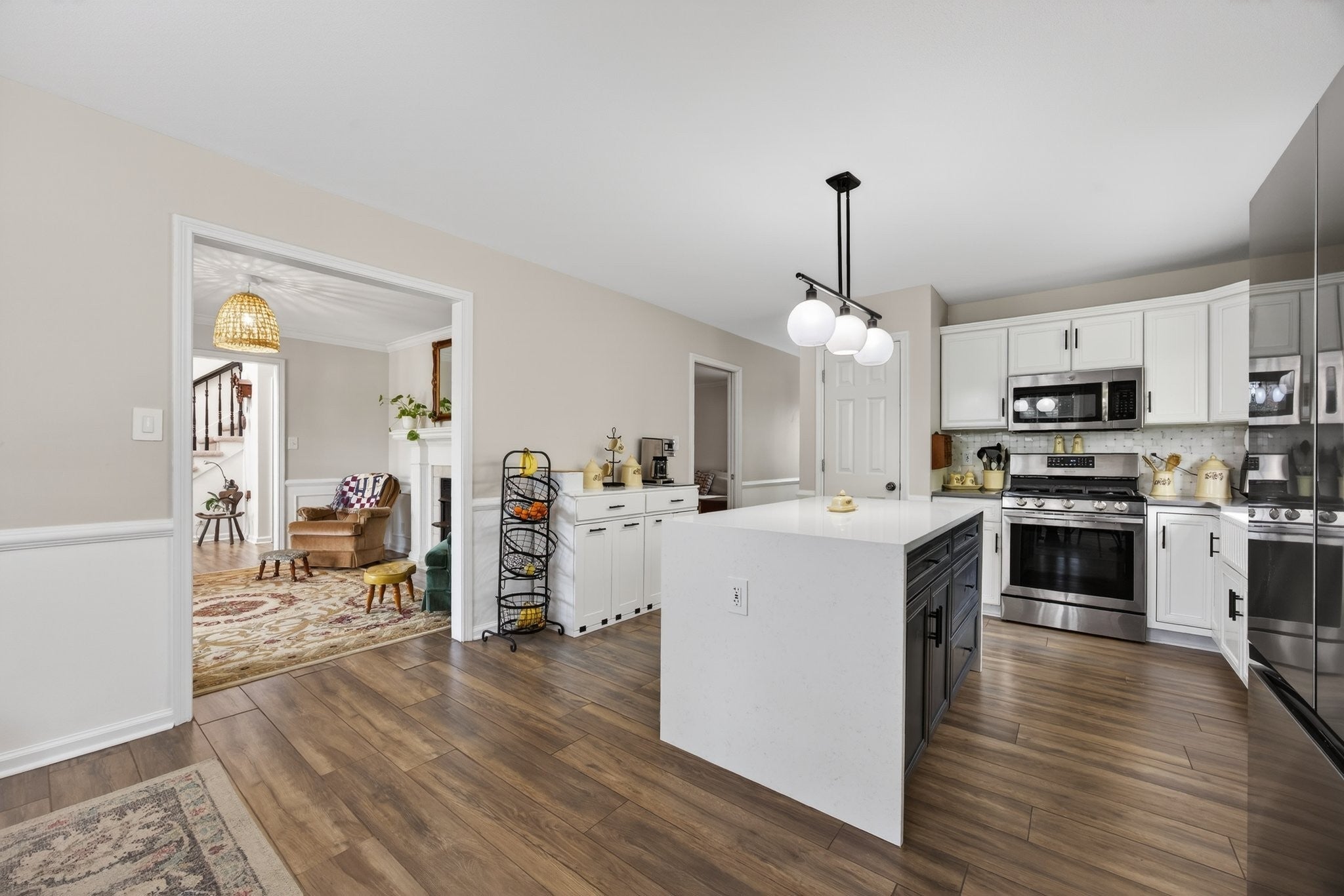 - Gas Oven, Gas Range, Dishwasher, Disposal, Microwave, Refrigerator, Stainless Steel Appliance(s)