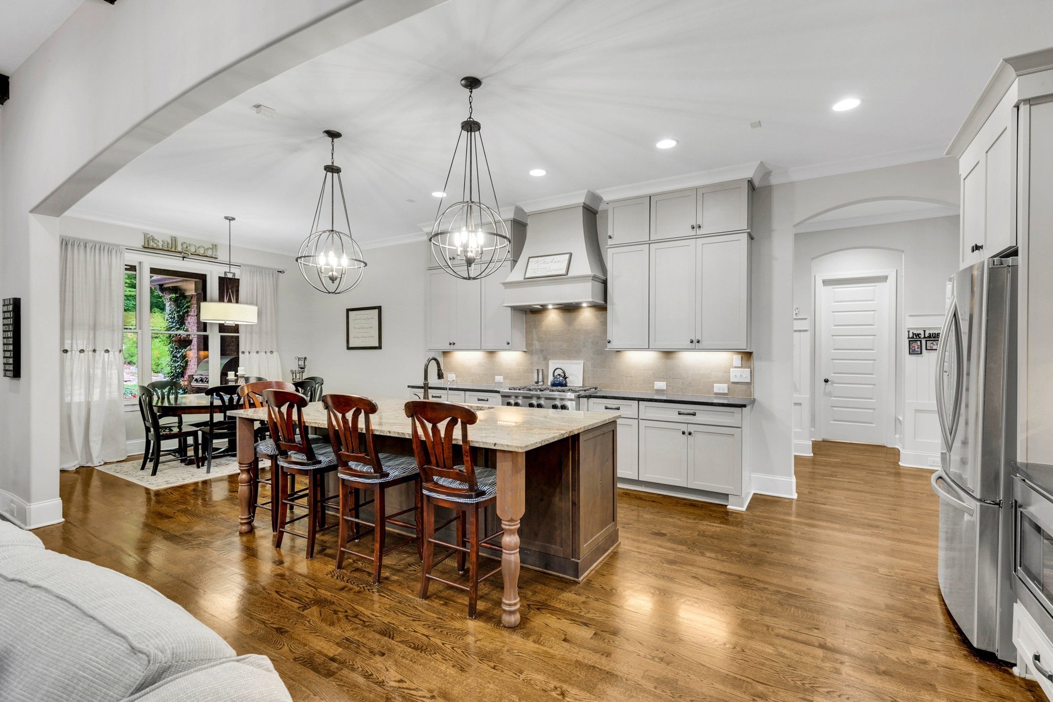 - Double Oven, Gas Range, Dishwasher, Disposal, Microwave