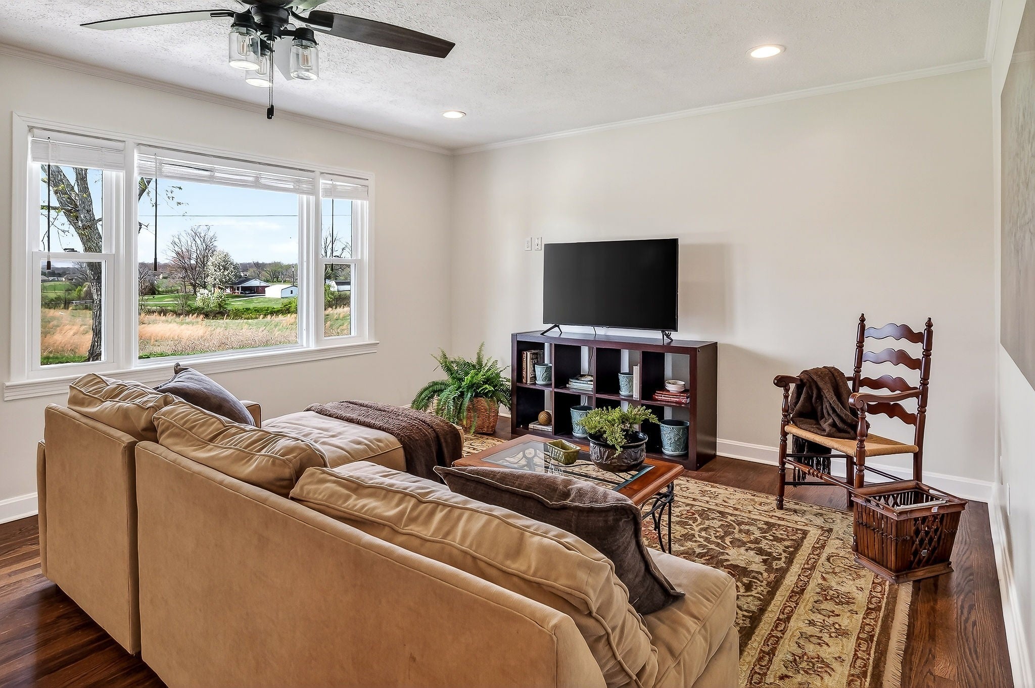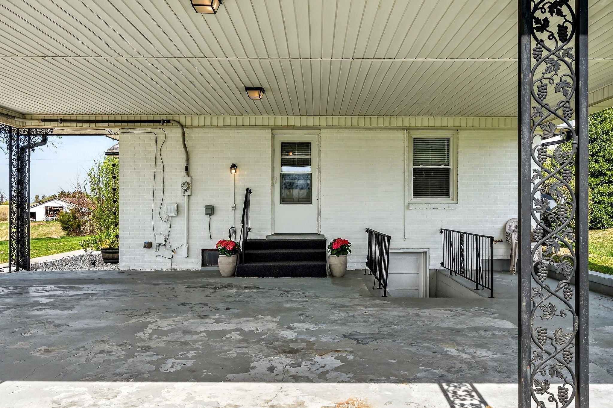 If you’ve been searching for a home that feels warm, welcoming, & is completely move-in ready, this beautifully remodeled brick home on a level lot may be the perfect fit! Solid hardwood floors greet you & flow into the spacious, light-filled living room, creating an inviting place to gather with family & friends. The updated kitchen features quartz countertops, a gas range, floating open shelving, & a large island. The primary suite offers a walk-in closet & a beautiful bath with a zero-entry tile shower, while the hall bath includes a double vanity & tiled tub surround. Outside, enjoy relaxing in the gazebo, a large side yard, & peaceful views of picturesque farmland. You could install a grill at the gas line under the carport. Recent 2026 updates include fresh interior paint, landscaping, new kitchen island, new primary shower glass, partial roof repair, kitchen screen door, solar uplighting & landscaping. HVAC replaced April 2021 and plumbing updated to pex. This one is a must see!