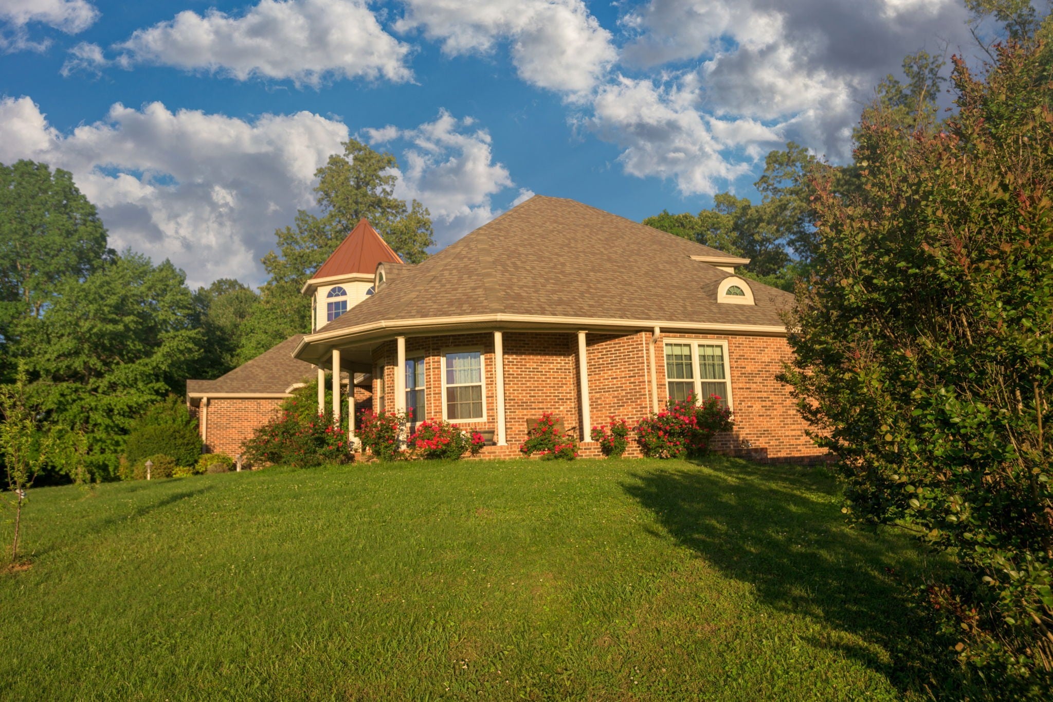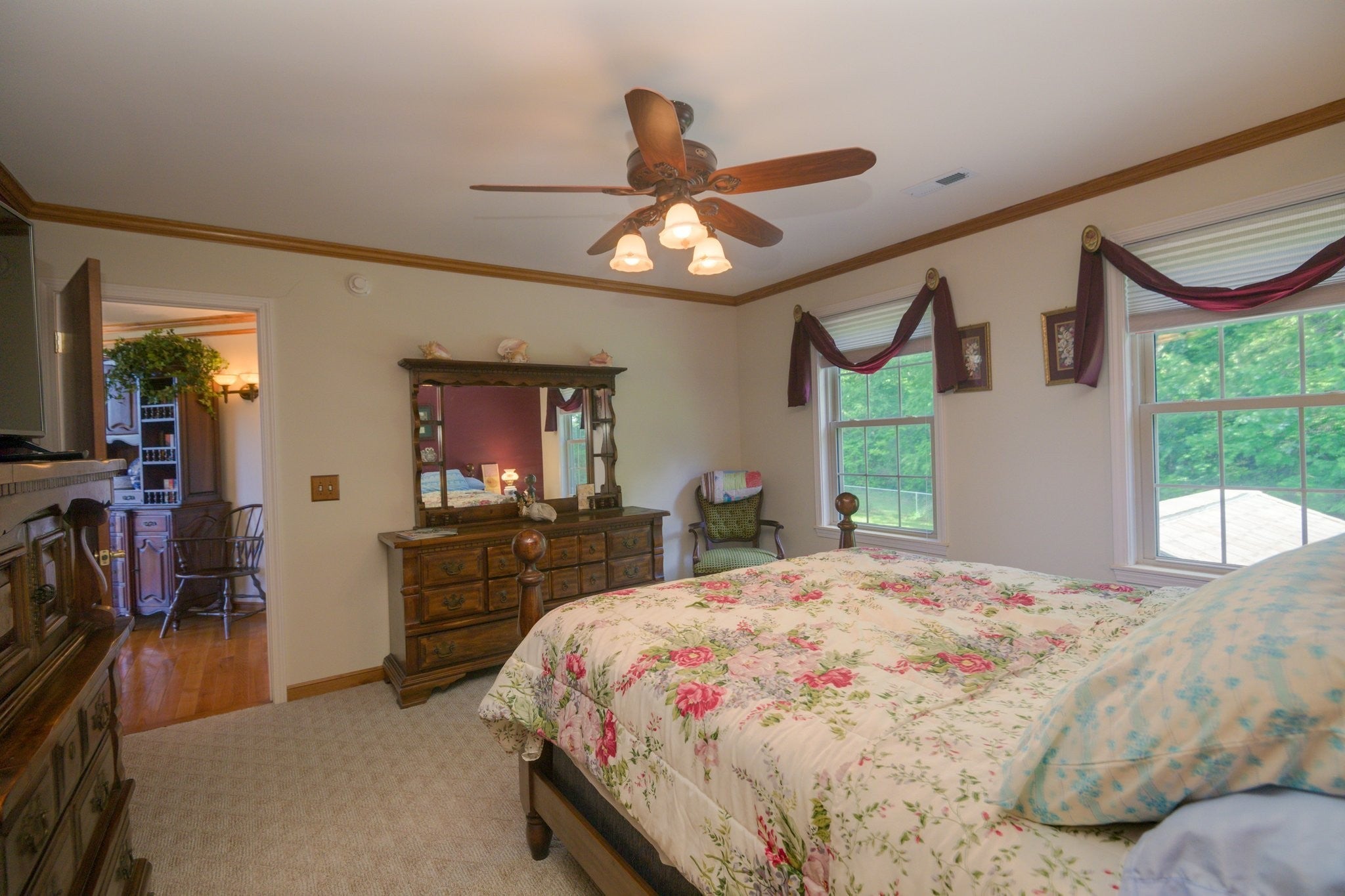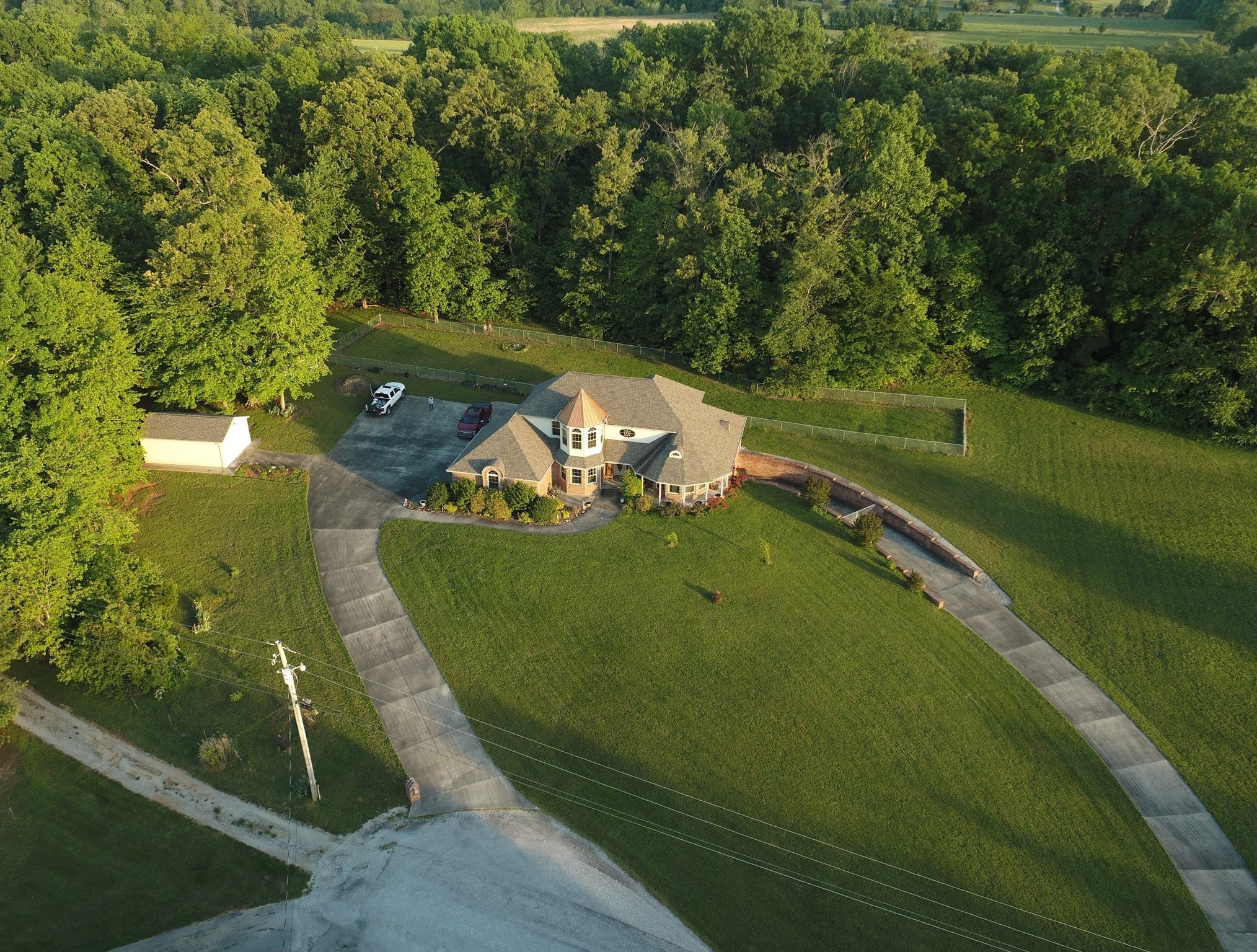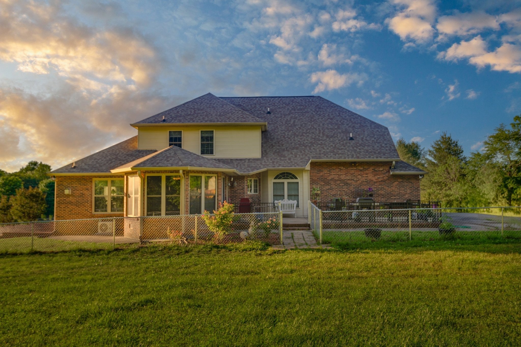 Beautiful 4 bedroom, 4 bathroom custom-built home nestled in a peaceful country setting on approximately 5.04 acres. This spacious home features vaulted ceilings and a blend of hardwood, carpet, and vinyl flooring throughout. All windows have been replaced and have transferrable warranties as well as all new LED lighting and new HVAC. The kitchen includes a new stainless steel refrigerator, dishwasher, and oven, all installed within the last 8 months. The main level offers a spacious kitchen, primary suite, additional bedroom, formal dining room, sunroom or office space, and laundry room. The seller is also leaving the washer and dryer. Upstairs you’ll find two additional bedrooms and a full bath, along with spectacular views from the home’s charming turret. The full basement offers approximately 1,800 square feet of heated and cooled additional space and includes an office and bathroom with a standing shower. A whole-home generator provides added peace of mind.