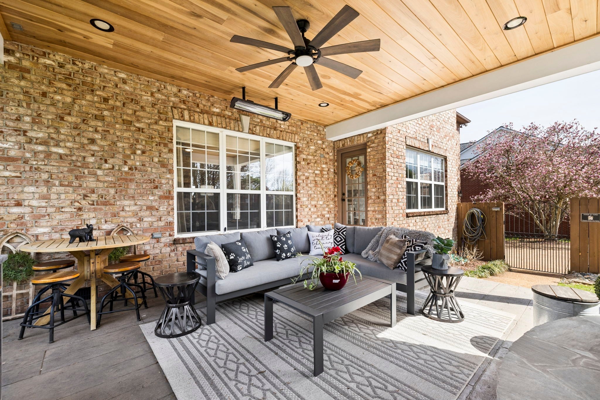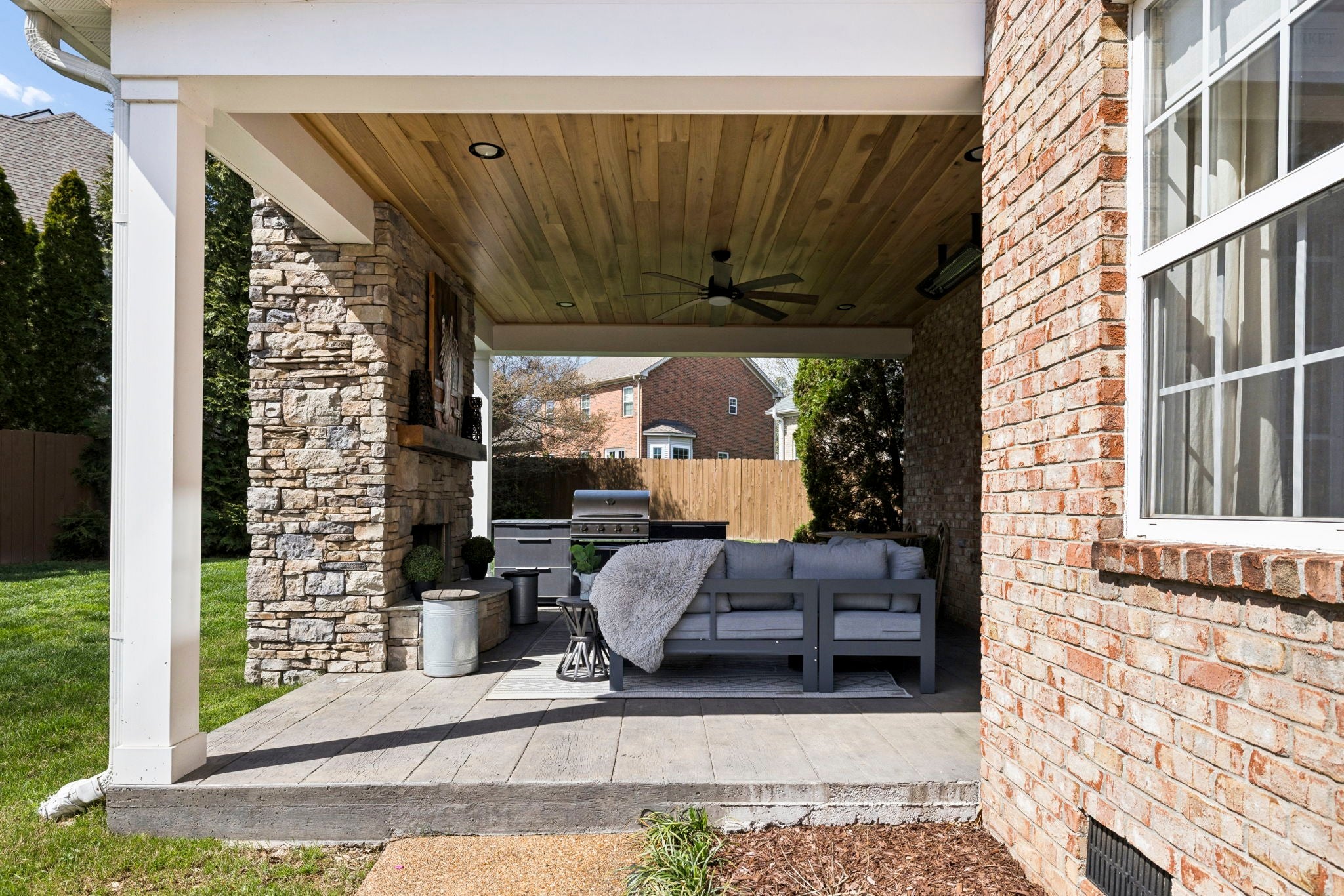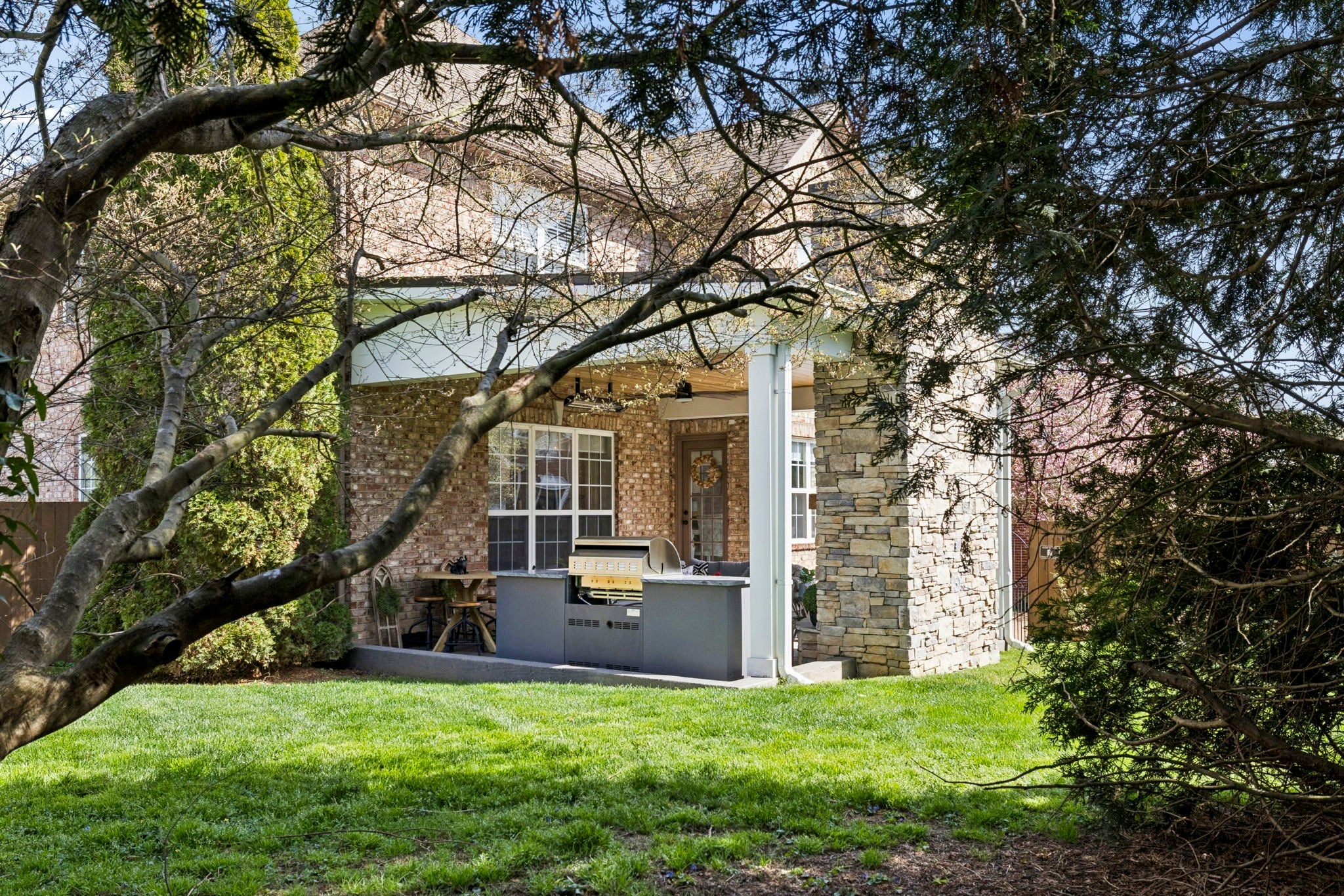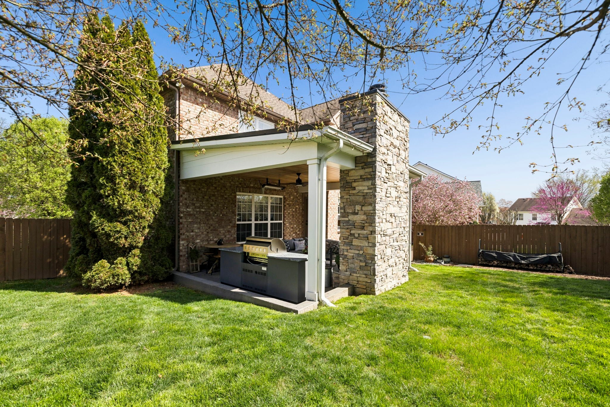 This beautifully updated brick home offers a welcoming blend of comfort, style, and thoughtful design. With 4 spacious bedrooms with generously sized closets and 2.5 baths, the interior feels both refreshed and inviting. New luxury vinyl plank flooring flows throughout, complementing the renovated kitchen and bathrooms that strike the perfect balance between modern finishes and everyday functionality. The kitchen stands out with sleek black stainless appliances, a gas range added by the current owners, and a nearly new microwave. Major updates provide added peace of mind—both HVAC units have been replaced in recent years, and Ecobee smart thermostats with remote access make it easy to maintain the perfect temperature from anywhere. A new roof is also scheduled to be installed (date to be confirmed), and the garage features a new motor, updated chains, remote access, and an exterior keypad for added convenience. Step outside to an outdoor living space designed for gathering and relaxation. The covered porch, built about three years ago, includes a cozy fireplace and an electric ceiling heater so you can enjoy the space year-round. A custom grilling station with built-in cabinetry, counters, and a high-end drop-in grill makes entertaining effortless. The sellers are open to leaving the grill setup with an acceptable offer. Additional highlights include a formal dining room, a dedicated home office, and a large stainless steel utility tub in the garage—perfect as a dog wash for small to medium pets. Every detail of this home reflects care and quality, offering a move-in-ready experience that combines comfort, convenience, and charm.