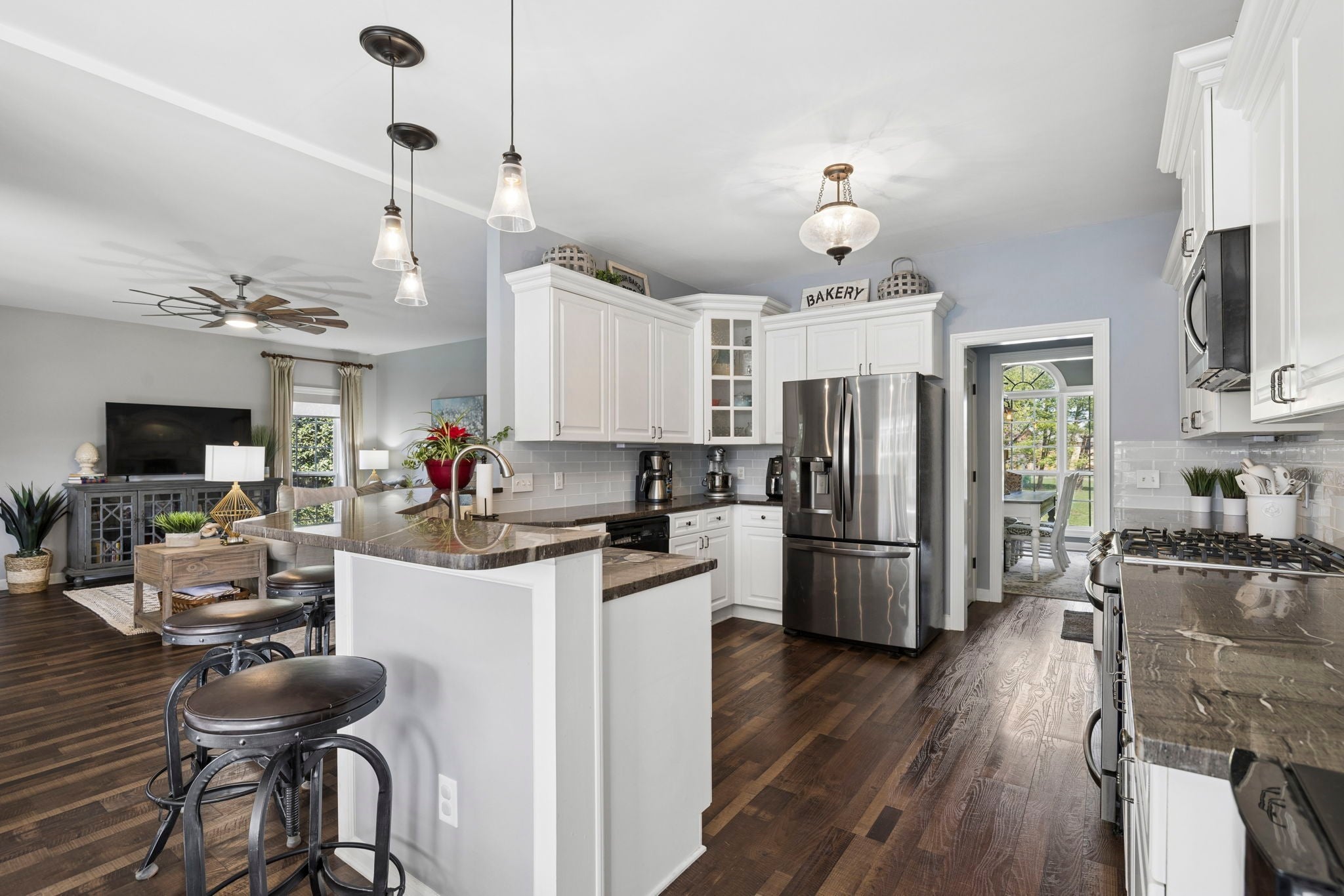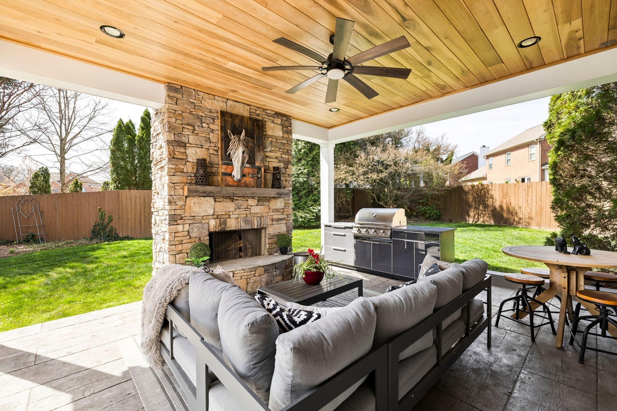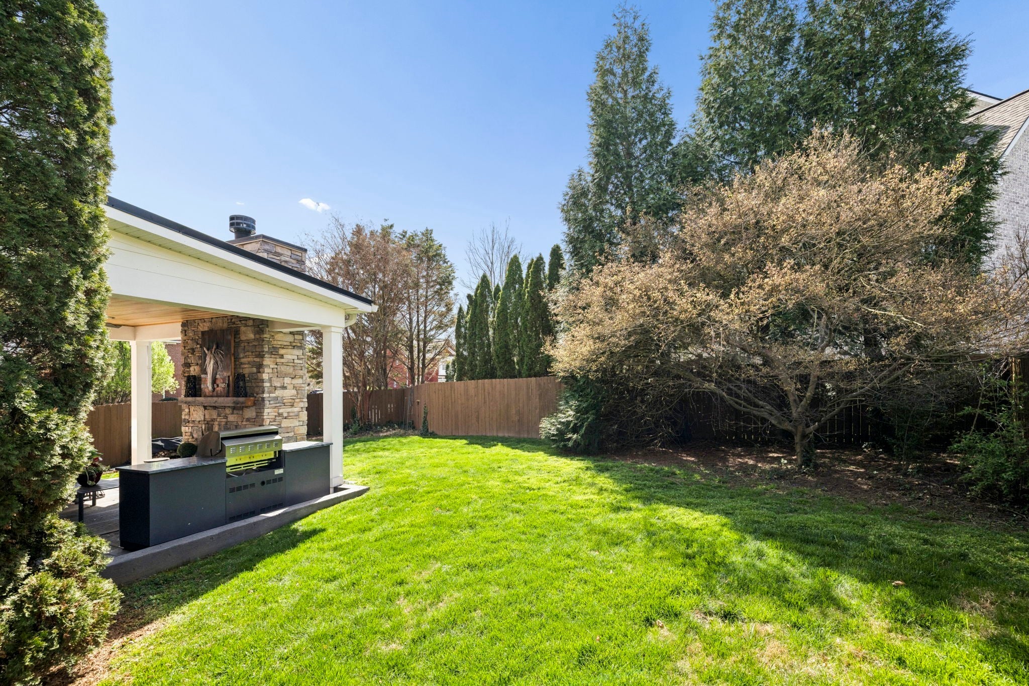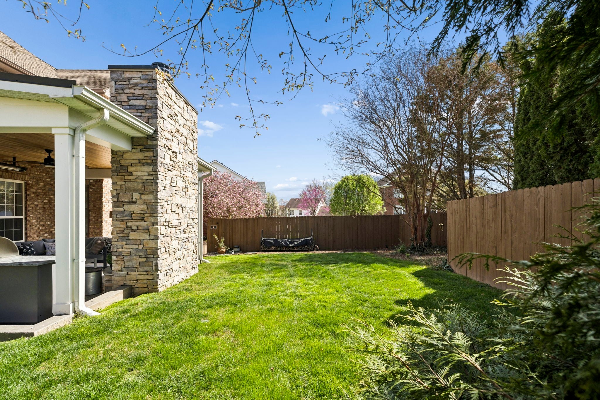 This beautifully updated brick home offers a welcoming blend of comfort, style, and thoughtful design. With 4 spacious bedrooms with generously sized closets and 2.5 baths, the interior feels both refreshed and inviting. New luxury vinyl plank flooring flows throughout, complementing the renovated kitchen and bathrooms that strike the perfect balance between modern finishes and everyday functionality. The kitchen stands out with sleek black stainless appliances, a gas range added by the current owners, and a nearly new microwave. Major updates provide added peace of mind—both HVAC units have been replaced in recent years, and Ecobee smart thermostats with remote access make it easy to maintain the perfect temperature from anywhere. A new roof is also scheduled to be installed (date to be confirmed), and the garage features a new motor, updated chains, remote access, and an exterior keypad for added convenience. Step outside to an outdoor living space designed for gathering and relaxation. The covered porch, built about three years ago, includes a cozy fireplace and an electric ceiling heater so you can enjoy the space year-round. A custom grilling station with built-in cabinetry, counters, and a high-end drop-in grill makes entertaining effortless. The sellers are open to leaving the grill setup with an acceptable offer. Additional highlights include a formal dining room, a dedicated home office, and a large stainless steel utility tub in the garage—perfect as a dog wash for small to medium pets. Every detail of this home reflects care and quality, offering a move-in-ready experience that combines comfort, convenience, and charm.