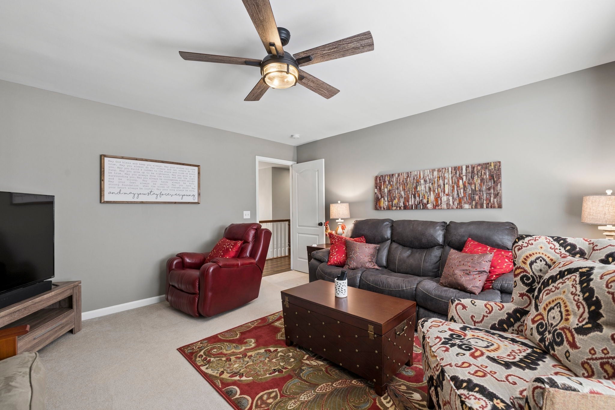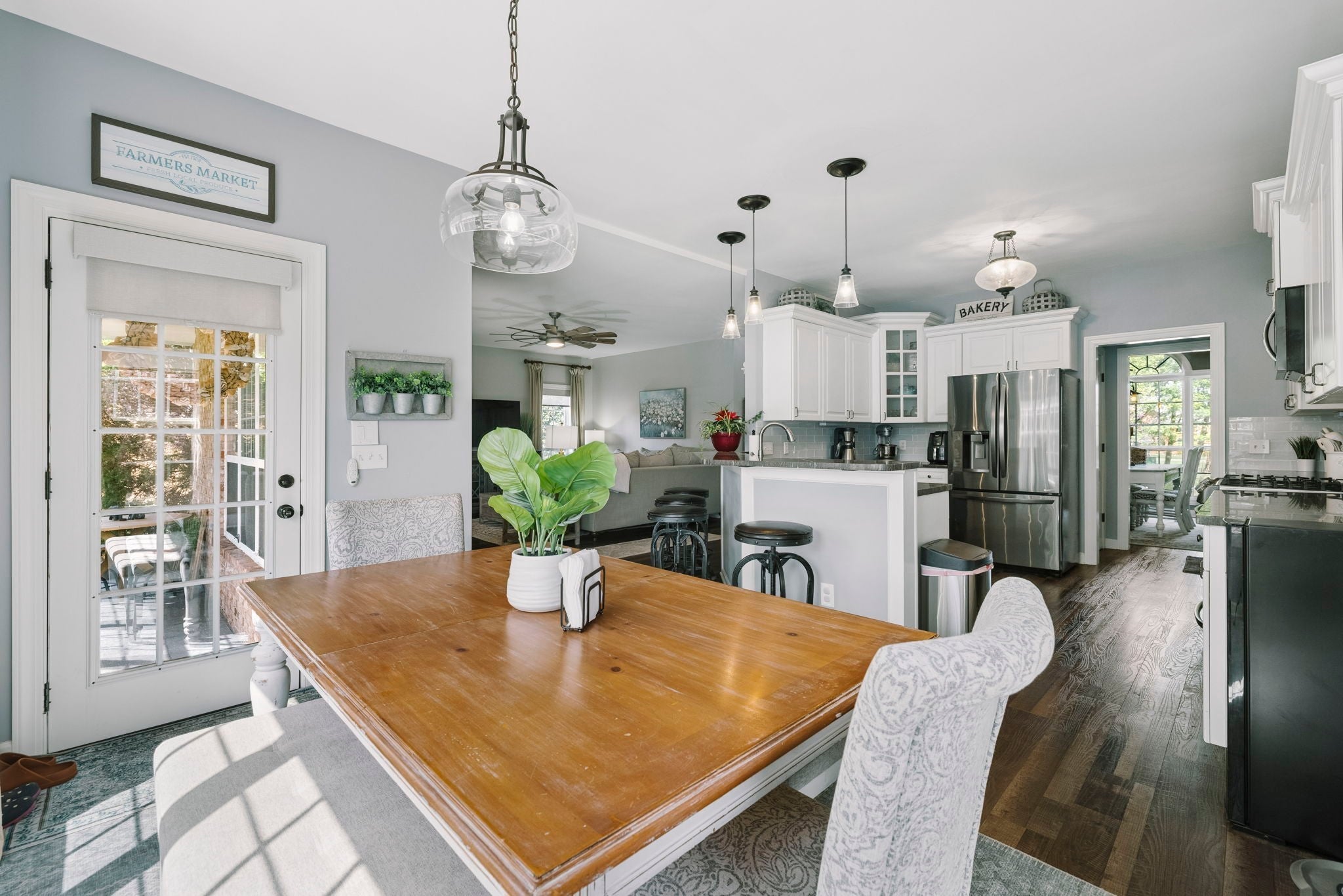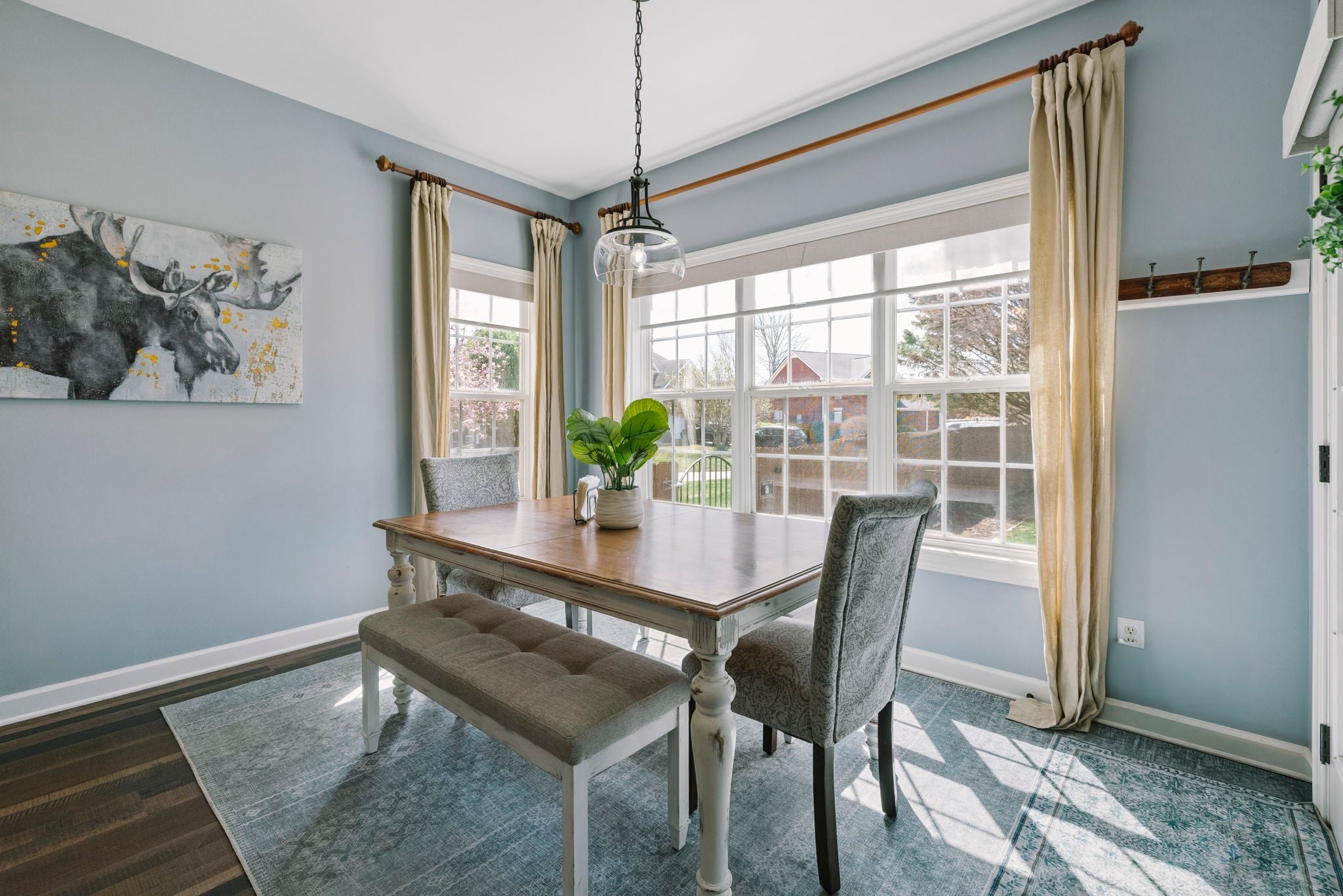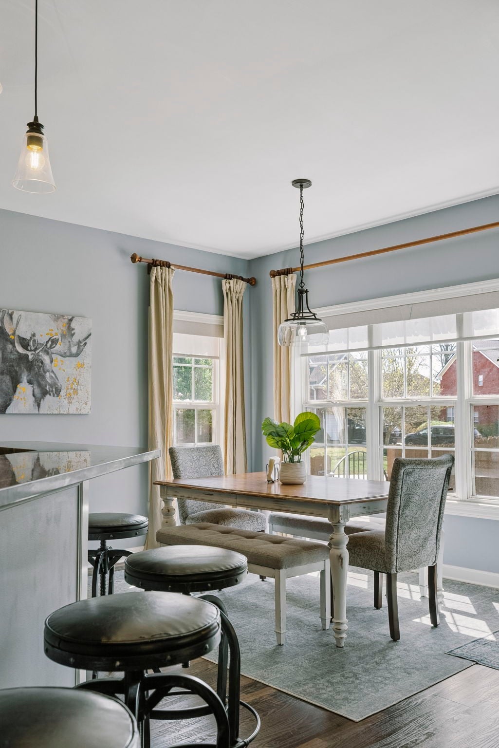 This beautifully updated brick home offers a welcoming blend of comfort, style, and thoughtful design. With 4 spacious bedrooms with generously sized closets and 2.5 baths, the interior feels both refreshed and inviting. New luxury vinyl plank flooring flows throughout, complementing the renovated kitchen and bathrooms that strike the perfect balance between modern finishes and everyday functionality. The kitchen stands out with sleek black stainless appliances, a gas range added by the current owners, and a nearly new microwave. Major updates provide added peace of mind—both HVAC units have been replaced in recent years, and Ecobee smart thermostats with remote access make it easy to maintain the perfect temperature from anywhere. A new roof is also scheduled to be installed (date to be confirmed), and the garage features a new motor, updated chains, remote access, and an exterior keypad for added convenience. Step outside to an outdoor living space designed for gathering and relaxation. The covered porch, built about three years ago, includes a cozy fireplace and an electric ceiling heater so you can enjoy the space year-round. A custom grilling station with built-in cabinetry, counters, and a high-end drop-in grill makes entertaining effortless. The sellers are open to leaving the grill setup with an acceptable offer. Additional highlights include a formal dining room, a dedicated home office, and a large stainless steel utility tub in the garage—perfect as a dog wash for small to medium pets. Every detail of this home reflects care and quality, offering a move-in-ready experience that combines comfort, convenience, and charm.