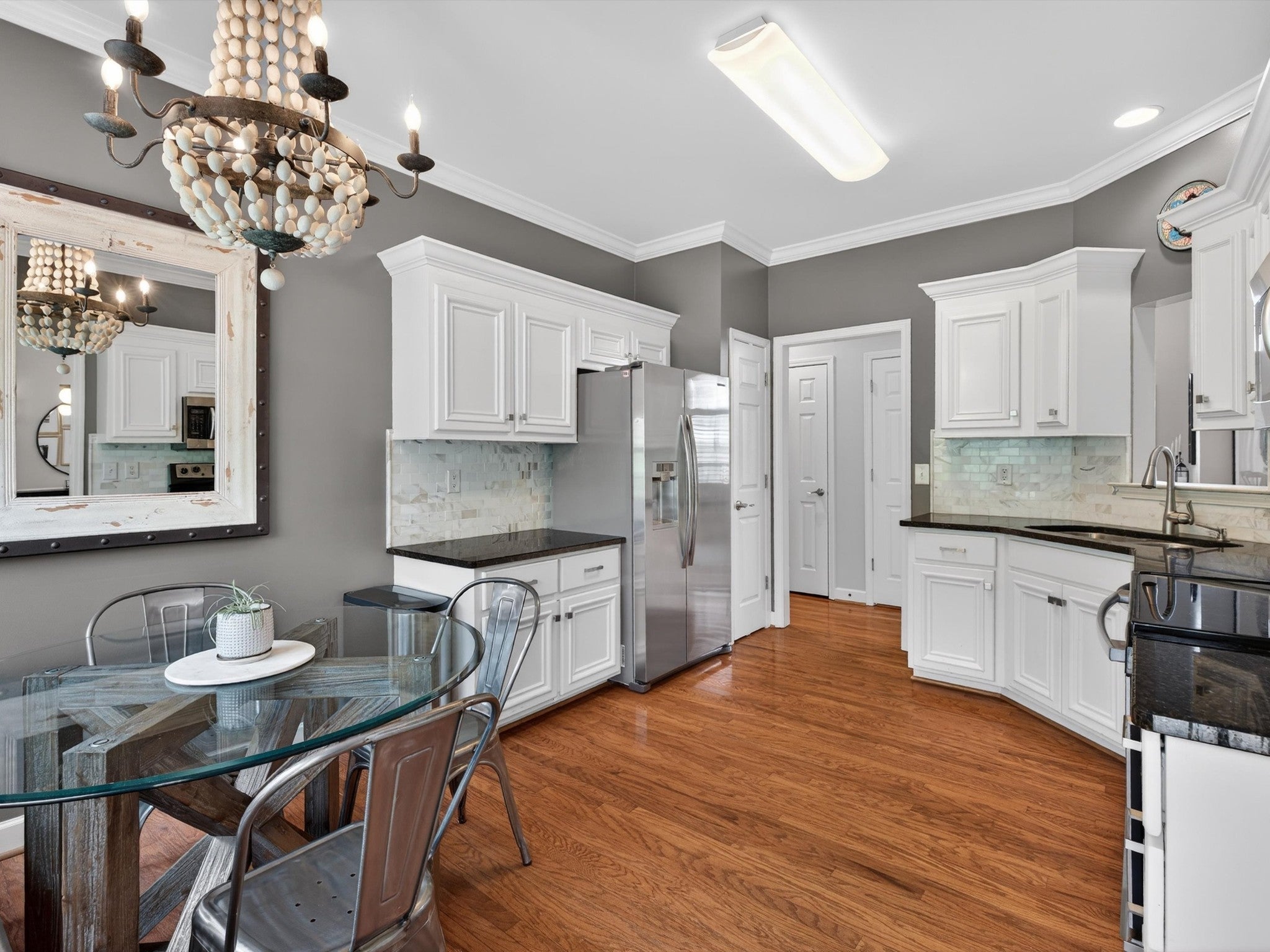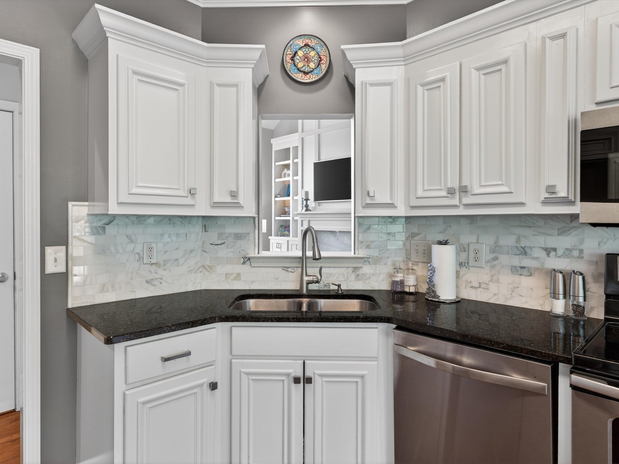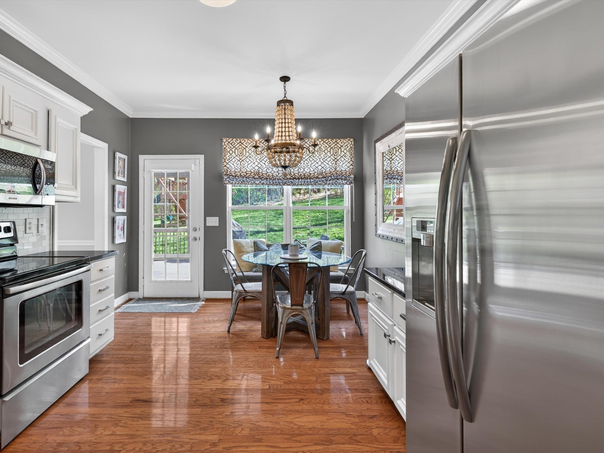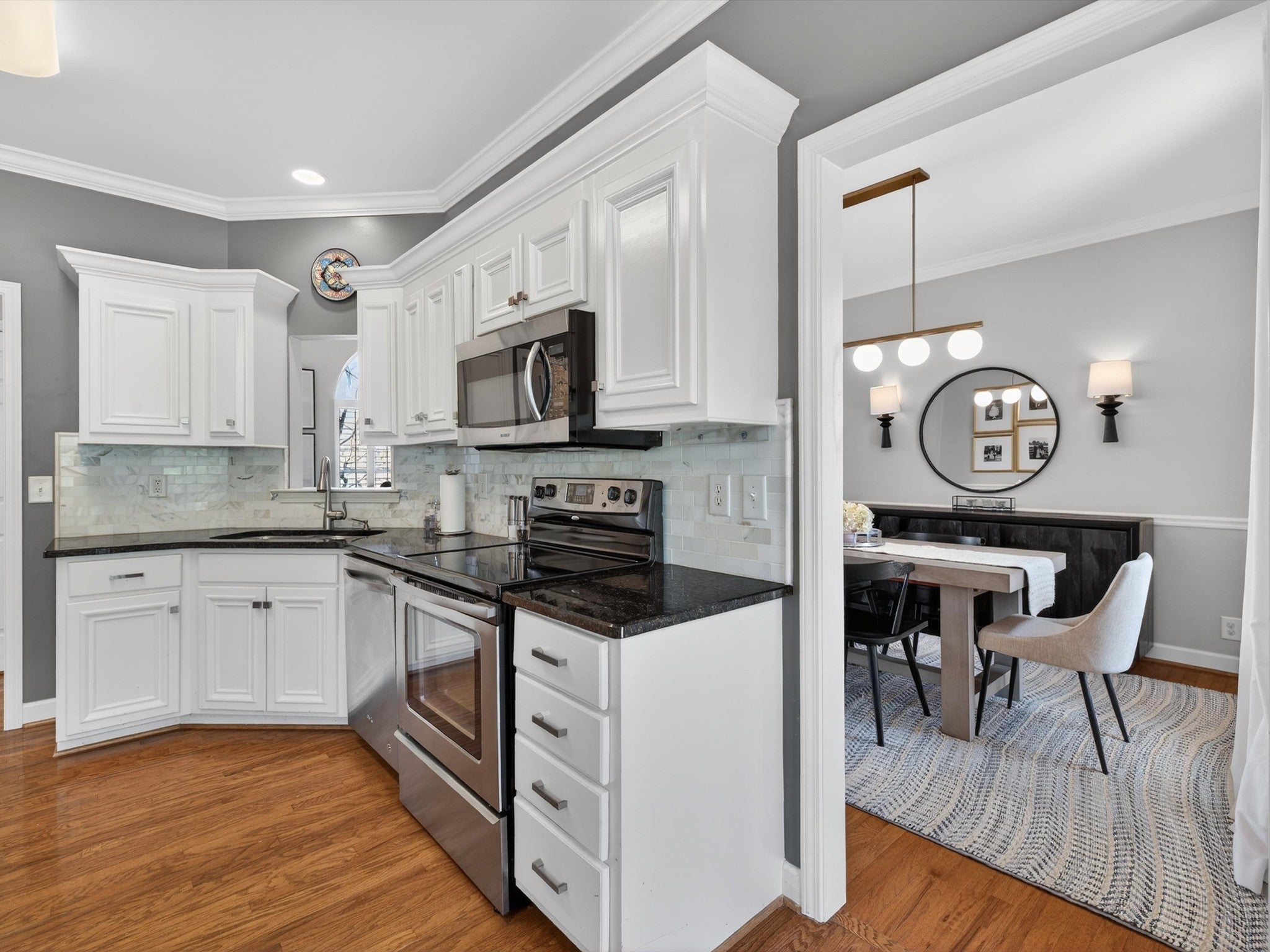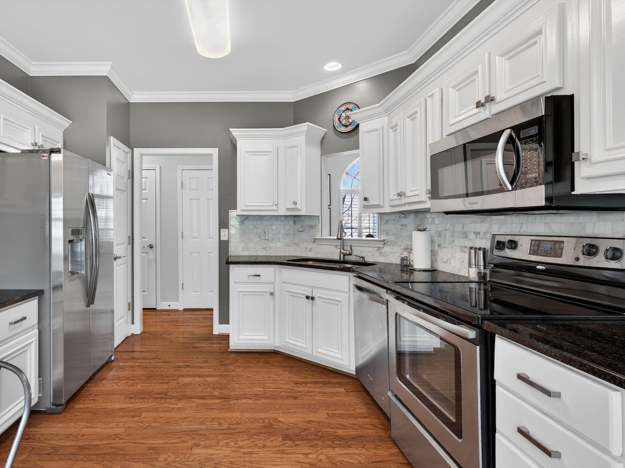 - Electric Range, Dishwasher, Disposal, Microwave, Refrigerator, Stainless Steel Appliance(s)