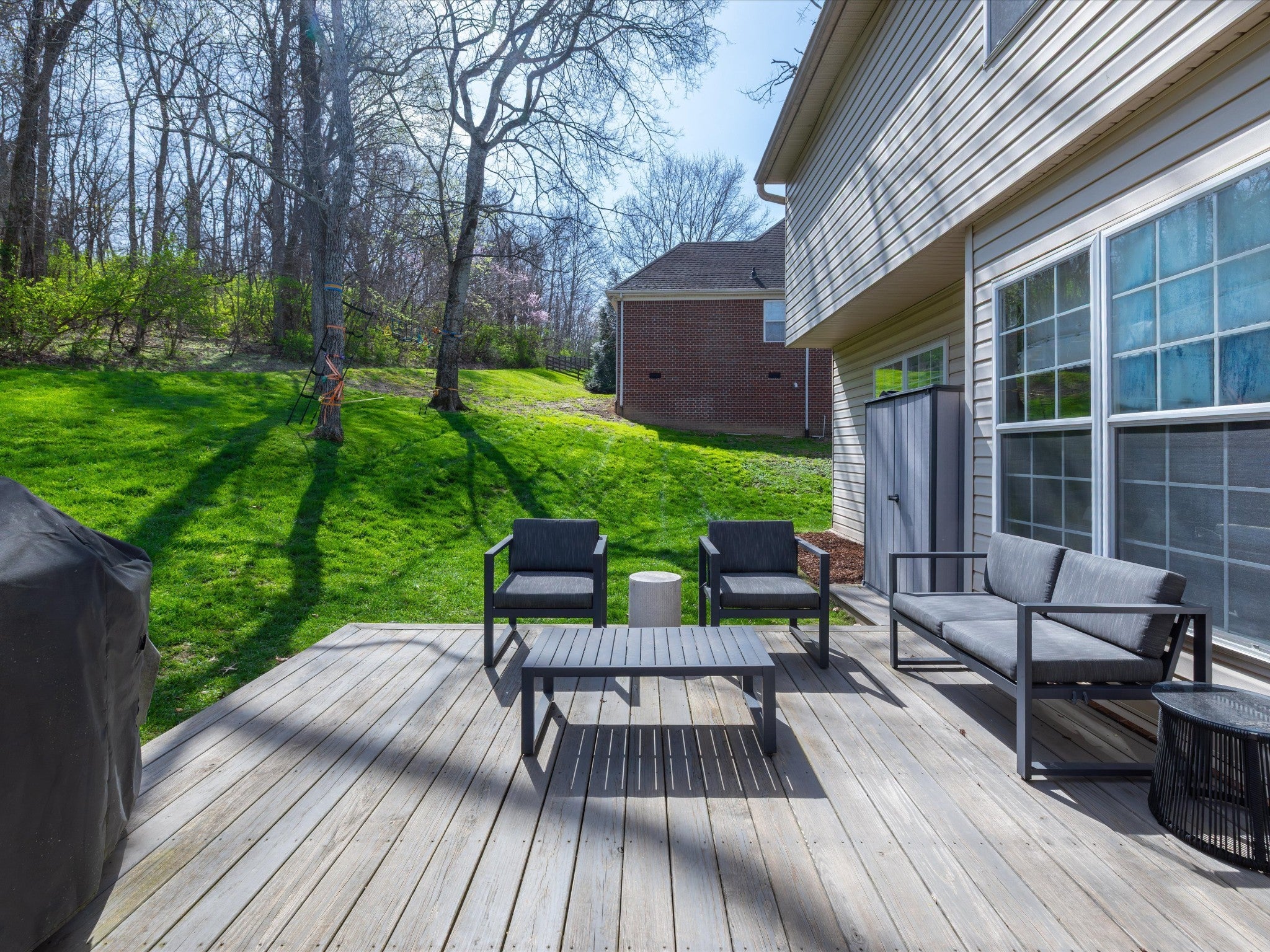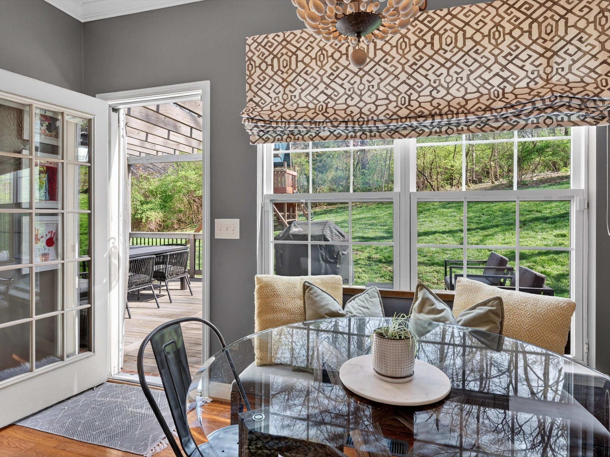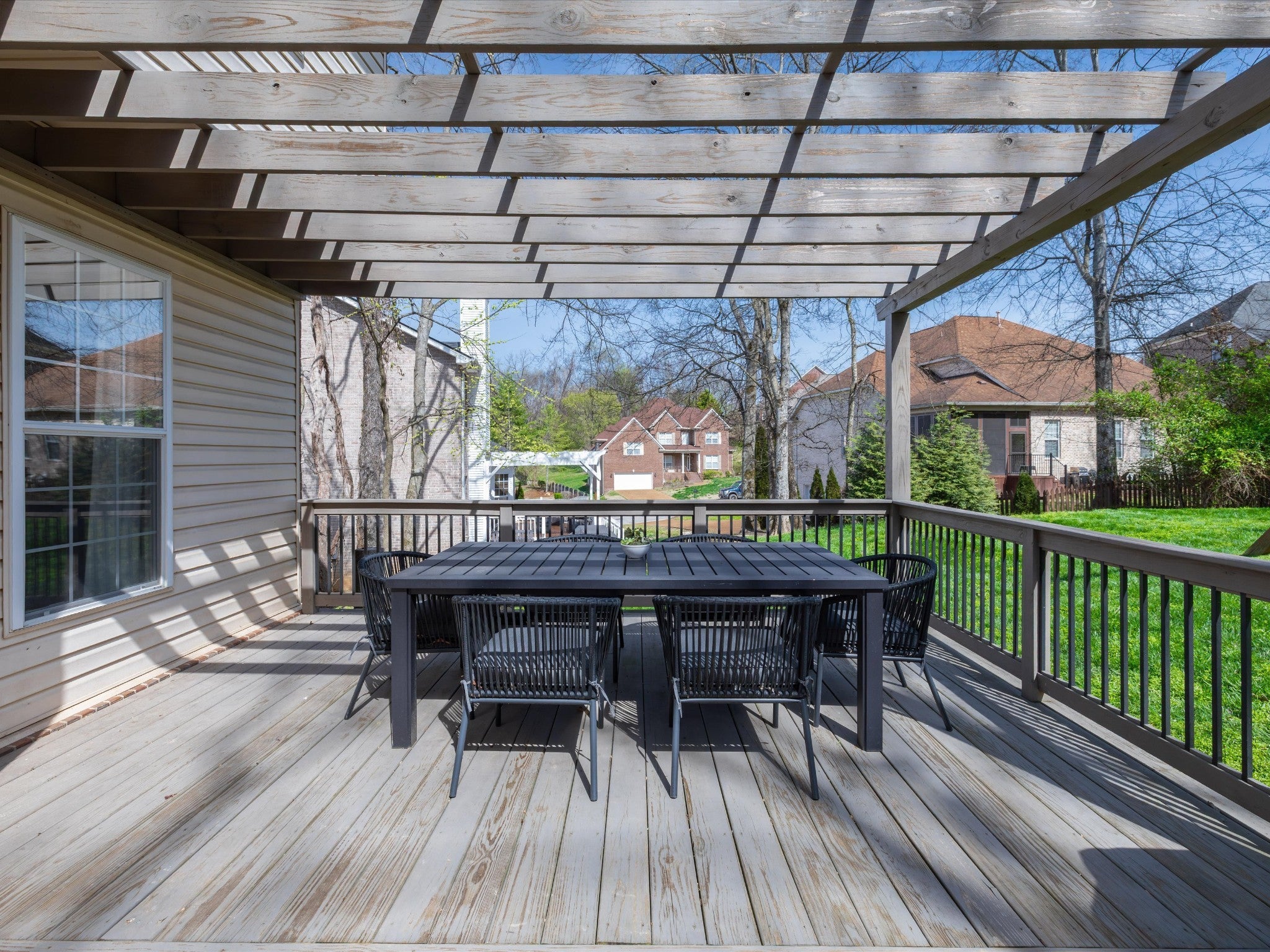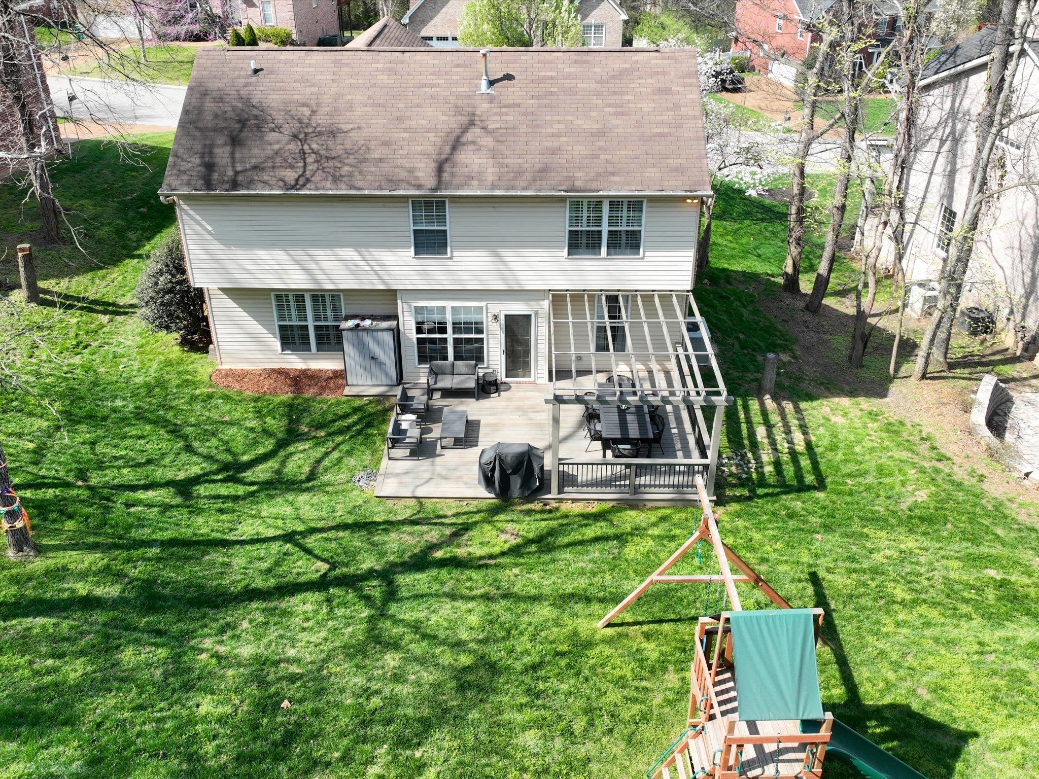 Welcome to your Brentwood dream home in Courtside at Southern Woods! This charming residence blends classic style with modern accents in all the right places. The open living room showcases a soaring ceiling and a board-and-batten fireplace surround complemented by custom built-in cabinetry. The main level also features a formal dining room, a kitchen with breakfast nook, and a spacious primary bedroom. Upstairs, you'll find a versatile loft with endless possibilities, along with two bedrooms connected by a Jack-and-Jill bath. The oversized bonus room is a must-see, featuring a shiplap ceiling, walk-in closet, and plenty of space for relaxing or gathering. Step outside to the spacious back deck with pergola overlooking the backyard—an ideal setting for outdoor entertaining or peaceful evenings at home. For swimming, playing and tennis be sure to check out your community amenities at 1610 South Timber Drive!