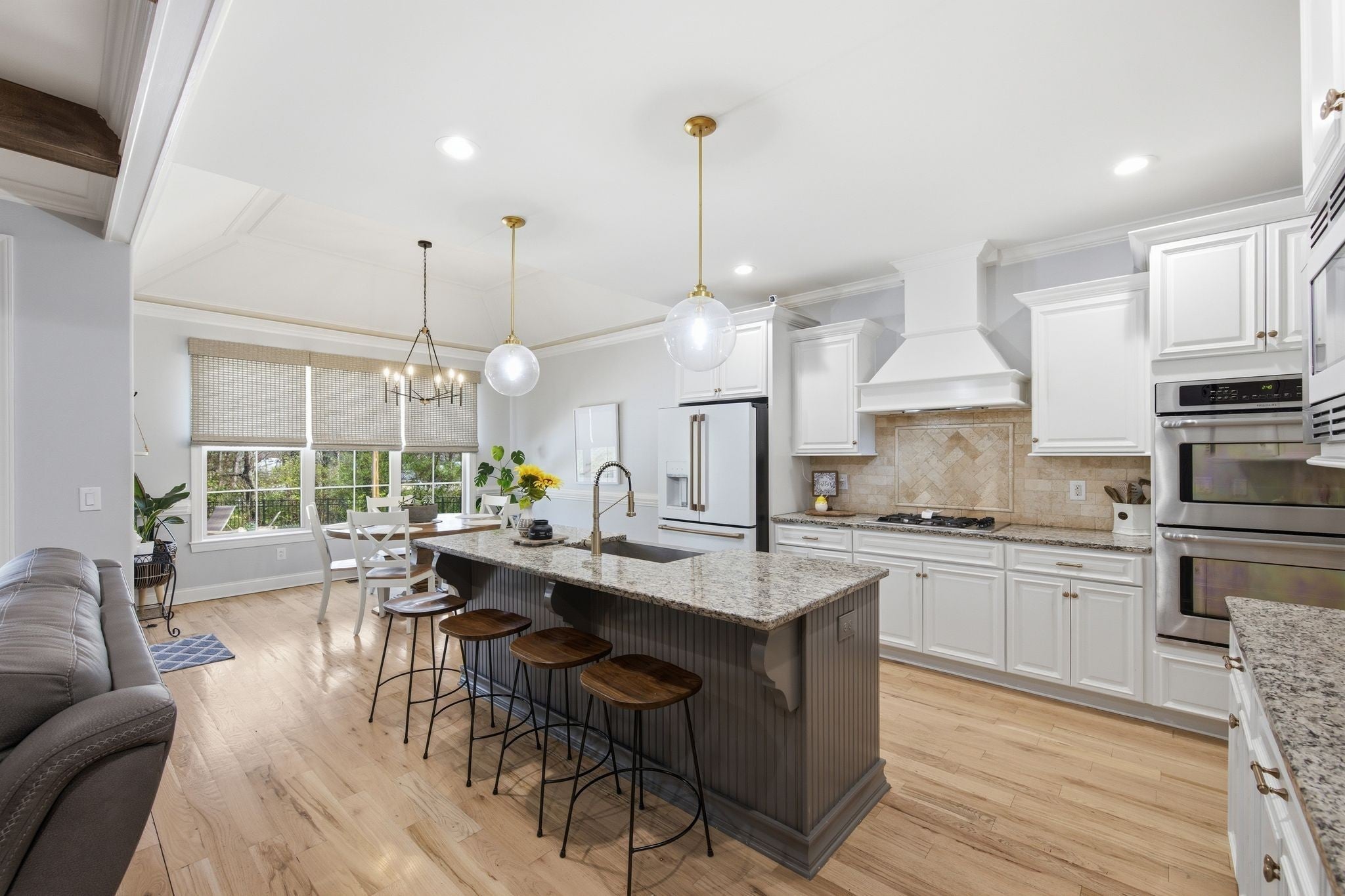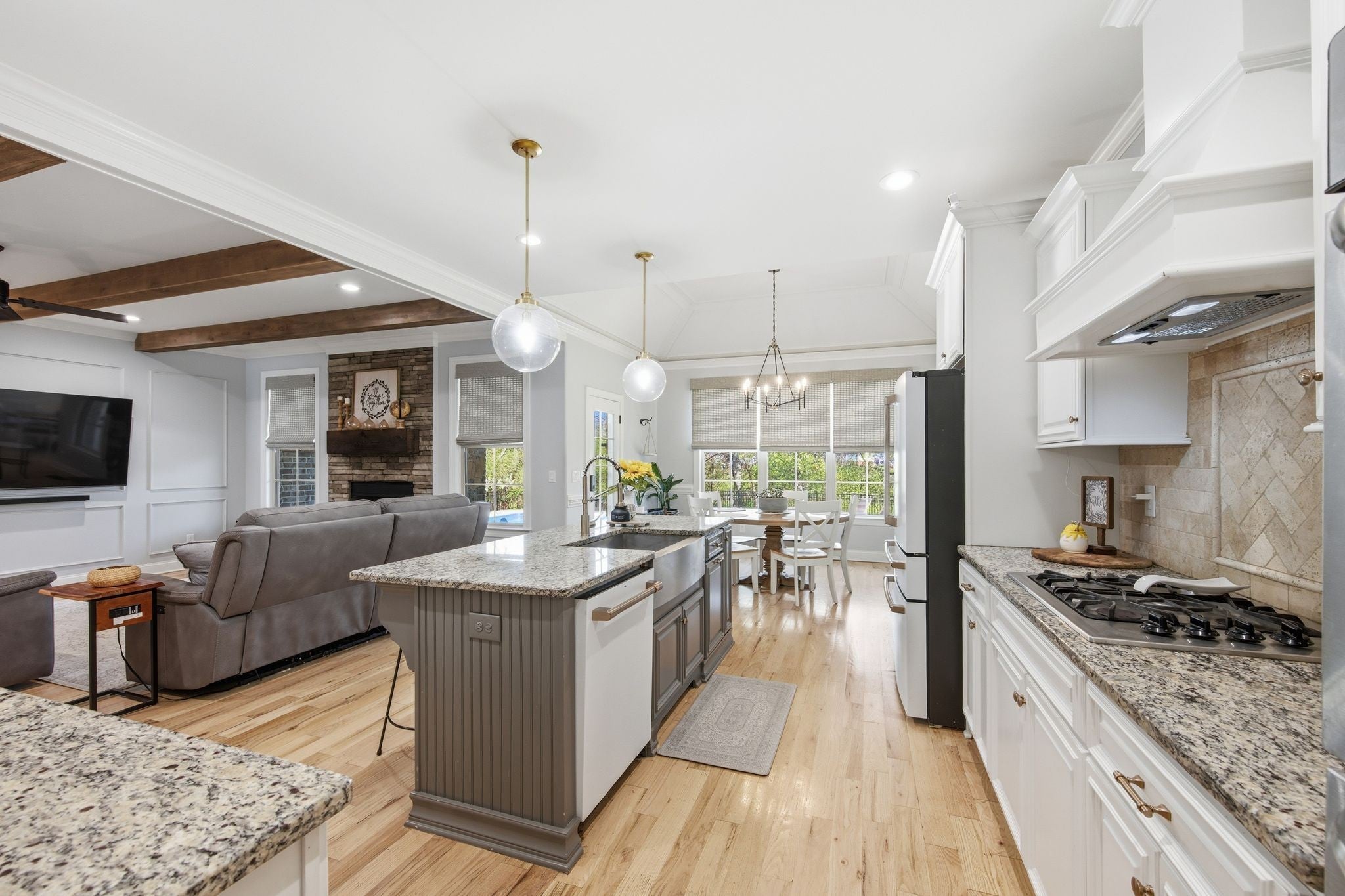 - Built-In Electric Oven, Oven, Built-In Gas Range, Dishwasher, Microwave, Stainless Steel Appliance(s)