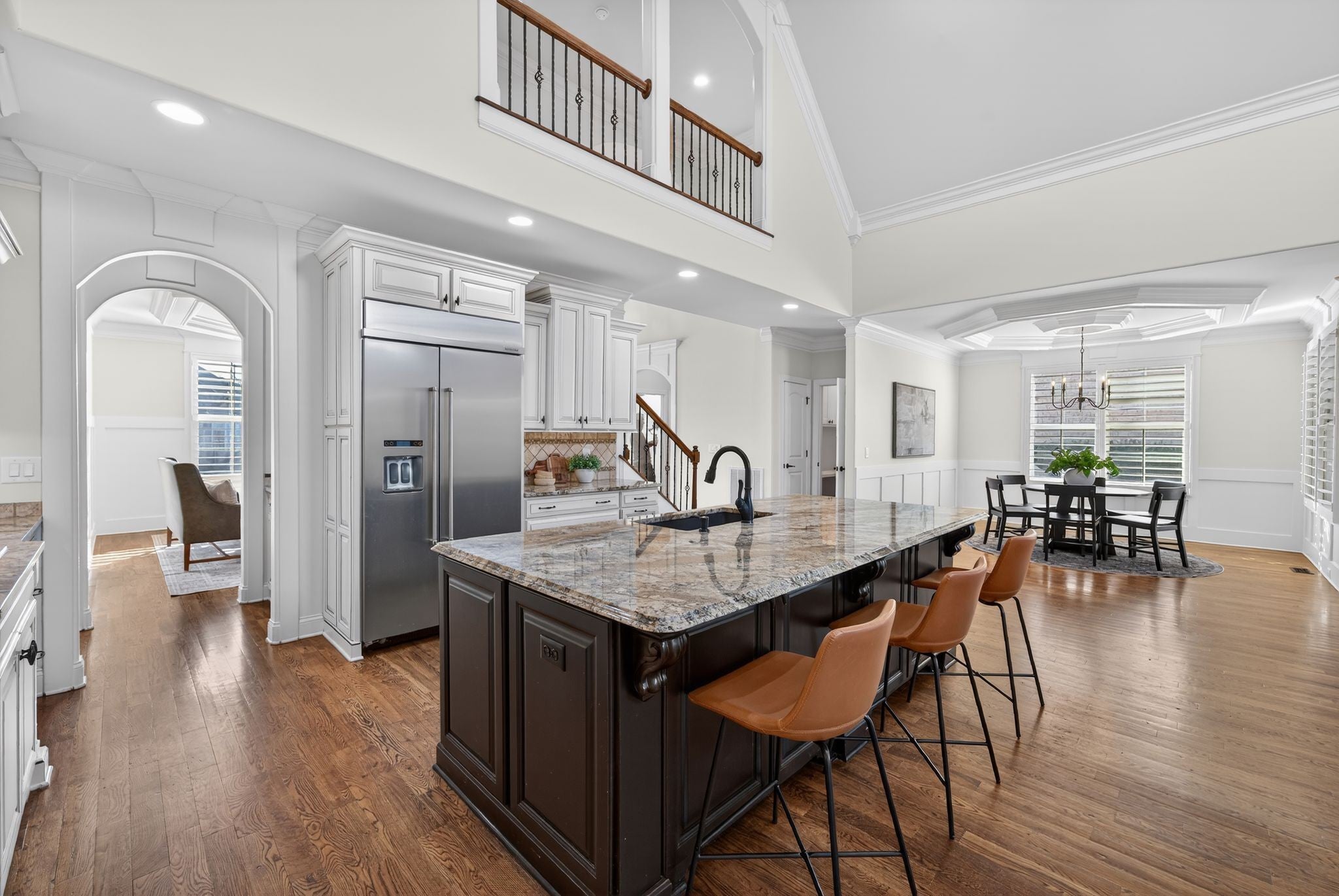 Located in the desirable Autumn Ridge neighborhood, residents enjoy community amenities including a clubhouse, pool, and catch-and-release pond. You haven’t seen a family room and kitchen quite like this. The family room is expansive and designed for gathering, with vaulted ceilings that create an open, airy feel. The layout flows seamlessly between the family room, dining areas, and kitchen, making it ideal for entertaining. The home offers two spacious dining areas: a formal dining room and a large eat-in space, providing flexibility for both everyday living and hosting. This floor plan includes two bedrooms on the main level. Upstairs features three additional generously sized bedrooms, a large rec/bonus room, a dedicated dog room, and three full bathrooms. Heated and Cooled Covered Patio area. Storage is abundant throughout the home, with three separate walk-in storage areas. Freshly painted walls and ceilings add a clean, updated feel. Outside, you’ll find a fenced yard with thoughtfully designed landscaping that provides additional privacy. Electrical is already in place for a hot tub. Zoned for Williamson County Schools. Roof 2024. Buyer and buyer’s agent to verify all pertinent information. Information is deemed reliable but not guaranteed.