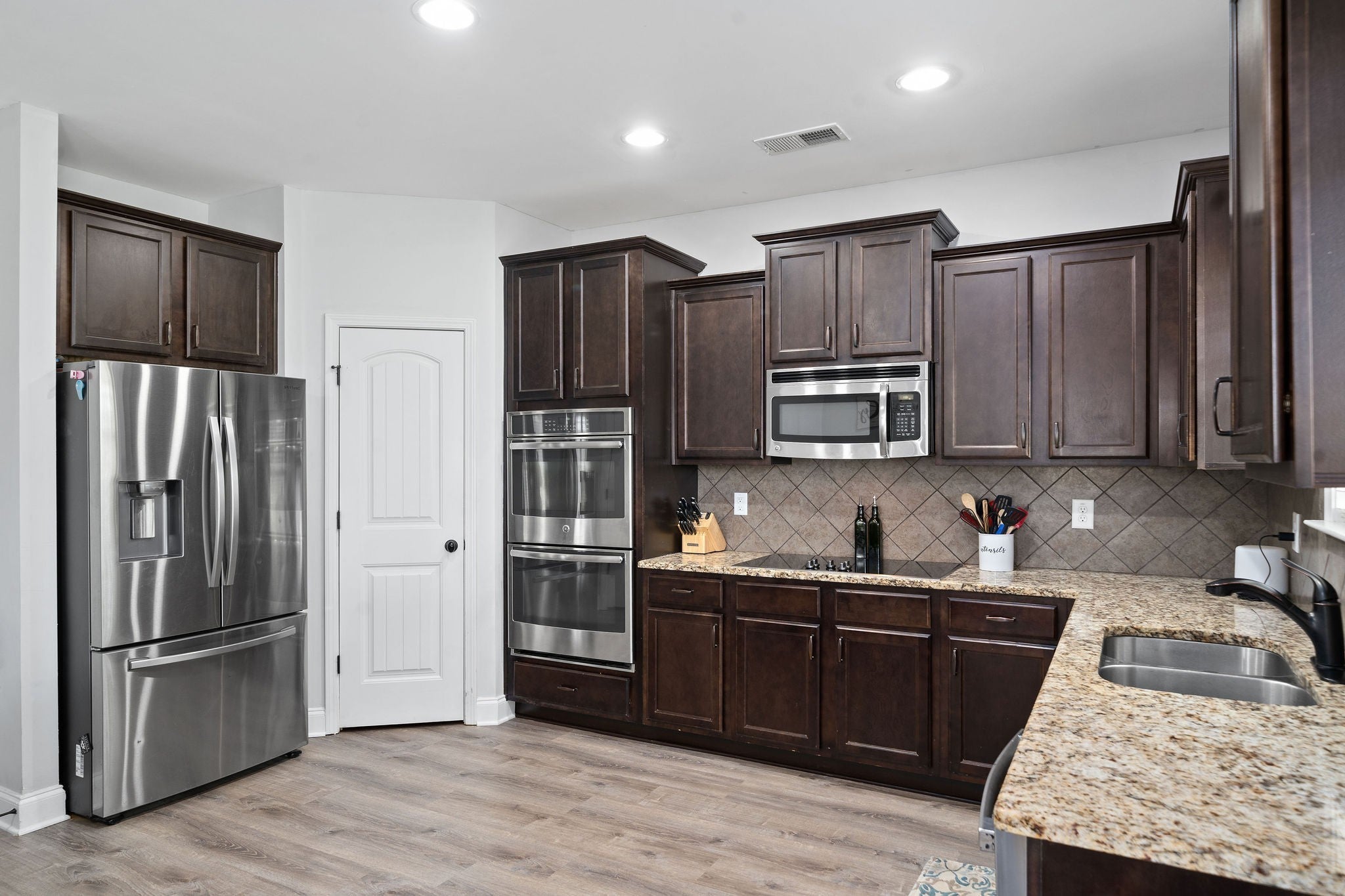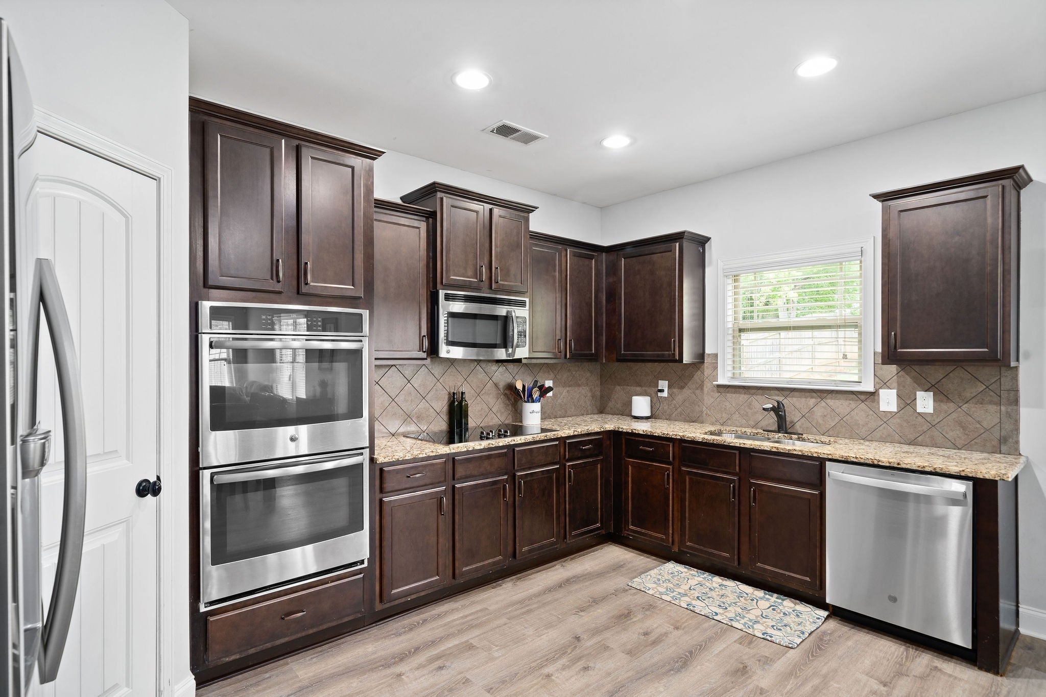 - Electric Oven, Cooktop, Dishwasher, Ice Maker, Microwave, Refrigerator, Stainless Steel Appliance(s)