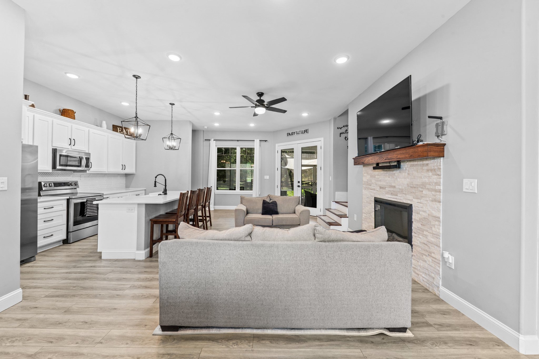 Custom-built in 2020, this modern farmhouse sits on 13.23 private acres with a small creek, pole barn, storage shed, fenced backyard, and scenic trails. Conveniently located just 20 miles from Lewisburg, Fayetteville, and Pulaski. Enjoy peaceful country living with the convenience of being just 10 minutes from I-65! The home features an open-concept layout with quartz countertops, stainless steel appliances, and durable laminate flooring. Main level offers a spacious primary suite plus two additional bedrooms. Upstairs includes a fourth bedroom, full bath, bonus room, and walk-in storage with potential for expansion. Relax on the screened-in back porch and enjoy the property's natural beauty. All furniture and appliances convey, making this property truly move in ready! Includes two parcels totaling 13.23 acres: Parcel ID/Tax ID124 029.01 & 124 02903 000
