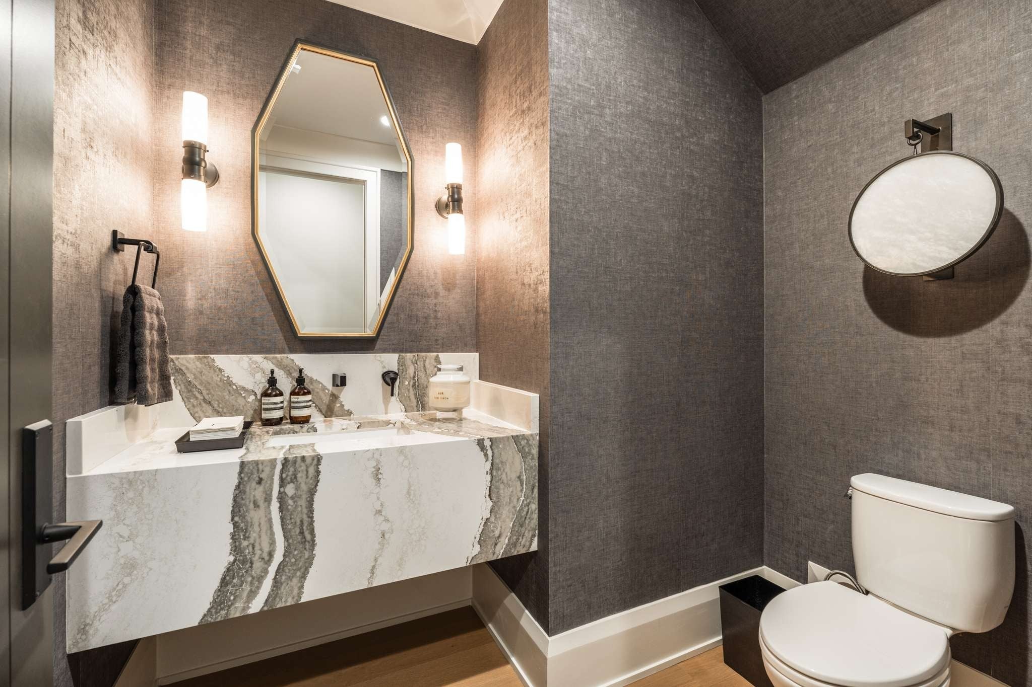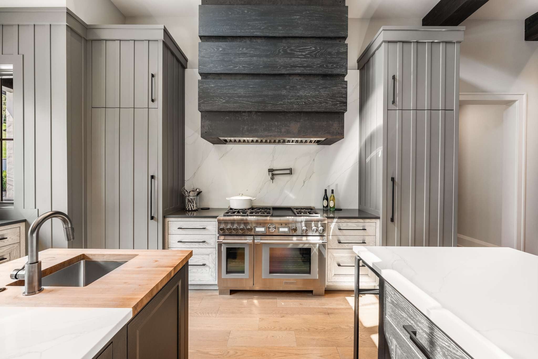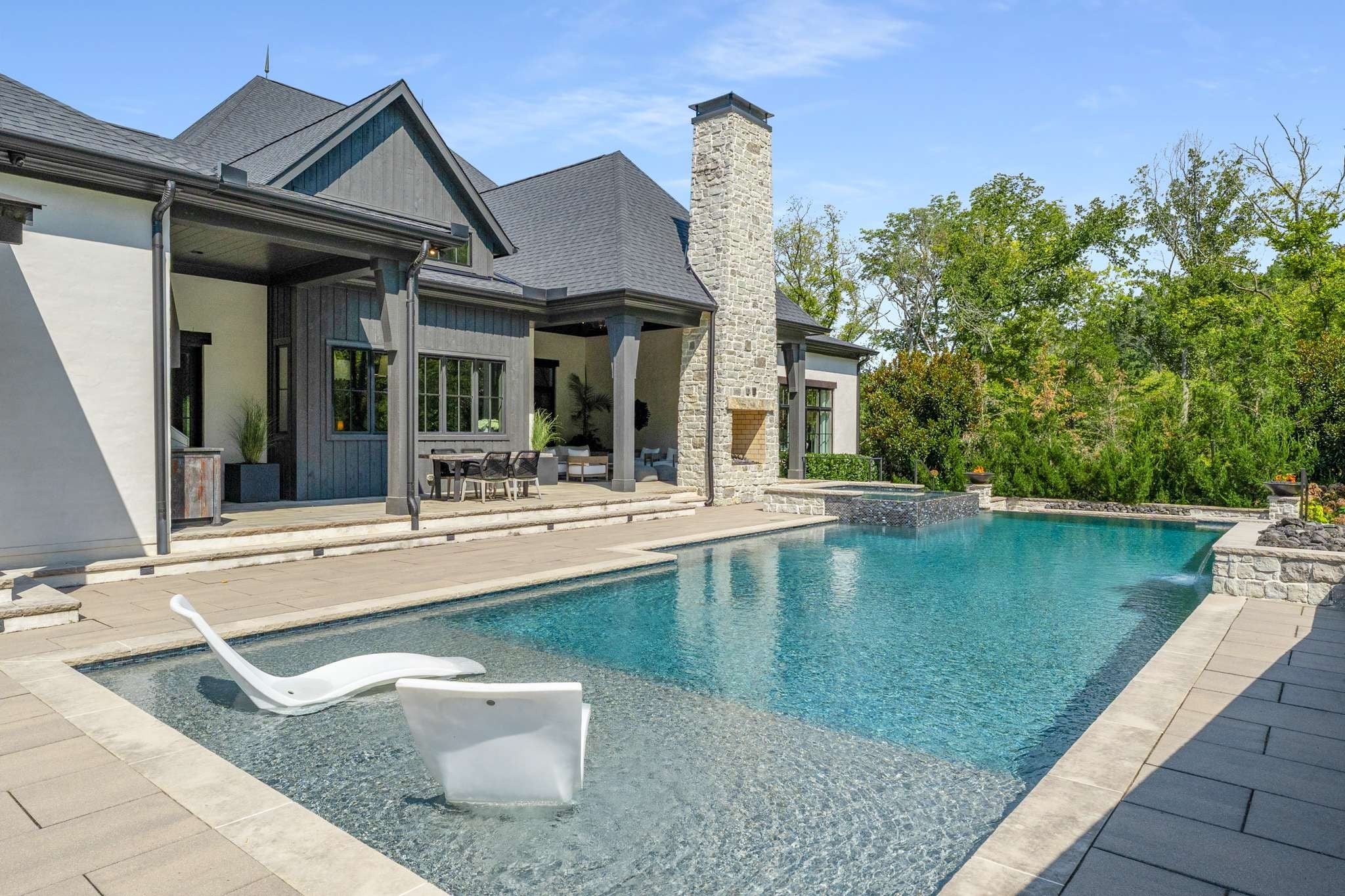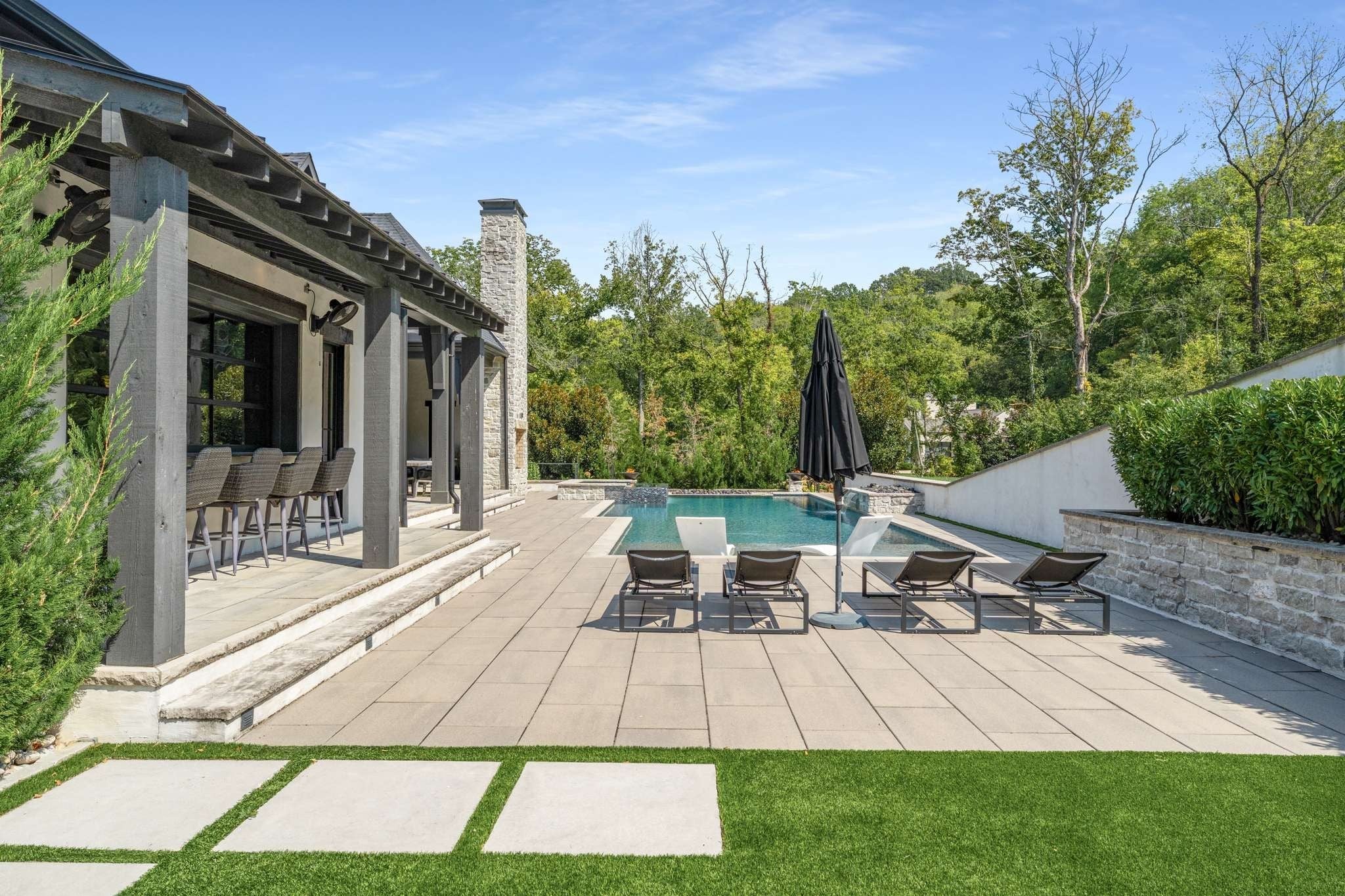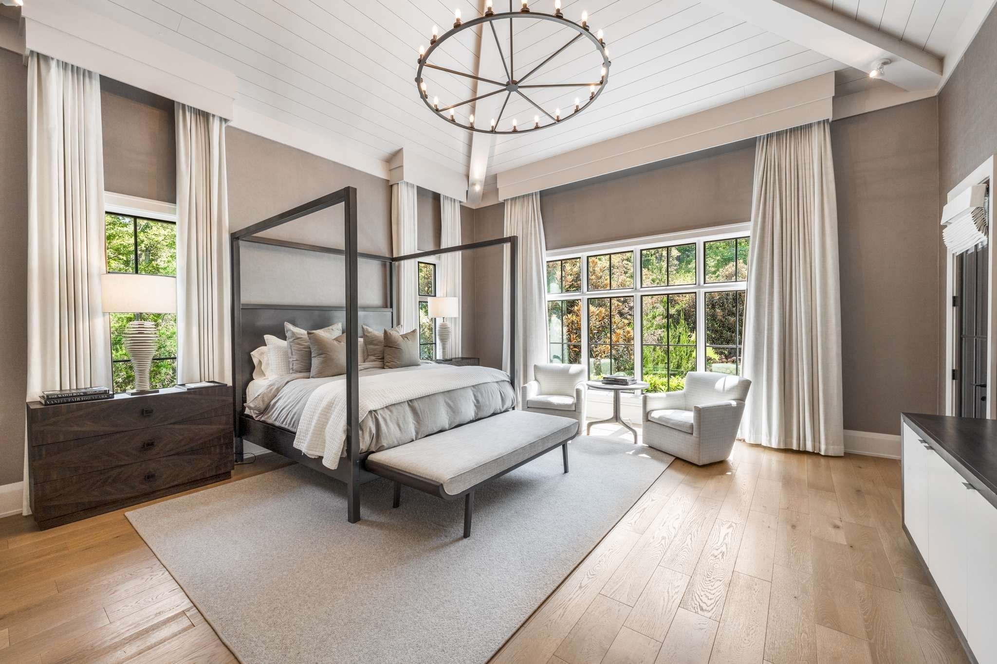 Set on over six acres in the coveted Cartwright Close community, this remarkable estate blends timeless elegance with contemporary luxury. Set high above the street with stunning architectural details, this residence is as distinctive as it is welcoming. Step inside to the warm and inviting Entry Hall, uniquely flanked by dual Executive Offices. The open-concept main living area features soaring beamed ceilings, a show-stopping fireplace, and floor-to-ceiling windows and doors that create seamless indoor-outdoor flow. The stunning, light filled kitchen overlooks the pool and features double waterfall-edge islands, Thermador appliances, double refrigerators and dishwashers, and thoughtful custom cabinetry. The adjoining Butler’s Pantry beautifully expands the kitchen space with double ovens and full-size freezer. The formal dining area showcases an impressive glass-enclosed wine display room. The main level Primary Suite is a true private retreat, featuring a soaking tub and integrated TV, a dedicated coffee/wine bar niche, and separate his/her walk-in closets. Two additional main-level guest suites each offer private baths and refined finishes, ensuring comfort and privacy for family and visitors. Entertaining is absolutely effortless in the main floor Rec Room/ Lounge area. A roll-up window creates a fun indoor/outdoor countertop bar and separate dedicated whiskey bar. This area offers seamless outdoor access to the pool and putting green. Outdoor living is elevated with a resort-style pool, spa, pool bath, and expansive patios. You will find a cozy lounge space with gorgeous outdoor fireplace and a separate dining area with outdoor grill - all framed by expansive lawn space and mature trees for ultimate privacy. Completing this home is the upstairs space which is comprised of two additional bedroom suites, a half bath, and a fully customized gym, which could easily convert to a sweet bunk room depending lifestyle. It simply doesn’t get better!
