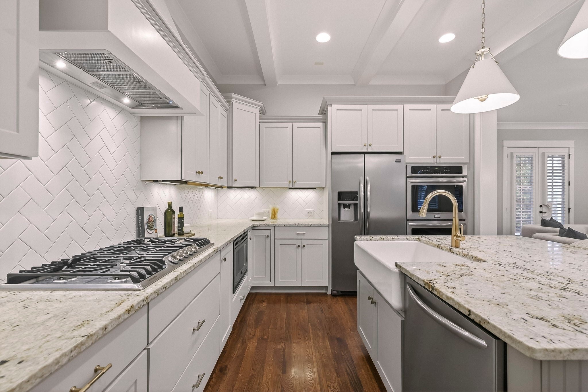 - Built-In Electric Oven, Double Oven, Built-In Gas Range, Dishwasher, Disposal, Microwave