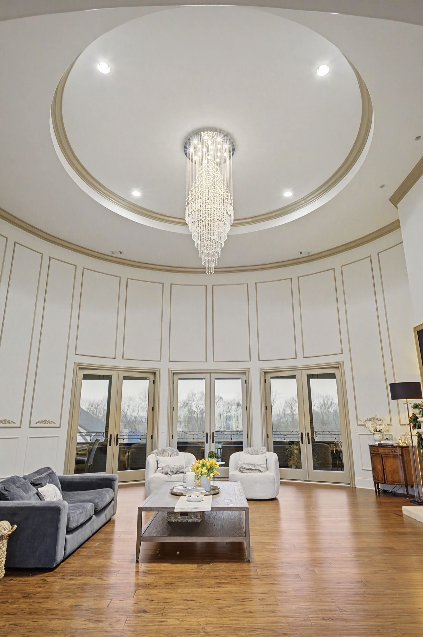 Set on over two acres in the rolling countryside of Arrington, this custom luxury estate blends grand architecture with warm, livable elegance. Designed with a combination of the European Baroque style with a blend of American traditional, creating a unique atmosphere of simple elegance with grace. The moment you enter, soaring ceilings, dramatic designer lighting, beautiful hardwood flooring, and handcrafted millwork create an unforgettable first impression, while a stunning round, ballroom-inspired living room anchors the home with curated finishes. At the heart of the home, the chef’s kitchen is a showpiece built for effortless hosting, featuring double islands, dual sinks, a wet bar, walk-in serving and storage pantries and a full suite of professional-grade Viking appliances. Flowing seamlessly into a coffered-ceiling family room with stone fireplace creates the perfect gathering space. The main-level primary wing is a private retreat designed for total relaxation complete with spa-inspired bath showcasing a walk-through shower, dual vanities, private twin toilets, expansive walk-in closets, and a dedicated laundry. A light-filled sitting room with fireplace and built-in office is the perfect at home workspace. Every guest bedroom is en-suite, offering comfort for family and visitors alike. Outside, an expansive covered patio with fireplace and multiple TV stations extends the living space into a true outdoor oasis, ideal for year-round entertaining and quiet evenings overlooking the peaceful acreage. Just a short walk to Arrington Elementary and minutes from Arrington Vineyards, Franklin, and Nashville, this home offers the rare combination of luxury, space, and convenience.