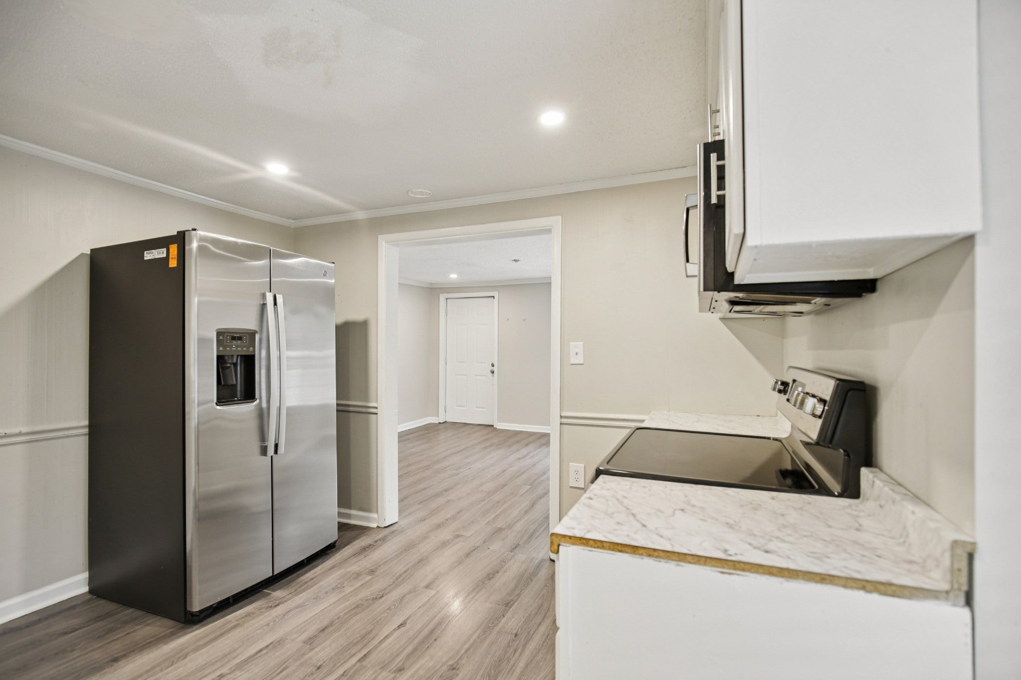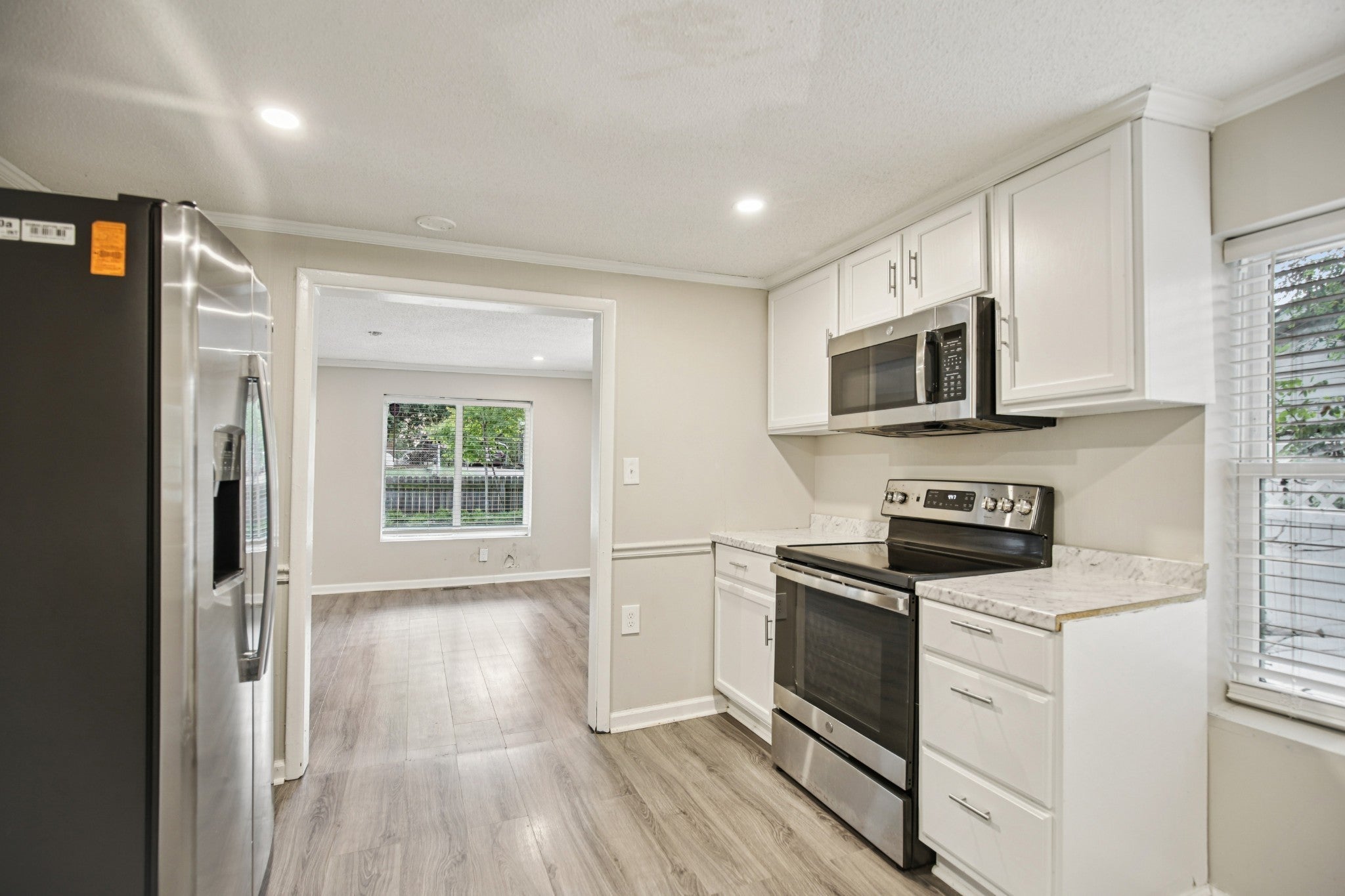 - Electric Oven, Electric Range, Microwave, Refrigerator, Stainless Steel Appliance(s)