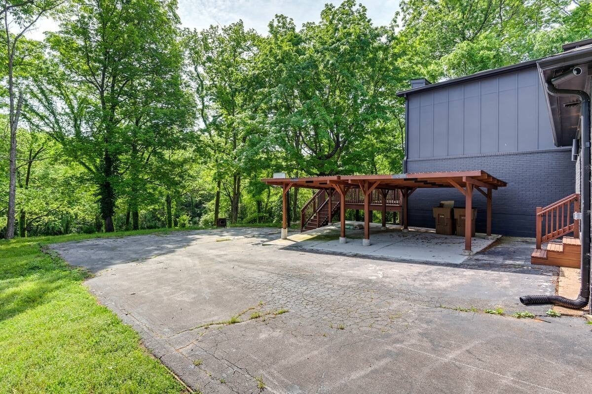 Central to Nashville. Very spacious and Fully Furnished Luxury Rental in Brooke Meade. Custom remodeled home tucked away on a private wooded lot. Boasting 4 bedrooms, 4 modern bathrooms, and over 3,400 square feet, this home offers plenty of space for family or friends! Comfortably sleeping up to 14 people. Inside, you’ll find an open floor plan filled with natural light, soaring ceilings, and a show-stopping 20-foot fireplace. The chef’s kitchen boasts a waterfall island, premium appliances, and rich cedar accents that create both warmth and sophistication. The main level features three bedrooms and three bathrooms, laundry room, reading area, a spacious living room. Upstairs, the primary suite offers a luxurious bathroom with a spacious standing shower and a relaxing soaking tub as well as a spacious custom closet. Enjoy peaceful views from the expansive deck with space for entertaining. With two covered carports, extra parking, and premium finishes throughout, this home has it all. Move right in and start enjoying the lifestyle that Nashville has to offer! Get ready to live like a Nashville local when you book an extended stay at this impressive vacation rental! Explore the Country Music Hall of Fame or enjoy the live music and vibrant nightlife at Honky Tonk Highway before unwinding by the electric fireplace