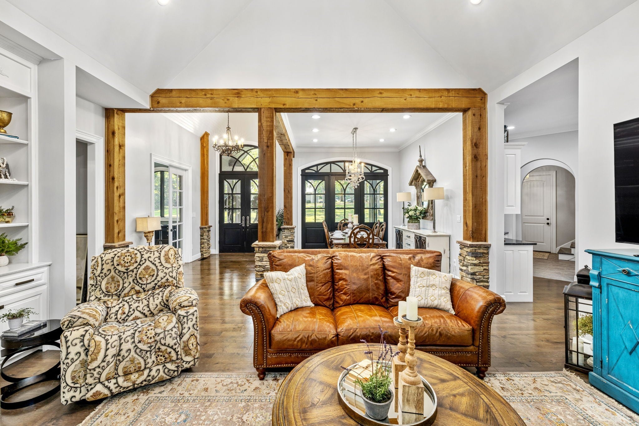 Welcome to this 3,736 sq. ft. custom-built lakefront retreat, designed by the owner with an emphasis on style, comfort, and peaceful southern living. Inside, you’ll find hardwood floors throughout, soaring glass windows that fill the home with natural light, and breathtaking lake views—even from the primary bedroom. The main level offers two spacious bedrooms, with an option for a third, plus an office that connects to the luxurious primary suite. The primary bath features a custom walk-through tile shower, while the oversized walk-in closet with custom shelving is truly impressive. Upstairs, a private suite above the garage feels like its own apartment with a bedroom, bathroom, living room, and plumbing in place for a kitchen—ideal for guests, extended family, or even rental potential. Outdoor living is just as special. A wraparound porch overlooks the 25-acre free-flowing lake, while this property boasts one of the largest lake frontages in the community, complete with two private docks for boating, fishing, or relaxing by the water. Inside, Nashville-crafted stonework creates a stunning fireplace and columns, with matching stone carried to the exterior for timeless appeal. Residents also enjoy a spacious community clubhouse with its own private dock, perfect for hosting events or gatherings on the lake. Blending luxury with southern charm, this home offers the best of both worlds—peaceful living with modern comfort and unmatched views. Don’t miss your chance to own this rare lakefront treasure, where every detail has been thoughtfully designed. Schedule your private showing today!