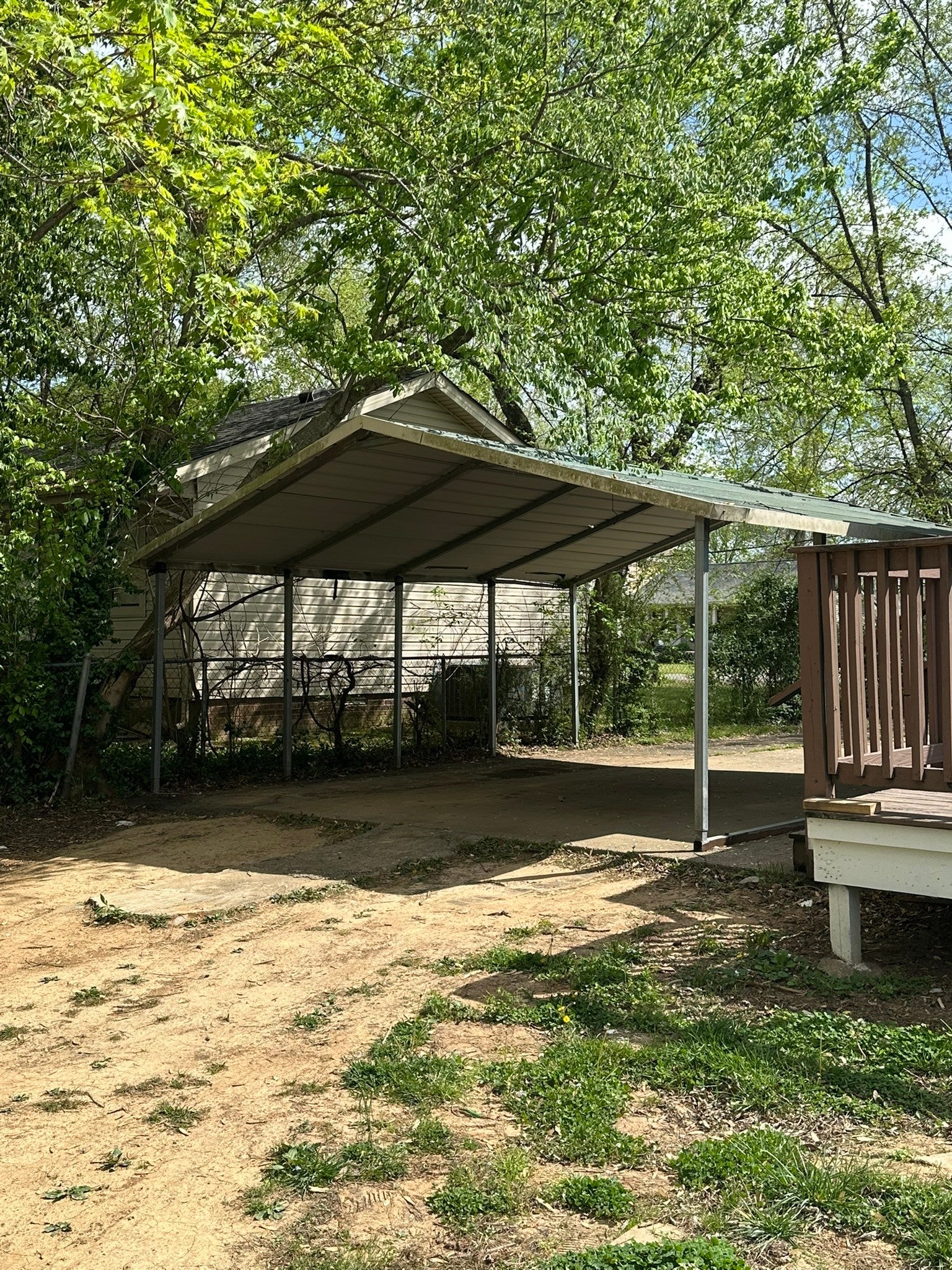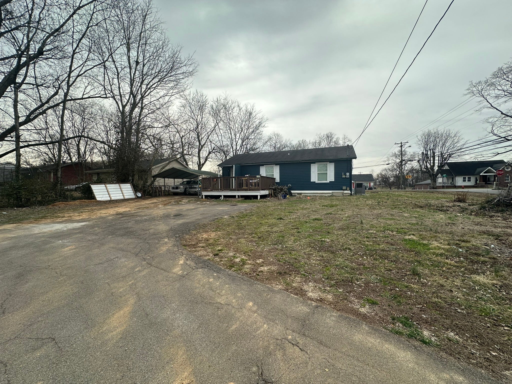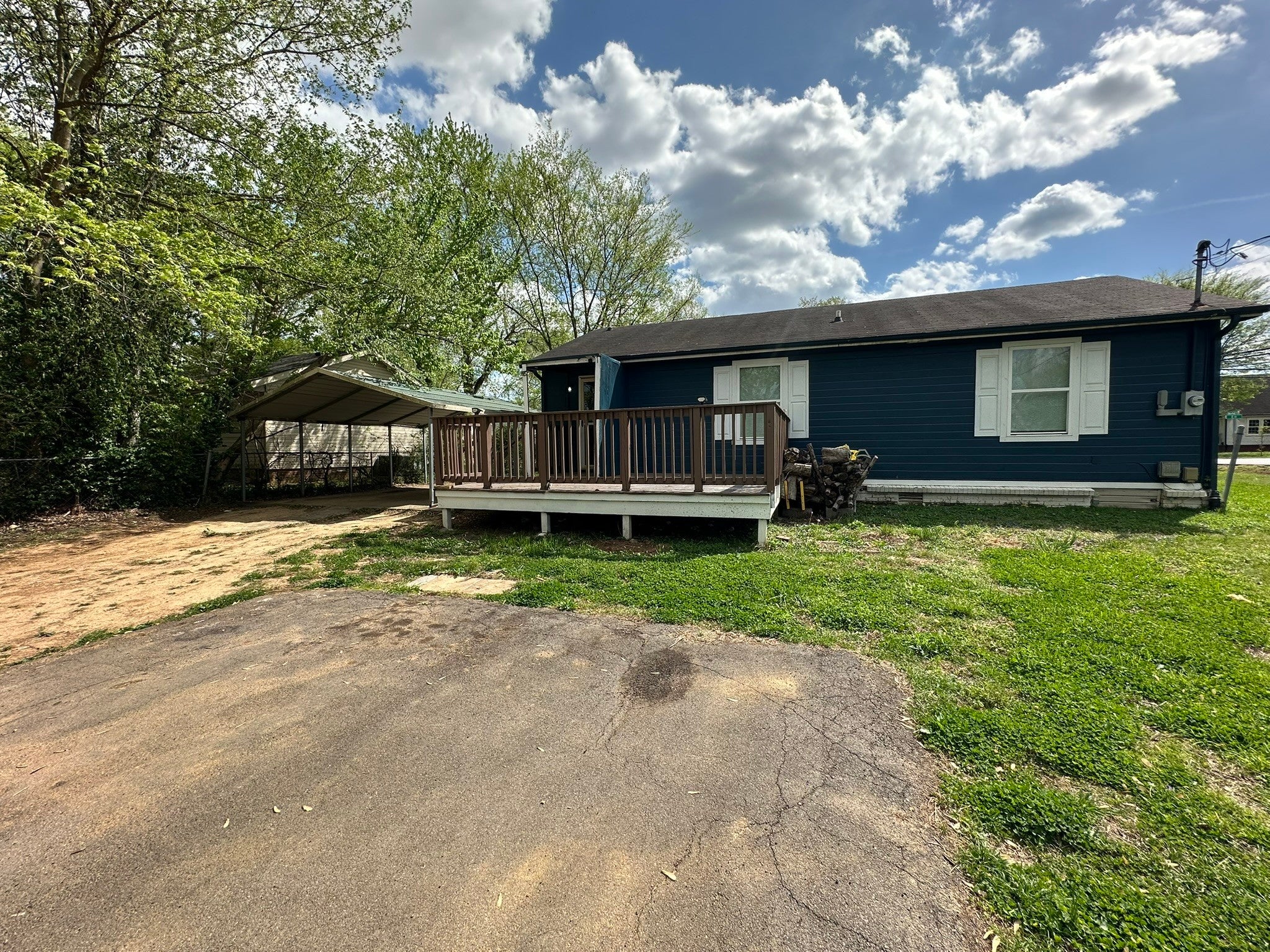 Great opportunity to own a home on a large corner lot offering added privacy and convenience. This property features two separate driveway entrances, providing ample parking and easy access. Enjoy outdoor living with a deck and a covered front porch, perfect for relaxing or entertaining. The home also includes a detached 2-car carport and a storage building for additional space. Inside, you’ll find a functional layout with a comfortable living area and eat-in kitchen. With no HOA and flexible use options, this property is ideal for first-time homebuyers or investors looking to add to their portfolio. Conveniently located with easy access to local amenities, shopping, and major roadways.