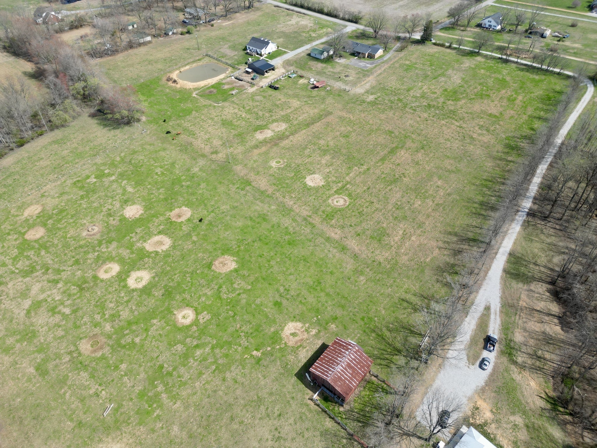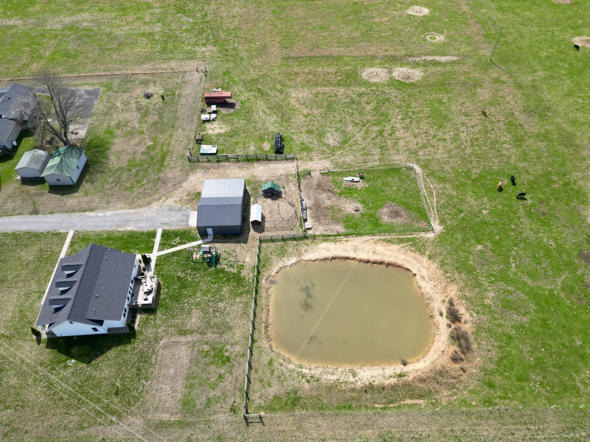 Beautiful 19.8-acre property ideal for homesteading, farming, or enjoying peaceful country living. Approximately 13 acres are open pasture with new electric fencing in place for cattle, with the remaining acreage wooded in the rear—perfect for hunting and recreation. Property features a large pond providing a year-round water source for livestock, a 30x30 pole barn with electricity and concrete floor, a 16x30 attached lean-to, and an additional barn suitable for storage or working cattle.THREE extra soil areas offer excellent potential for future homesites. The home, built in 2020, offers 1,878 sq ft with an open concept layout, 3 bedrooms with a possible 4th bedroom, 2 full baths, and a dedicated office. Interior features include hardwood and tile flooring throughout, a spacious oversized dining room, large mud/laundry room, and a cozy fireplace. The primary suite includes a private en-suite bath. A well-rounded property offering a great combination of pasture, woods, water, and functional outbuildings—perfect for those seeking a mini farm or rural lifestyle.