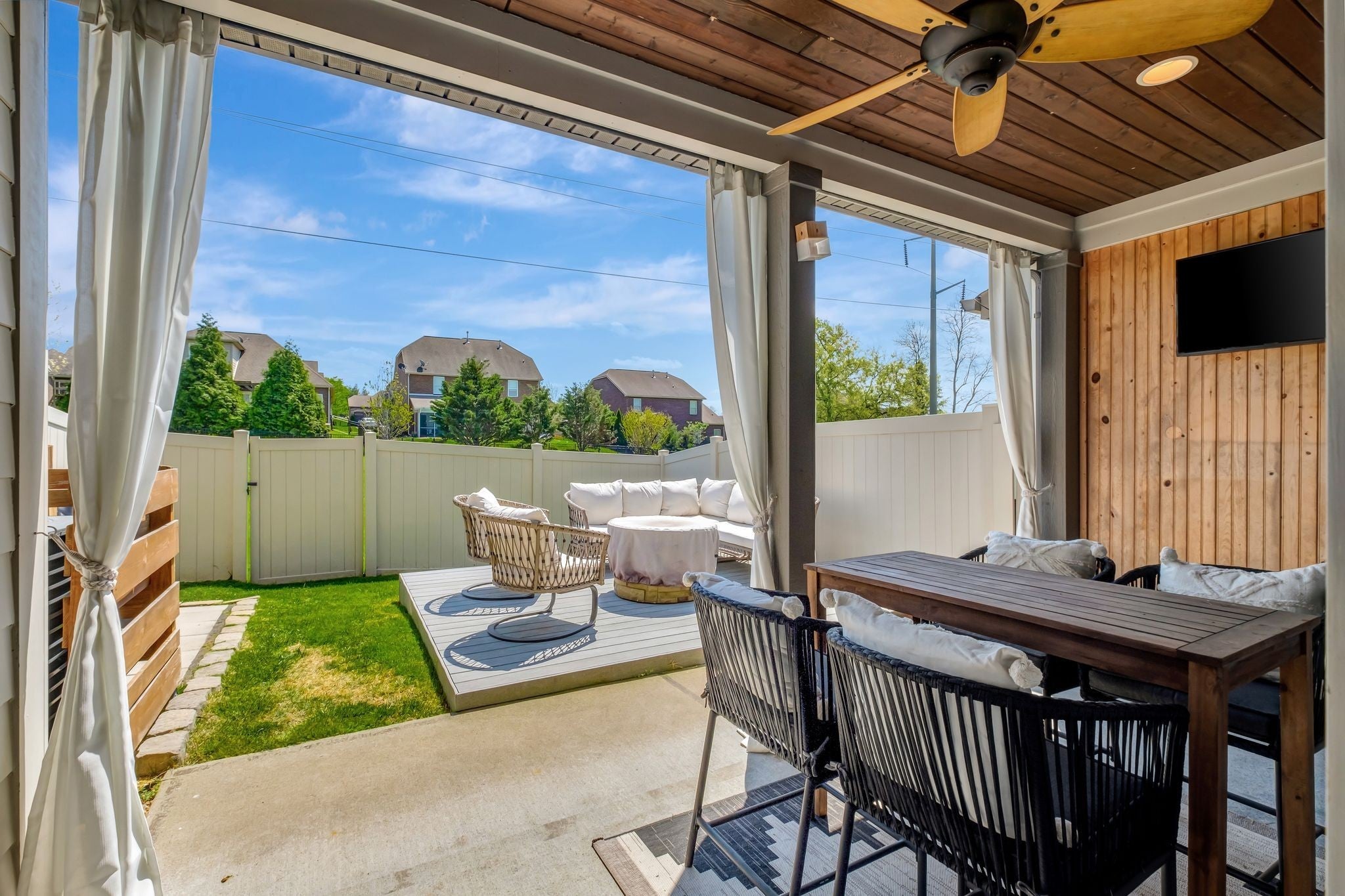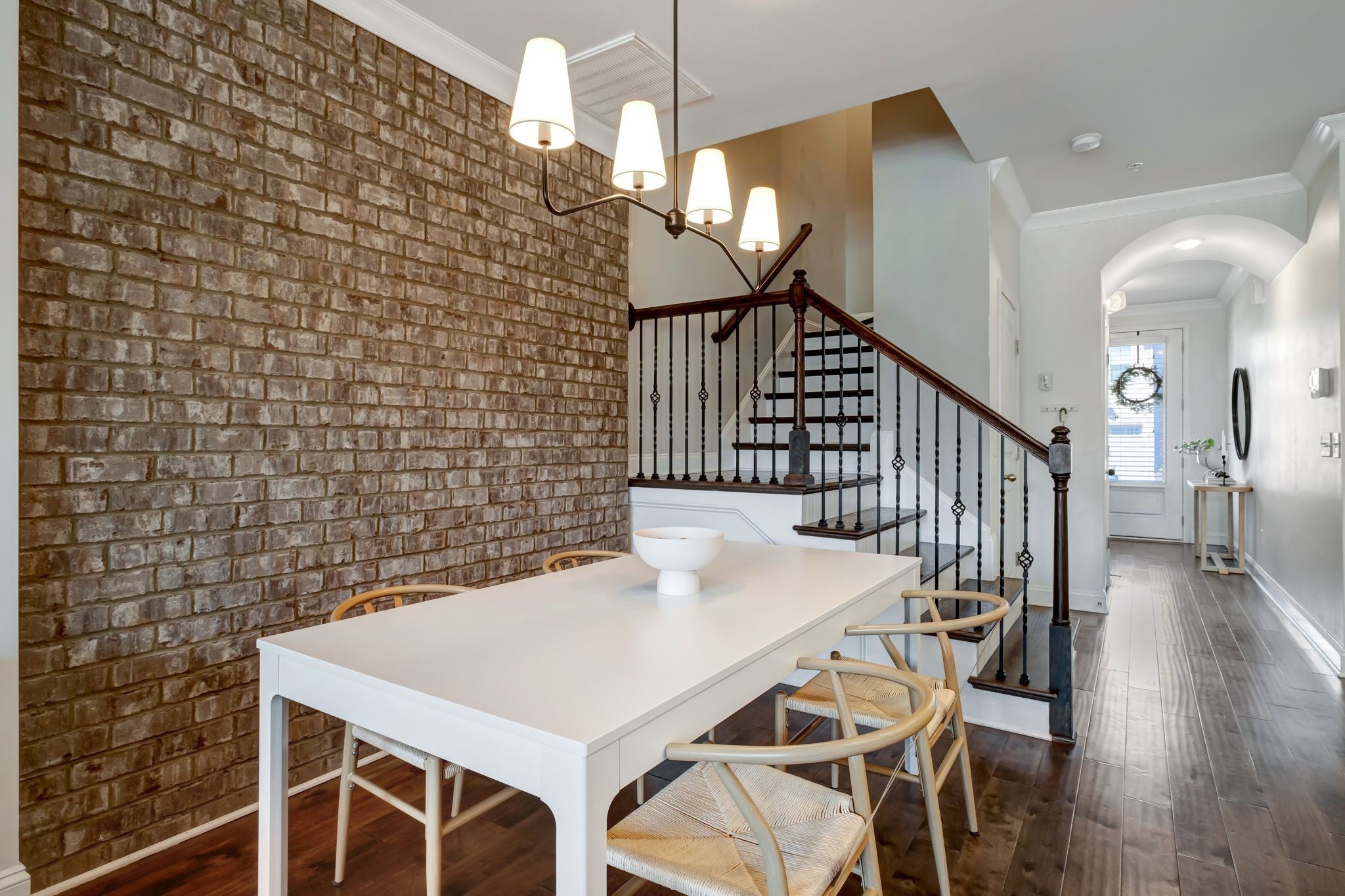 Welcome to 1440 Channing Drive in the highly desirable Fields of Canterbury! This charming townhome offers 9-foot ceilings and hardwood flooring throughout the main level. The open-concept design is highlighted by arched doorways and a beautiful brick accent wall. Step outside to a private, fenced backyard ideal for entertaining, featuring both covered and open-air spaces. Upstairs, the spacious primary suite includes a large custom walk-in closet, with a conveniently located laundry room just steps from all bedrooms. Recent upgrades include a new HVAC system and water heater. Enjoy all the community amenities, including pools, playground, sidewalks, and scenic walking trails. Ideally located just minutes from Berry Farms, Franklin, and Spring Hill, with easy access to I-840.