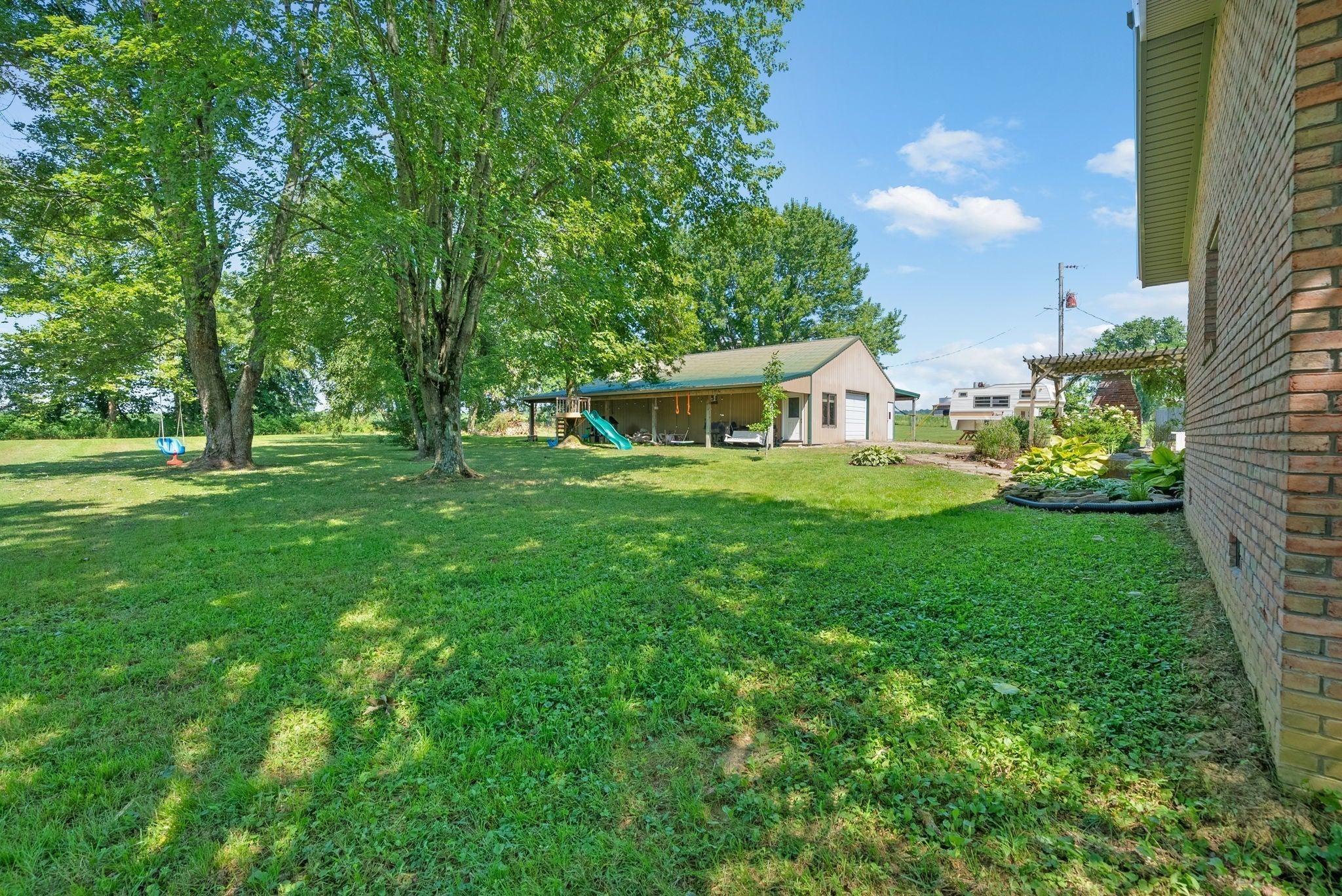 VA assumable loan at 2.625%! Beautifully remodeled all-brick ranch situated on 5.3 acres, featuring a 35x55 fully insulated detached garage/workshop and two story barn, both equipped with electricity. This stunning property is a dream come true, equipped with its own private pond. Inside, you'll find stunning hardwood floors, a mix of original charm and recent updates, including paint, modern light fixtures, and a brand new primary en-suite with full tile shower, soaker tub, dual shower heads, double vanities, and spacious his and hers closets. The kitchen features beautifully painted cabinets and tons of cabinetry. Ample storage and built ins throughout. You do not want to miss this opportunity to own your own slice of paradise. Schedule your showing today!