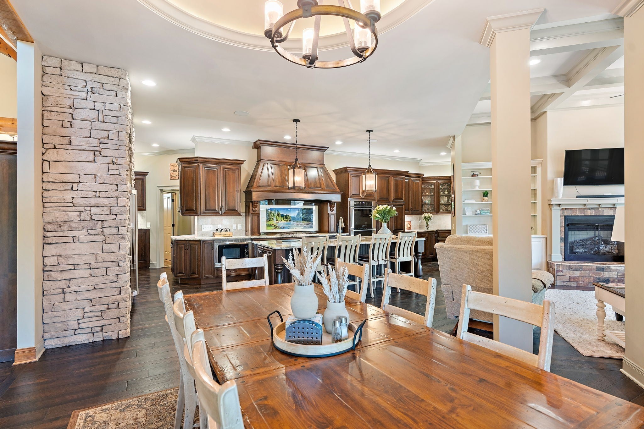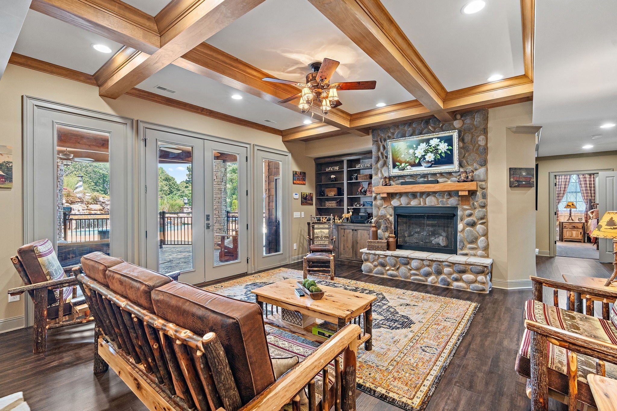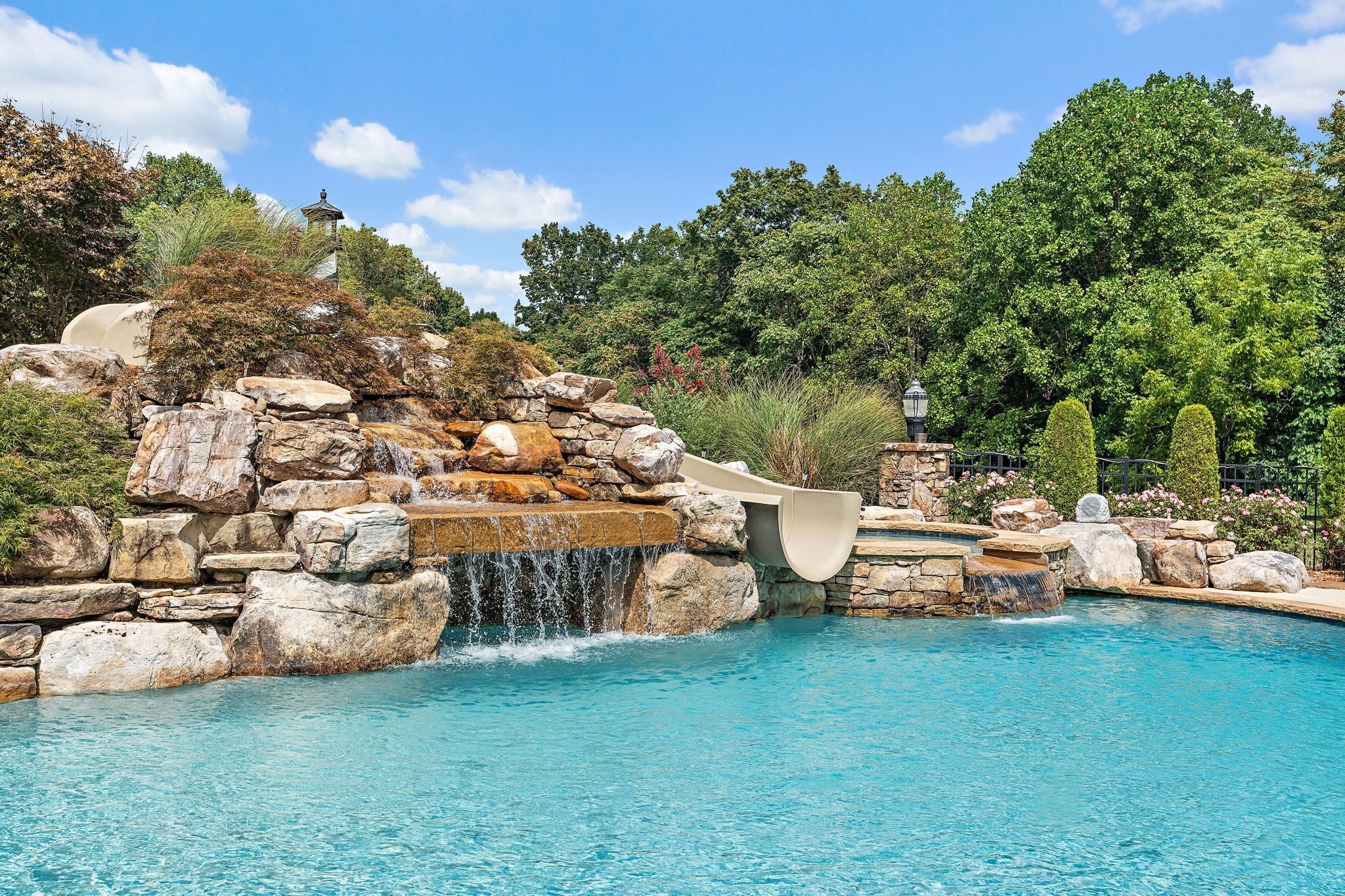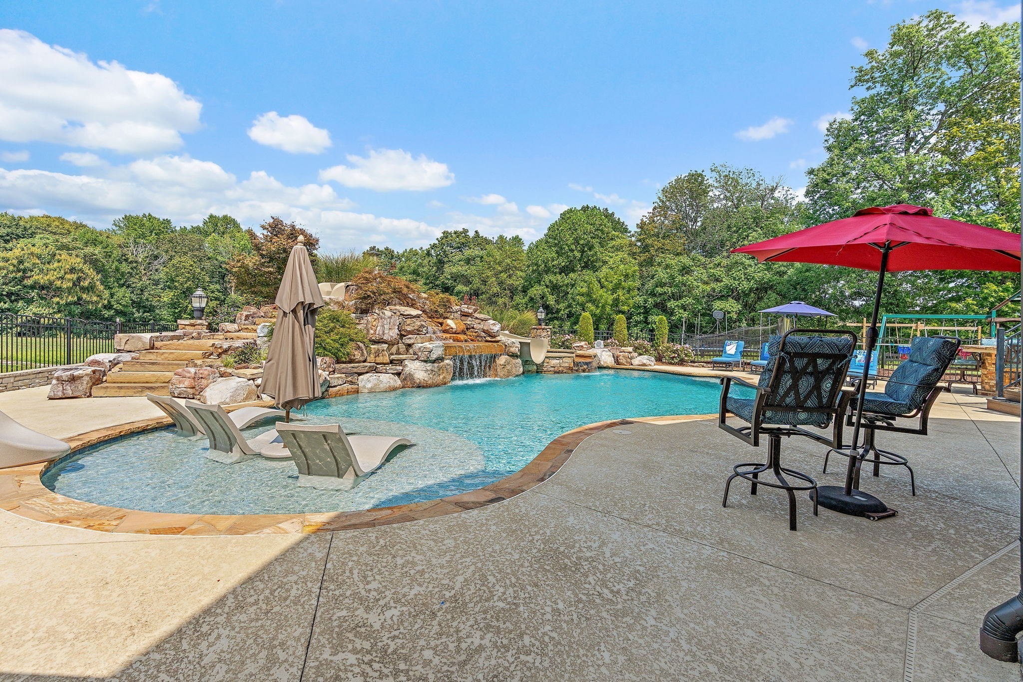 Absolutely stunning, custom-designed estate with top-of-the-line finishes throughout. This home is truly a must-see to fully appreciate every exquisite detail. From the moment you step through the front door, you’re greeted by an abundance of natural light, soaring ceilings, and a thoughtfully designed layout featuring a primary suite worthy of Architectural Digest. Enjoy the covered back deck overlooking a resort-style pool complete with a hot tub and waterslide, perfect for entertaining or unwinding in your private oasis. The chef’s kitchen boasts luxury appliances, a massive walk-in pantry, and a design that blends elegance with functionality. The main-level primary suite offers a spa-like retreat, featuring a soaking tub, steam shower, heated floors, and dual oversized walk-in closets. An open staircase leads to the lower level, where you’ll find two additional bedroom suites, a spacious bonus/rec room, and a private movie theater for the ultimate entertainment experience. The property also includes a detached four-car garage with an RV bay, a dedicated “car wash” garage, and a fully equipped apartment on the second level — perfect for guests or income potential. All of this sits on 10 pristine acres with a tranquil pond, offering unmatched privacy and beauty. This exceptional home truly has too many features to list — a rare gem that combines luxury, comfort, and functionality.