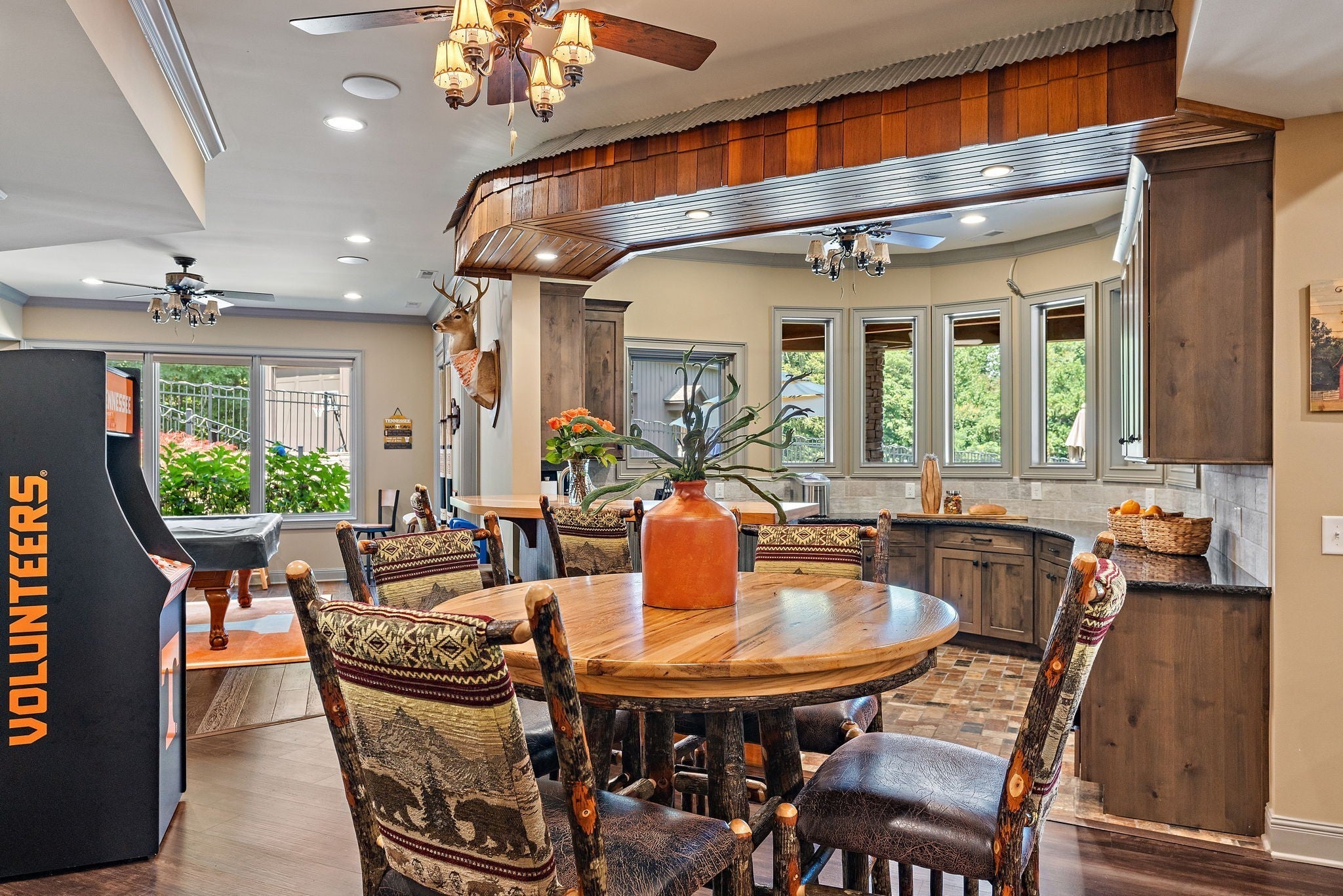 - Bookcases, Built-in Features, Ceiling Fan(s), Entrance Foyer, Extra Closets, High Ceilings, Hot Tub, In-Law Floorplan, Open Floorplan, Pantry, Walk-In Closet(s)