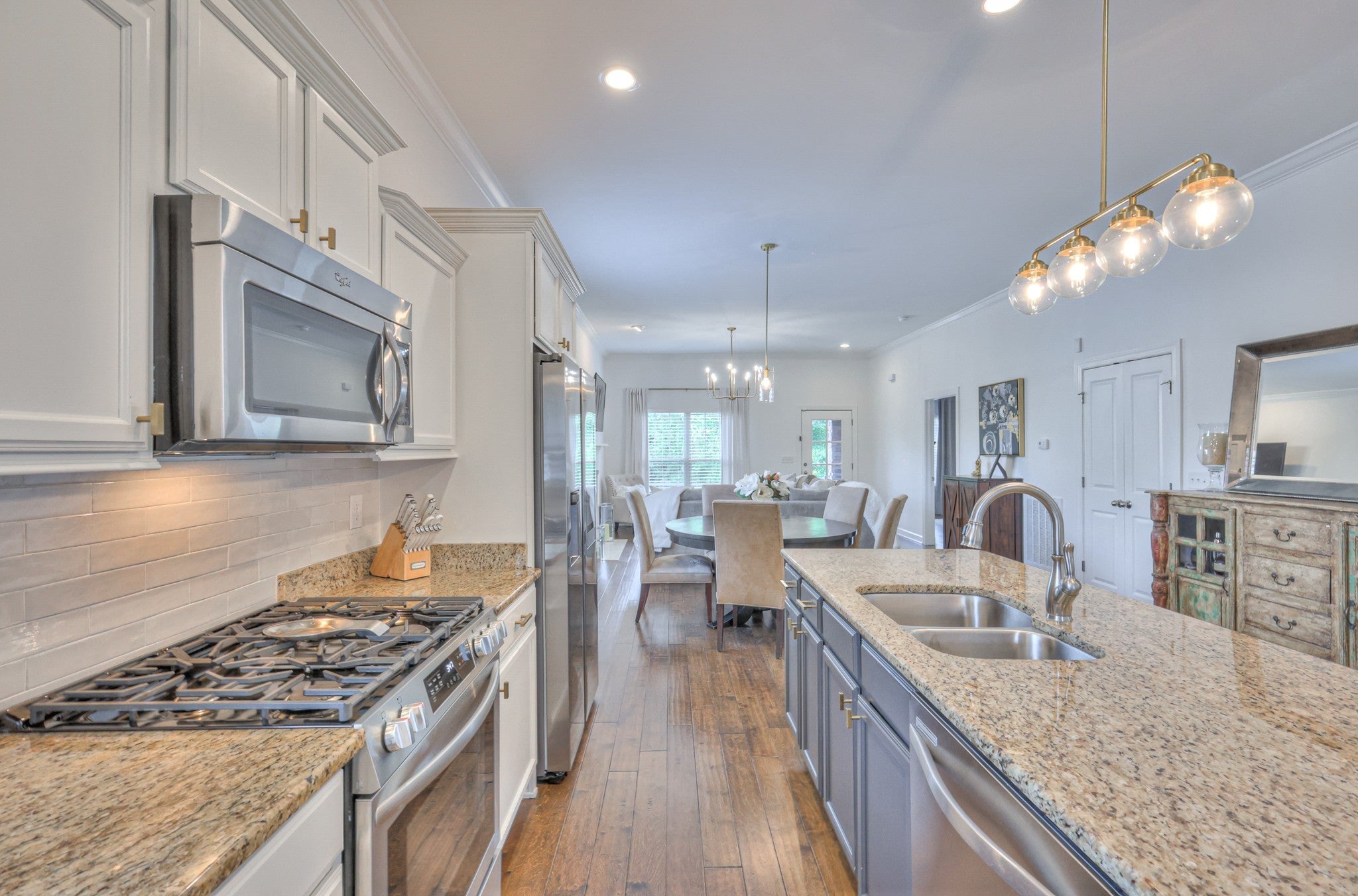 - Built-In Gas Oven, Built-In Gas Range, Dishwasher, Disposal, Dryer, Ice Maker, Microwave, Refrigerator, Stainless Steel Appliance(s), Washer
