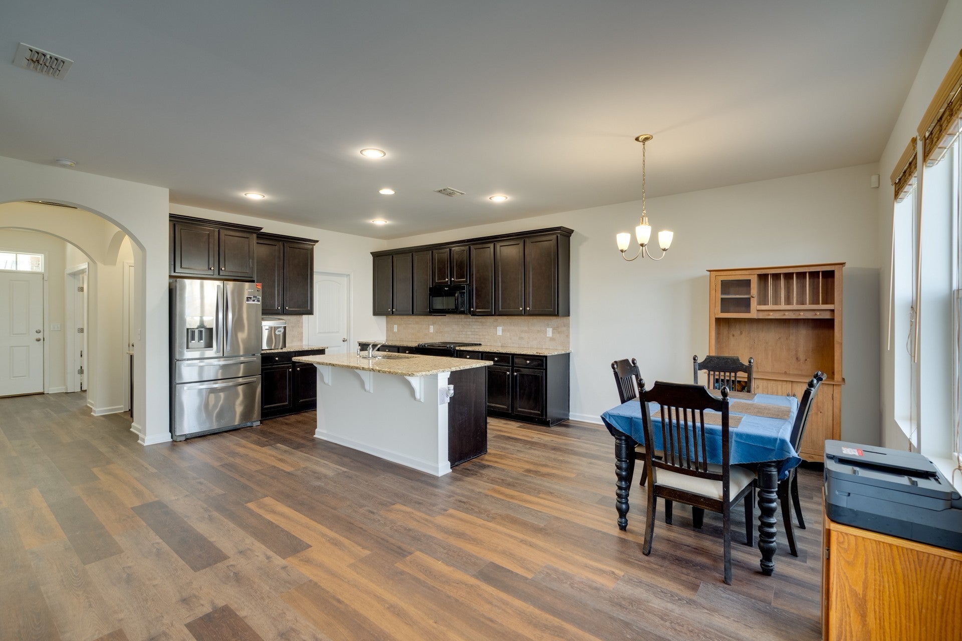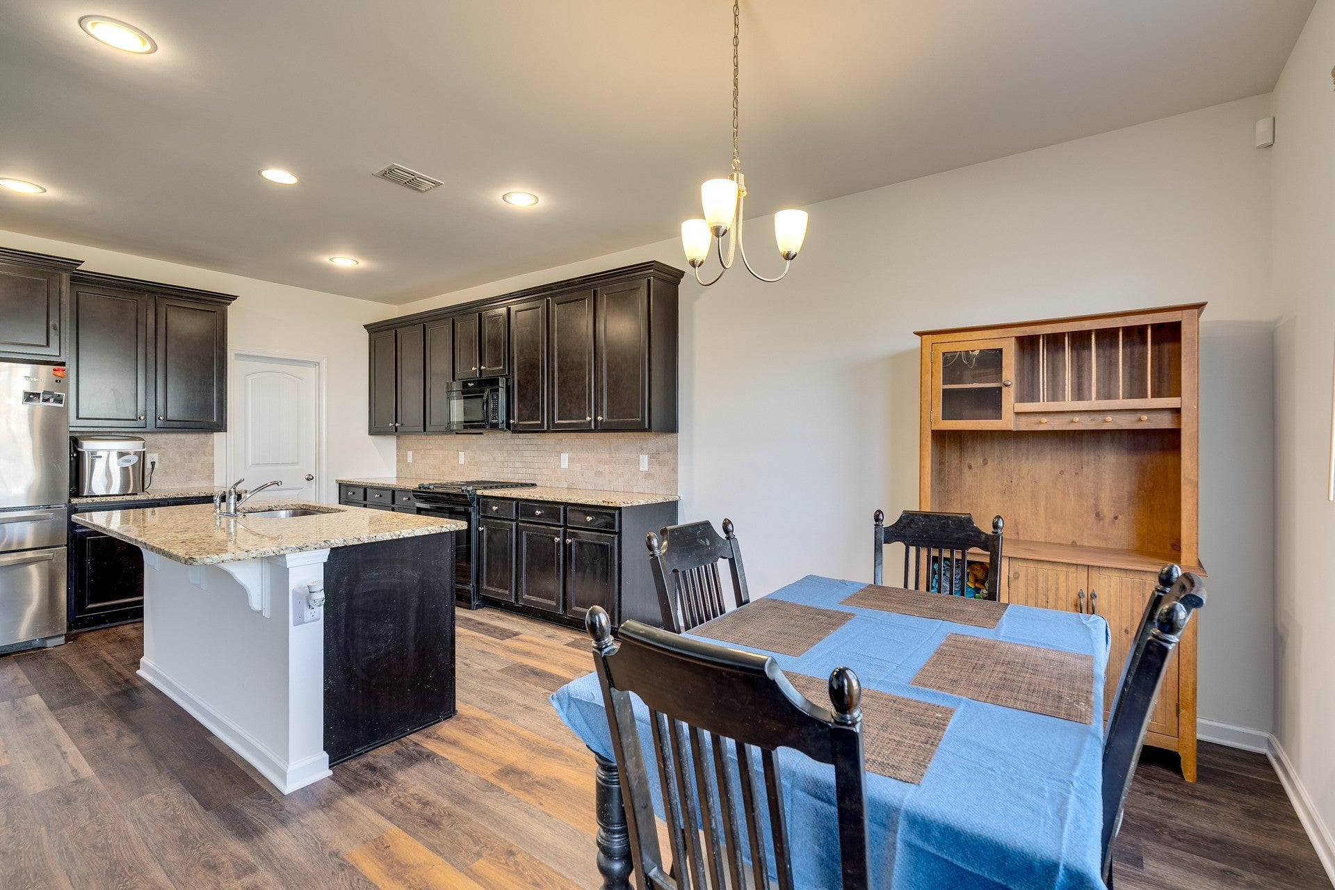 - Gas Range, Dishwasher, Disposal, Microwave, Refrigerator