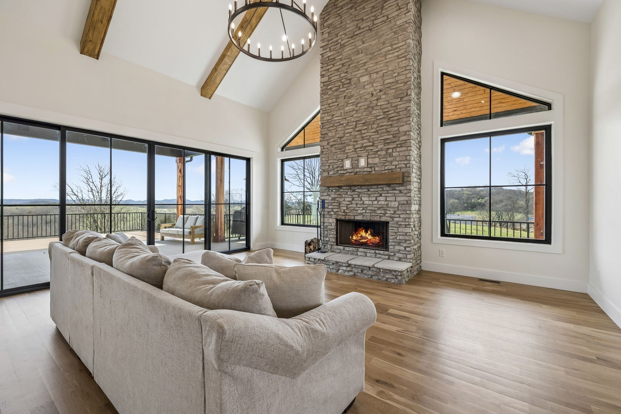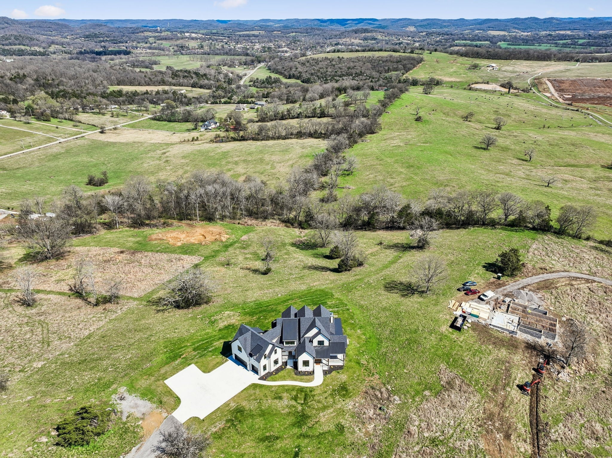 Welcome to an extraordinary estate where luxury, space, and refined design come together seamlessly. This stunning 4-bedroom, 4-bathroom mansion spans an impressive 4,850 square feet and is set on 8.5 private acres, offering the perfect balance of elegance and tranquility. Step inside to discover a thoughtfully designed open-concept layout, ideal for both everyday living and upscale entertaining. The home features high-end finishes throughout, including custom cabinetry, designer lighting, premium flooring, and top-of-the-line appliances. Expansive living areas are filled with natural light, creating a warm yet sophisticated atmosphere.