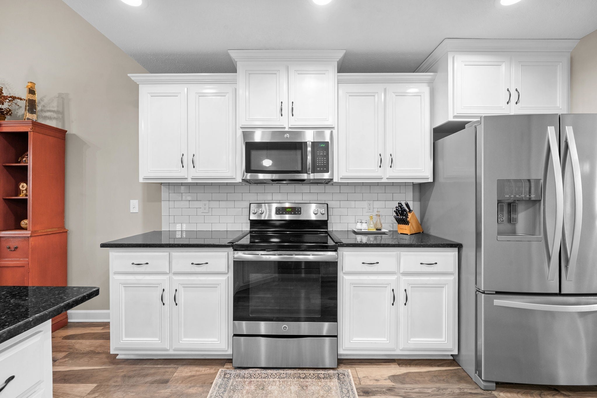- Electric Oven, Electric Range, Dishwasher, Disposal, Microwave, Refrigerator, Stainless Steel Appliance(s)