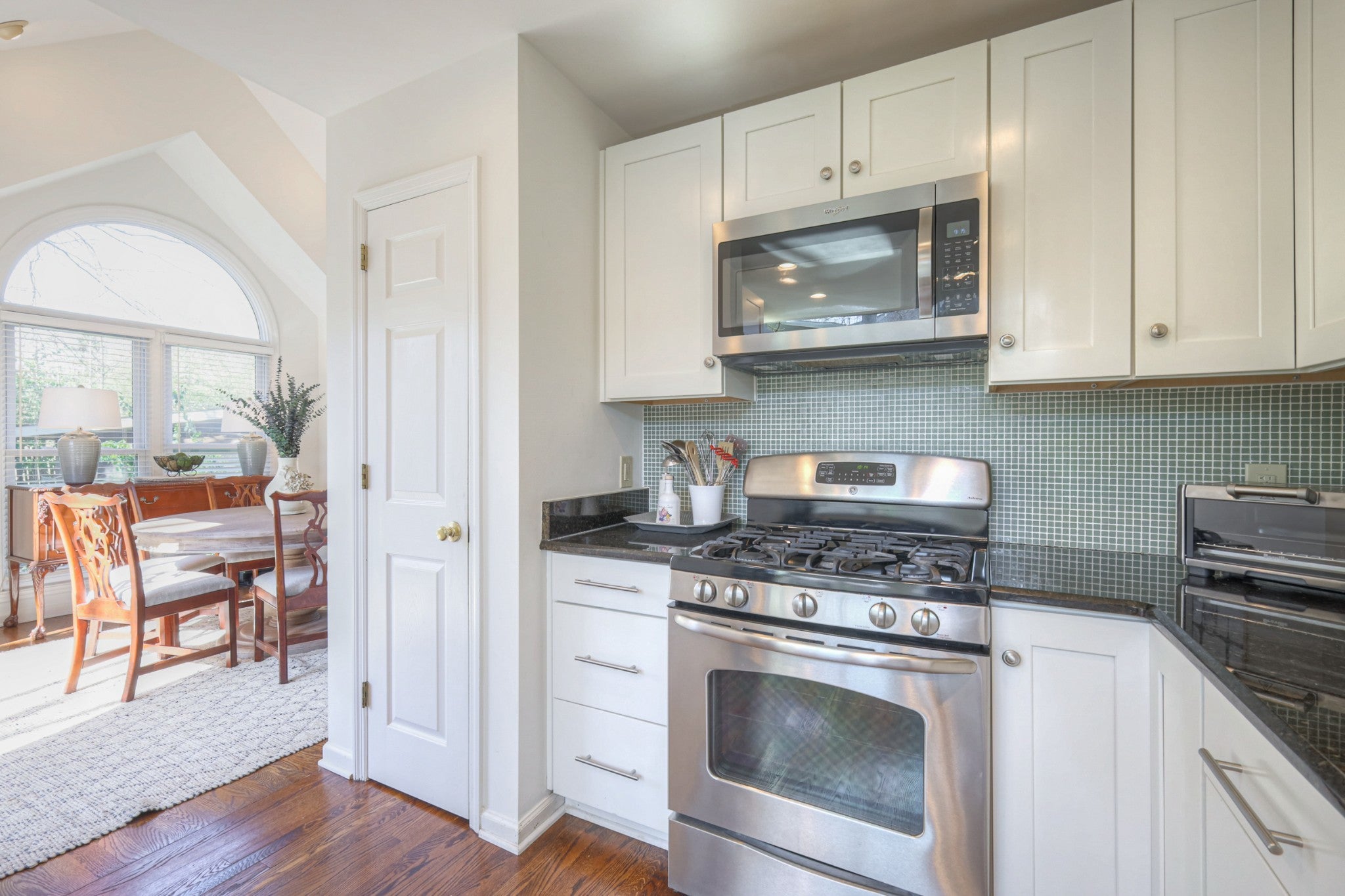 - Built-In Electric Oven, Built-In Gas Range, Dishwasher, Disposal, Microwave, Refrigerator, Stainless Steel Appliance(s)
