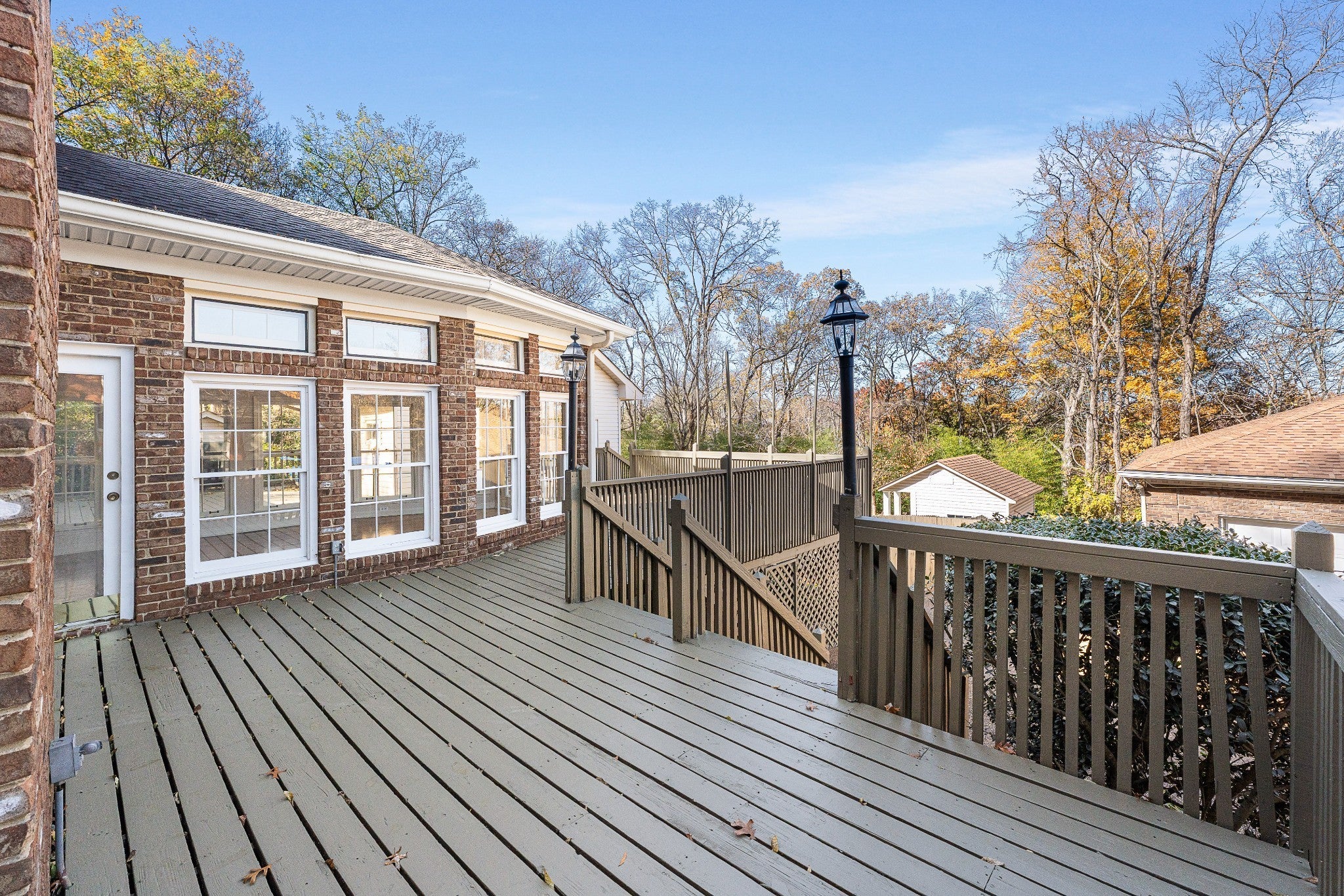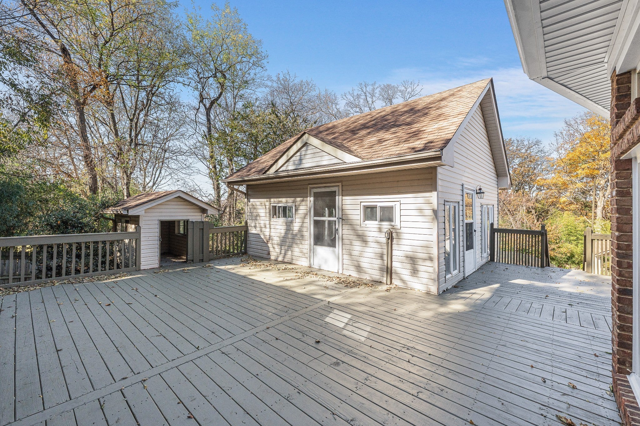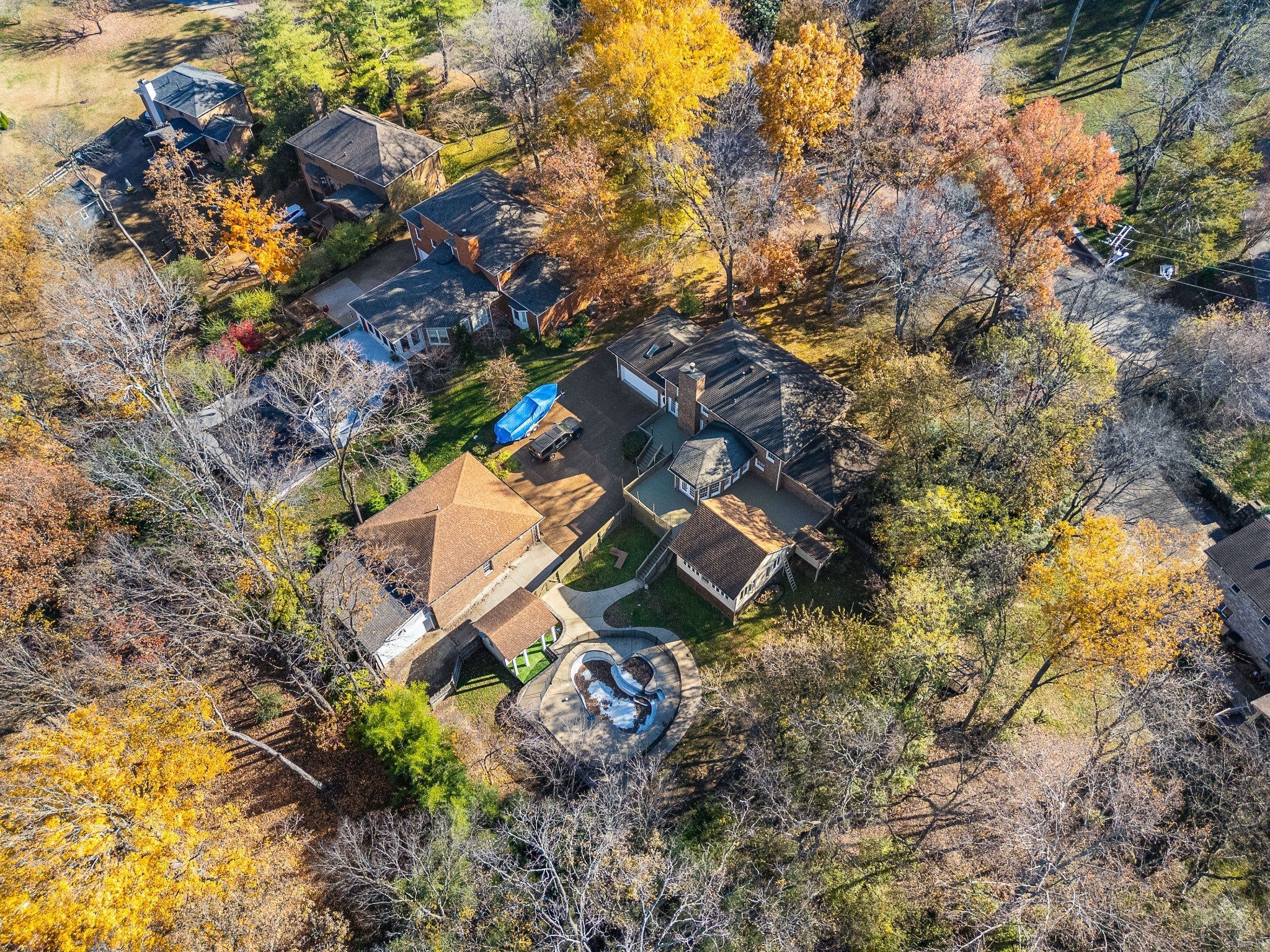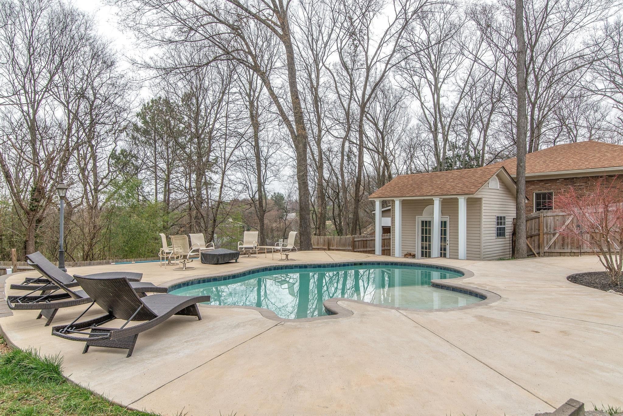 Welcome to 5936 Woodland Hills Drive — a rare opportunity to own a spectacular residence on one of the most coveted streets in the neighborhood. Set on over half an acre of beautifully landscaped grounds, this exceptional home combines luxurious living with incredible versatility and storage. Step inside to be greeted by a gorgeous den with custom built-in bookcases, flowing seamlessly into an oversized formal dining room perfectly positioned adjacent to the chef’s kitchen. The spacious kitchen boasts abundant natural light, stainless steel appliances, and opens directly to both the cozy family room and a sun drenched sunroom overlooking the expansive wrap-around deck, ideal for entertaining or quiet relaxation. The main-level owner’s suite is a true retreat, recently renovated with an oversized spa-like bathroom featuring a walk-in shower dual vanities with stone countertops, custom cabinetry, and ample separate storage for two. Upstairs, a second primary suite with its own full en-suite bath offers privacy and flexibility — perfect for guests, in-laws, or teens.Outdoor living is taken to the next level with a massive wrap-around deck, a charming detached sunroom/art studio/pool house/gym, and a sparkling pool surrounded by a generous pool deck. The pool is currently being professionally refinished (fully paid by seller at closing), allowing the new owner to choose their preferred surface color and finish for a completely custom look. Car enthusiasts and hobbyists will fall in love with the rare 5-CAR GARAGE capacity: a convenient attached 2-car garage plus a detached 3-car oversized garage plenty of room for vehicles, boats, projects, and more. The wide aggregate driveway provides abundant parking and easy maneuvering for gatherings of any size.