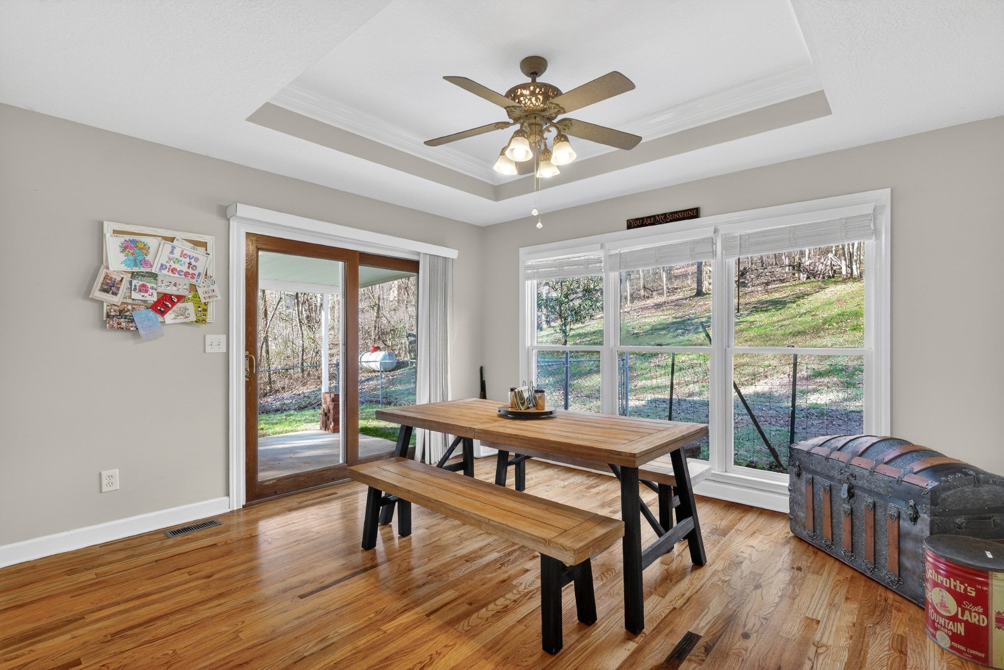 Peaceful and private country property featuring a 3-bedroom, 2-bath home with a bonus room on 4.4 acres with creek. So much about this home is welcoming, from the bright windows throughout the home with a view of only nature, to the functional layout with REAL hardwood floors and fresh paint throughout, this home feels like a retreat. The living room features a gas fireplace with tall, vaulted ceiling and large windows allowing a lot of natural light. The kitchen offers ample cabinets with granite counter tops and flows into a large dining area that feels airy and inviting with French doors that lead to a covered patio. The bonus room has an additional walk in storage area with utility sink that is perfect for canning or a mudroom. From the front porch you can hear the year-round creek flowing, the creek runs along the front of the property, enhancing the natural setting and only the sounds of nature can be heard. An automatic gated driveway provides added privacy and quiet surroundings. The property includes a 28x36 shop with a car lift, along with a airconditioned dog kennel, and fenced pasture—well suited for livestock, hobbies, or equipment storage. The entire property has a perimeter fence. Great opportunity to enjoy a relaxed country lifestyle with practical improvements already in place. Don’t miss the property video! Roof 2025, HVAC 2017. Home in 4.4 +/- acres to be surveyed out before closing Home is also listed with an additional 21.791 acres MLS # 3080439