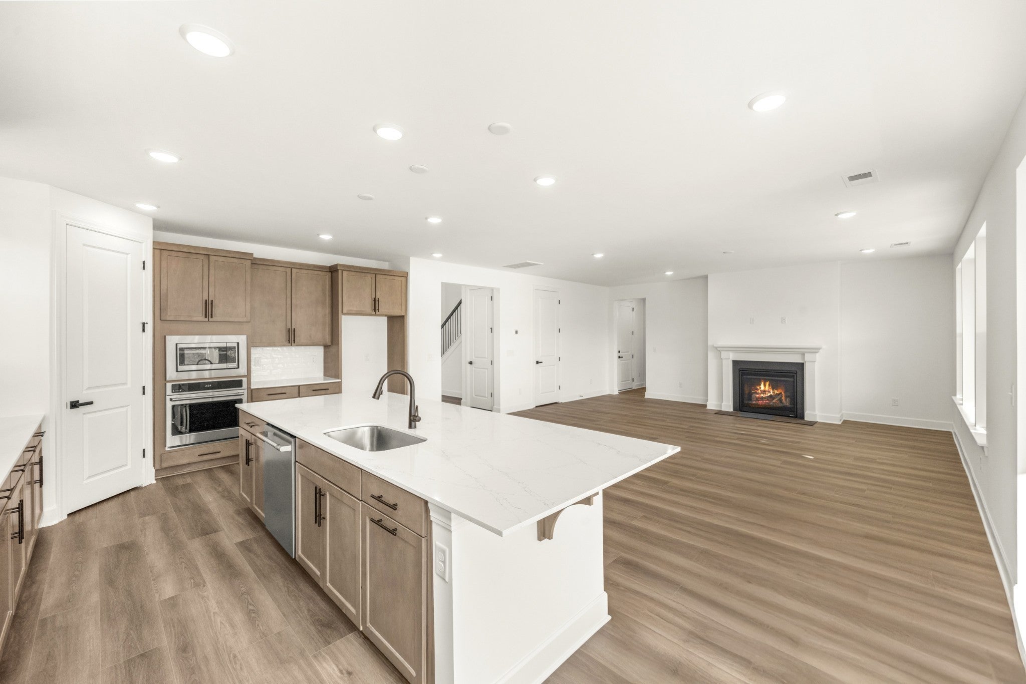 - Built-In Electric Oven, Cooktop, Dishwasher, Disposal, Microwave, Refrigerator, Stainless Steel Appliance(s)