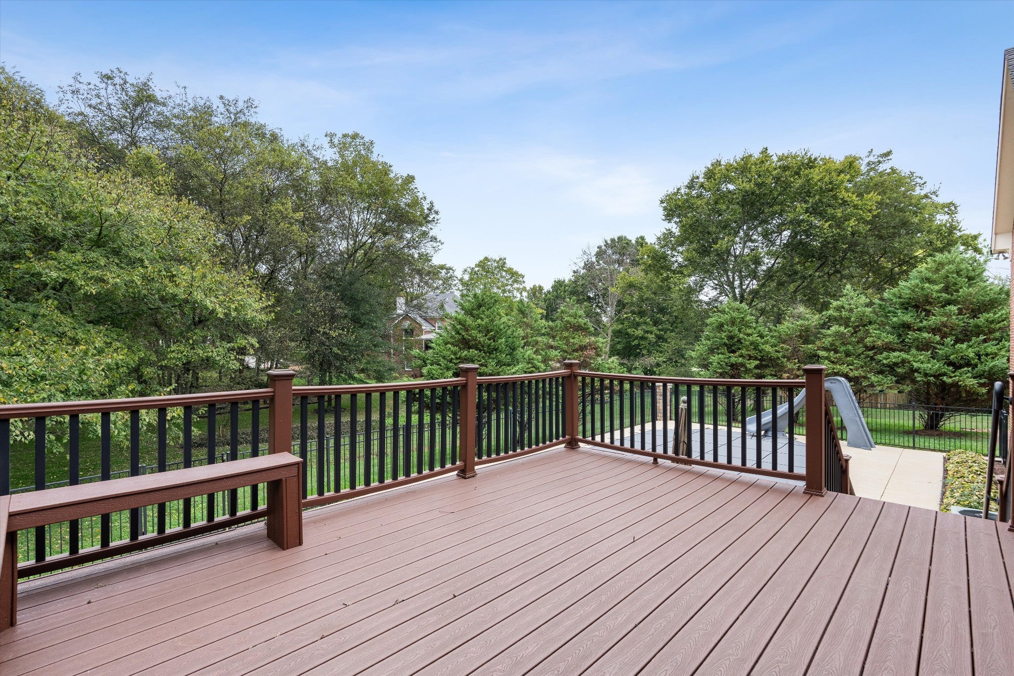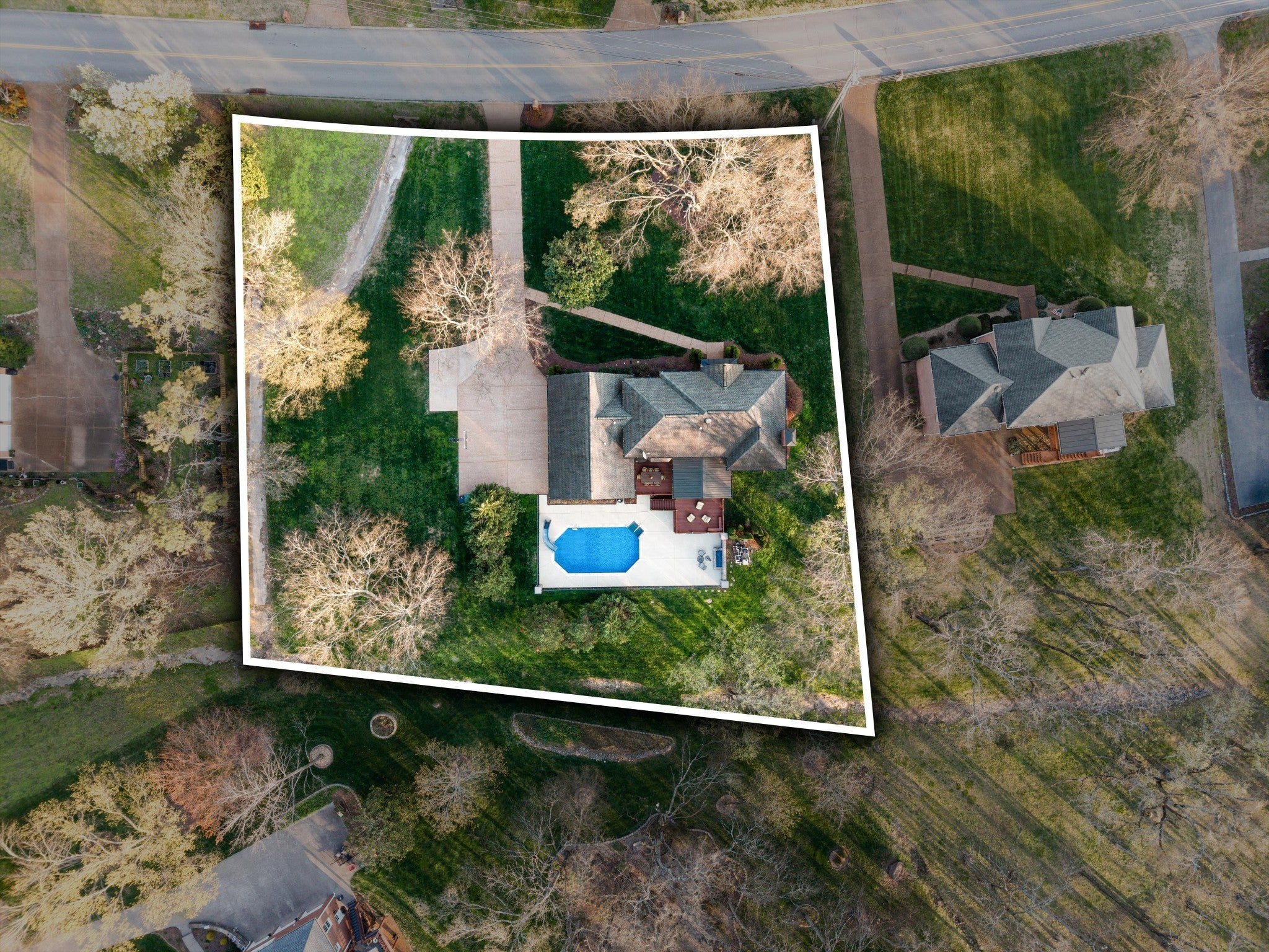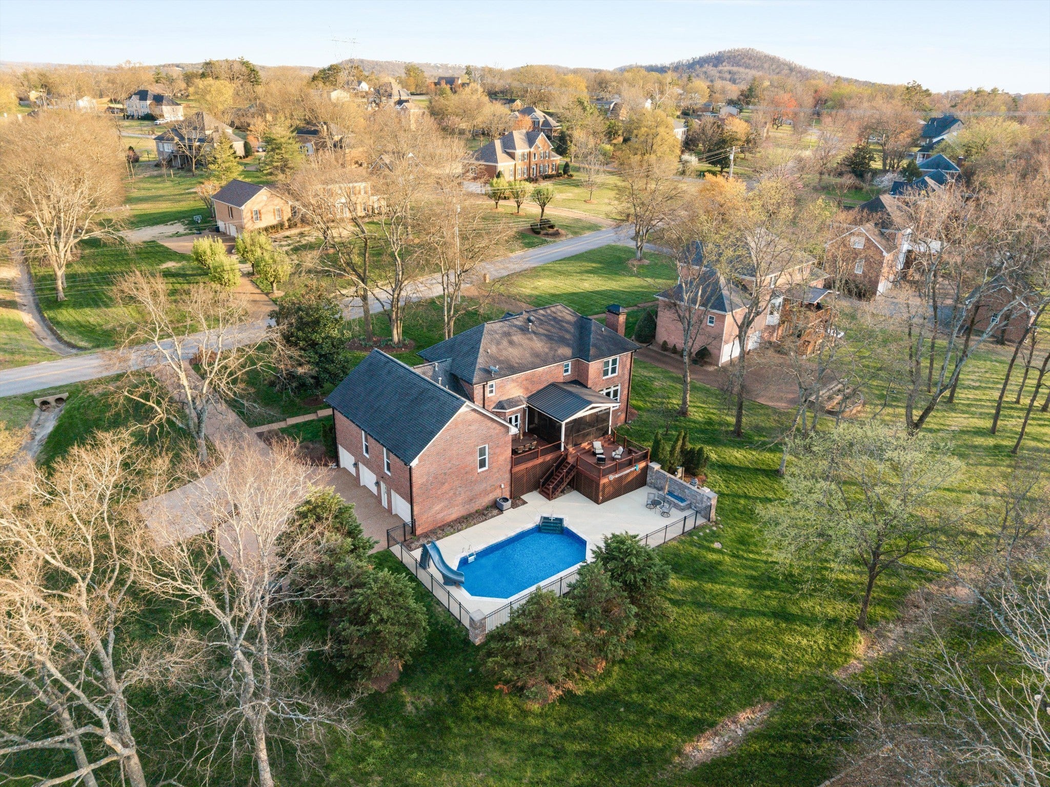 Rare one-acre Brentwood setting with a private backyard retreat and interstate access just minutes away. Beautiful landscaping frames the property, creating a serene, park-like atmosphere. The backyard is designed for both relaxation and entertaining, featuring a private pool with a slide and a built-in fire pit surrounded by mature trees for privacy. A Trex deck and covered porch connect directly to the kitchen, creating an effortless indoor-outdoor living experience. Located in an established neighborhood without an HOA, the home has been thoughtfully maintained with a new HVAC system and energy-efficient windows. Inside, the home offers four en-suite bedrooms, providing comfort and privacy for both family and guests. The layout features a primary suite upstairs with two additional bedrooms, while a fourth bedroom on the main level sits just off the spacious family room, ideal for guests or flexible living. The primary bathroom has been thoughtfully updated, and the kitchen features quartz countertops and a new counter-depth refrigerator. Additional highlights include hardwood floors throughout and a three-car garage with abundant storage. Neighborhood access to Brentwood’s trail system leads directly to Crockett Park, and the home is just minutes from Cool Springs shopping and interstate access. Zoned for highly sought-after Brentwood Middle and Brentwood High School.