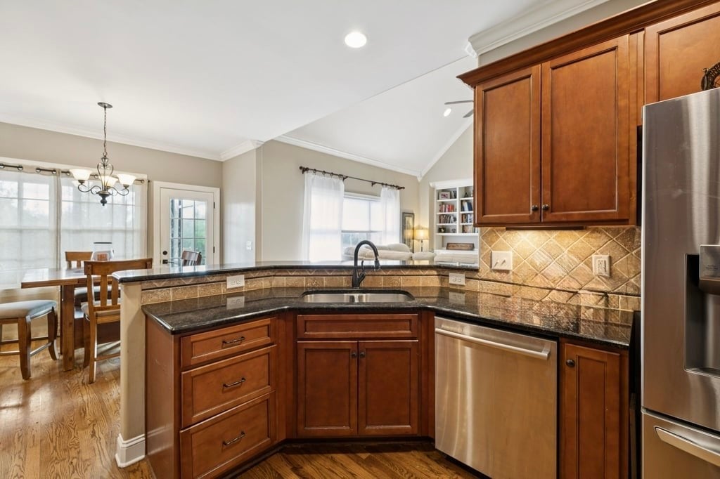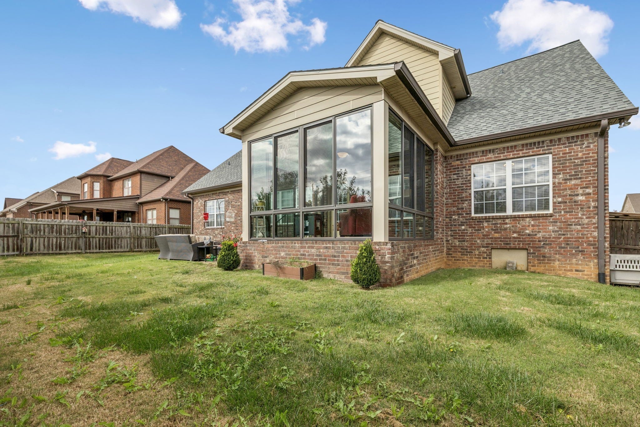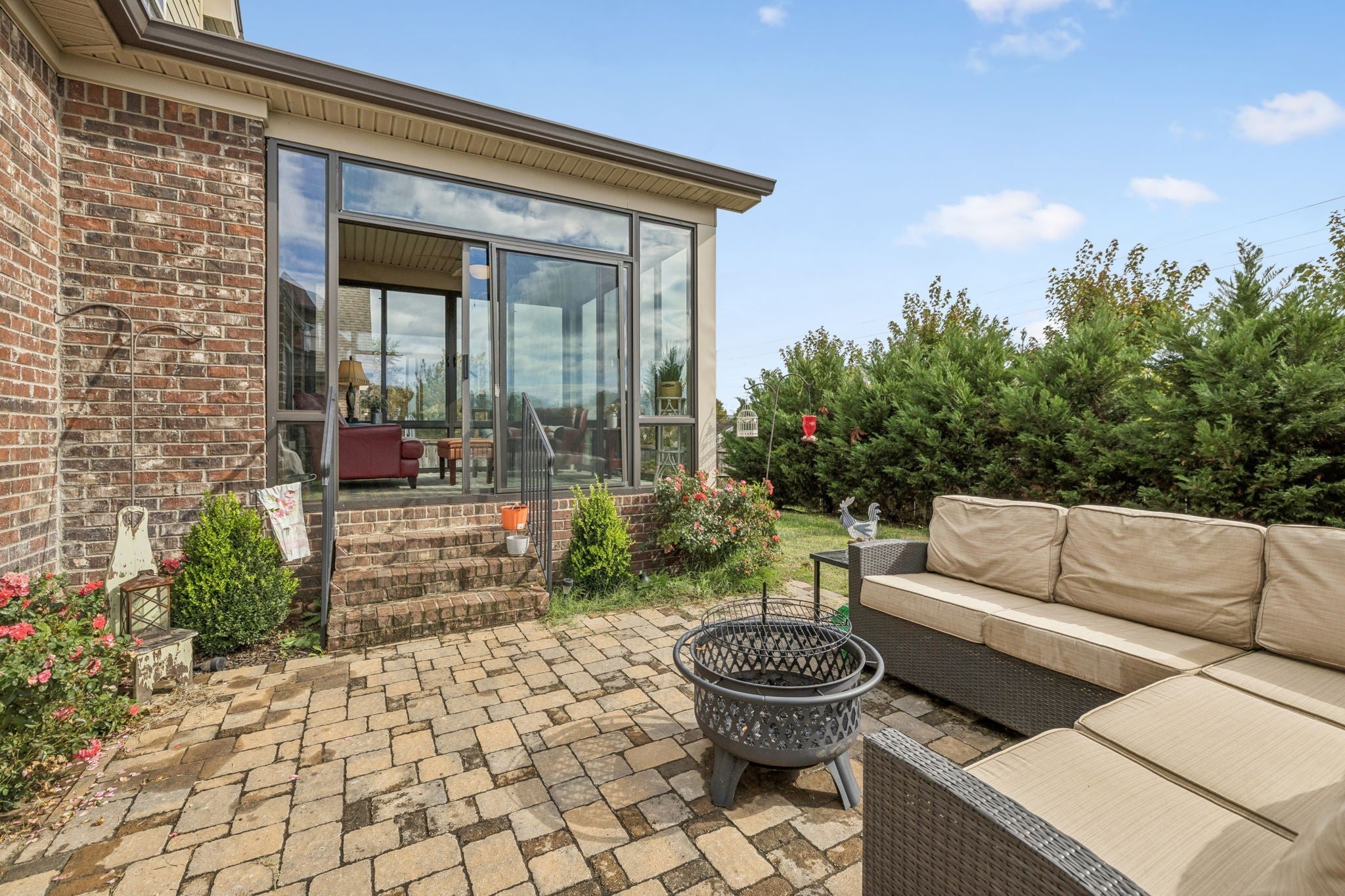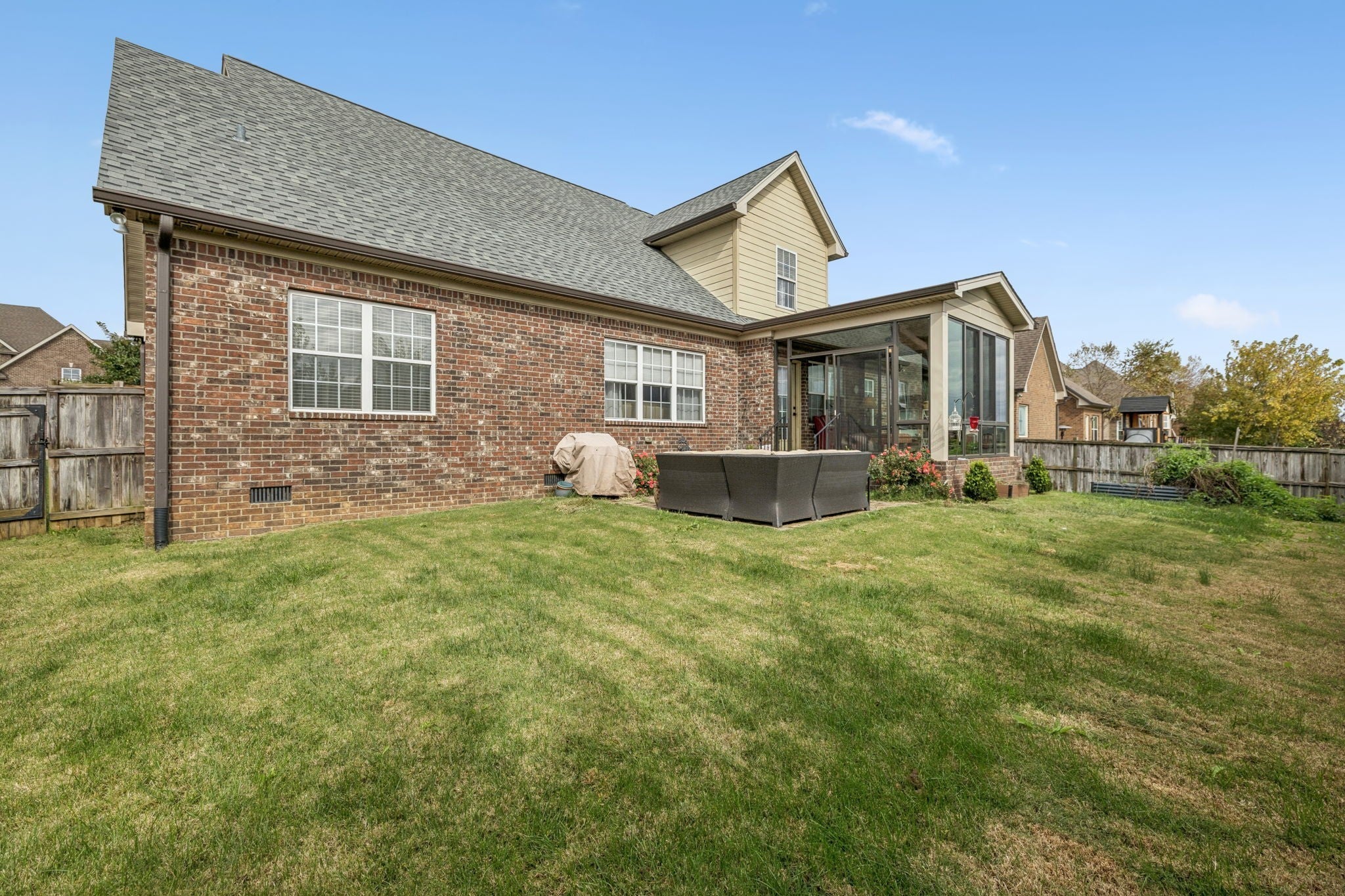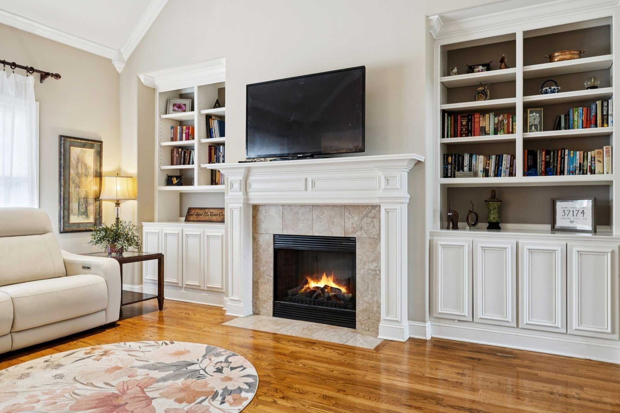 Beautiful all brick home zoned for Williamson County schools! Easy access to June Lake/I-65 and less than 10 min to the new Port Royal Publix! Rare floorplan with primary suite and guest/mother-in-law suite on the main floor! Welcoming rocking chair front porch- the largest in the neighborhood! Bright, open family room with vaulted ceiling features classic built-ins flanking the fireplace. Upgraded trim throughout and fresh paint in many rooms! Kitchen includes double ovens, side-by-side Instaview stainless fridge, expansive granite countertops, custom tile backsplash, and pantry. Retreat to the lovely master suite with tray ceiling, walk-in closet, oversized tub, tile shower and separate water closet. Built-in drop zone conveniently located between garage entry and laundry room (W/D convey!) Wonderful oversized bonus room w/large L-shaped sectional. Walk-in attic storage finished as office. New sunroom overlooks fenced back yard on almost quarter acre lot! Big ticket stuff is DONE! Roof (2021); Hot water heater (2025); Downstairs HVAC (2026)! DO NOT MISS this move-in ready opportunity to own over 3,000 sq ft in Williamson Co for under $700k!