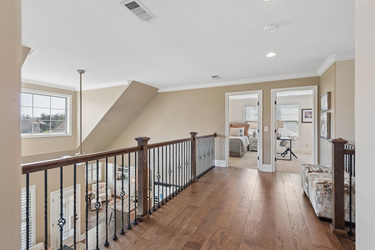 Tucked away on a quiet cul-de-sac in the highly sought-after Fountain Brooke community, this beautifully designed and professionally decorated 4-bedroom, 2.5-bath home offers an exceptional blend of comfort, style, and thoughtful detail. Spanning 3,125 square feet, this former model home showcases quality craftsmanship and upscale finishes throughout.The kitchen is a true centerpiece, featuring custom cabinetry, a striking vent hood, elegant quartzite countertops, and under-cabinet lighting. Perfectly suited for both everyday living and entertaining, the kitchen flows effortlessly into the main living areas, creating an inviting and functional space.A stunning staircase with wrought iron spindles adds architectural charm and sophistication, enhancing the home’s refined interior.Step outside to a covered, screened-in back porch—ideal for relaxing evenings—overlooking a private, fenced backyard that offers both tranquility and seclusion. Despite its peaceful setting, the home remains part of a vibrant neighborhood with desirable amenities, including a community pool and walkable sidewalks.With its prime location, designer touches, and spacious layout, this home presents a rare opportunity to enjoy both elegance and functionality in one of the area’s most desirable communities.