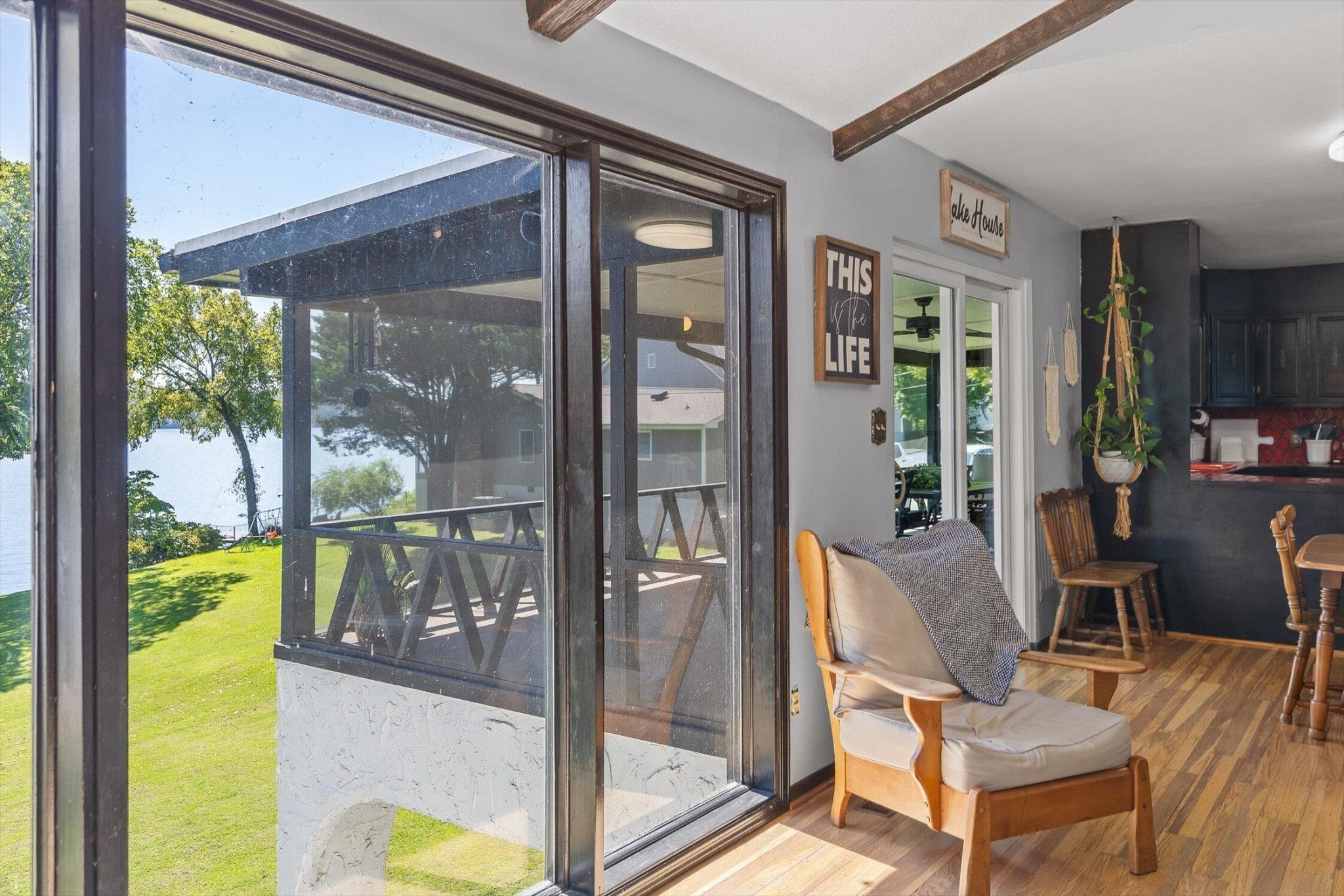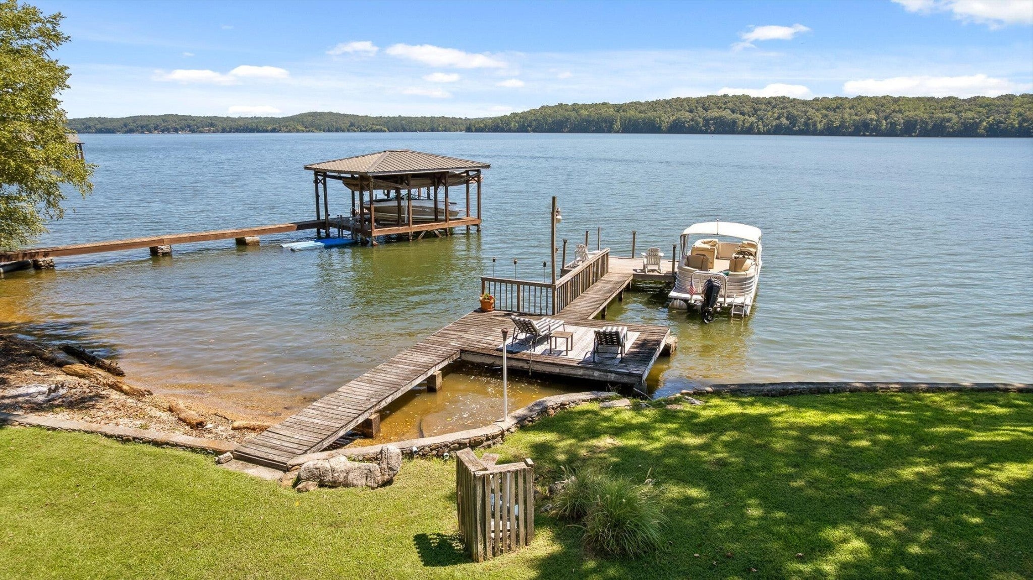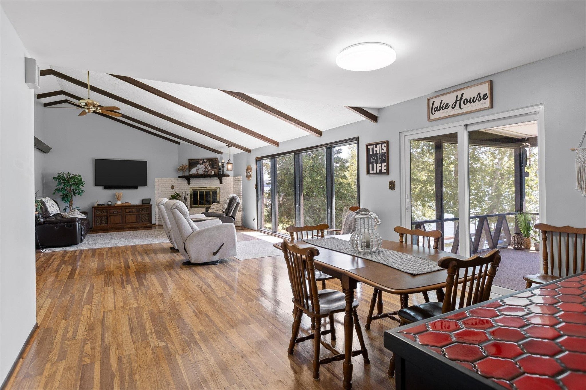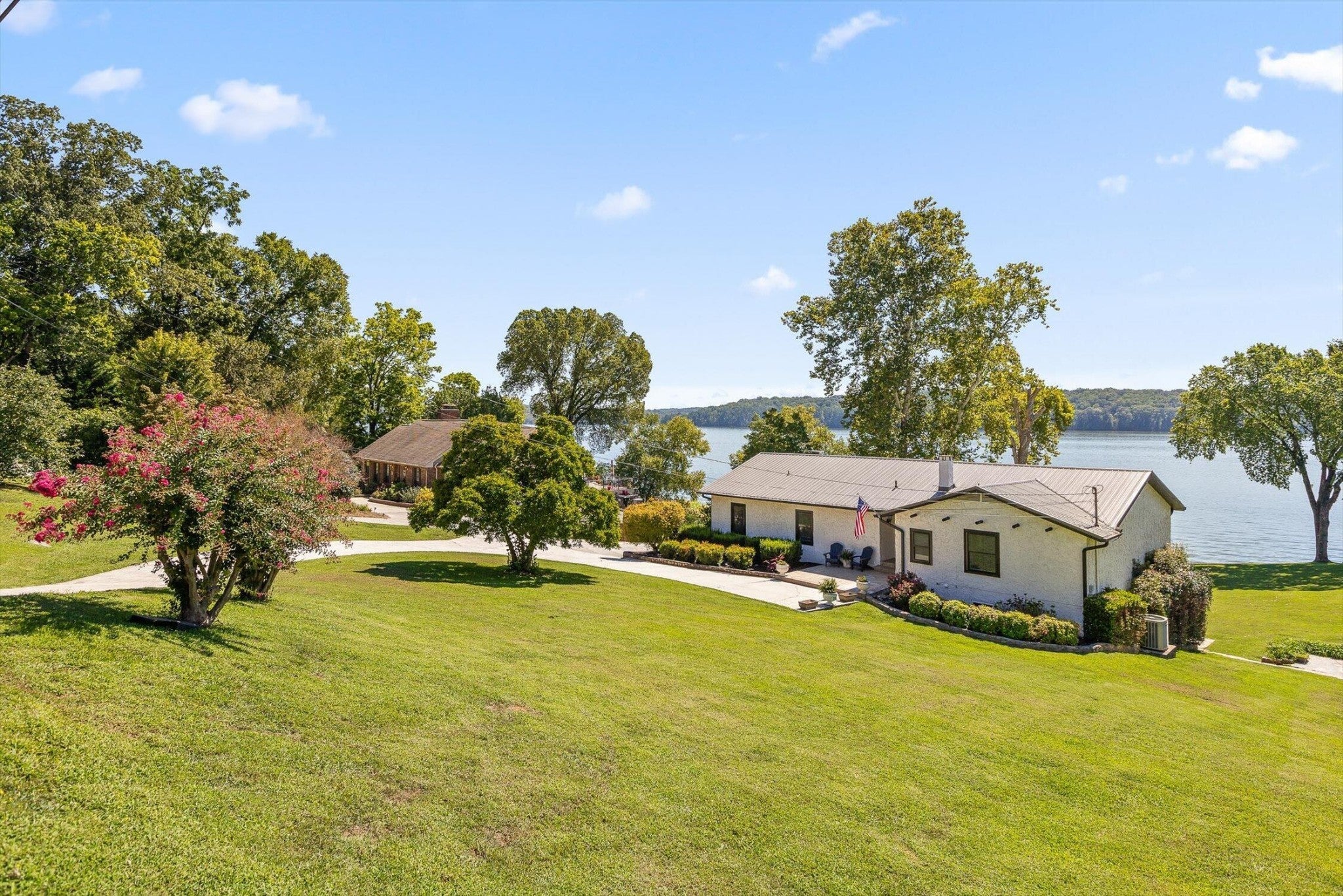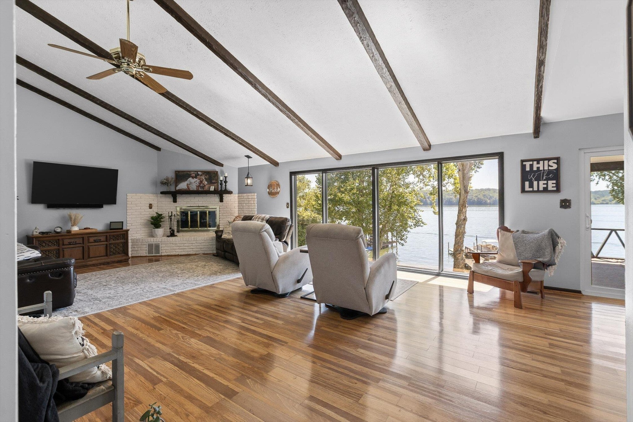 Main channel Chickamauga lakefront paradise on the TN River in this stunning four-bedroom, three-bathroom, 3 car garage home offering 2,960 square feet of open concept living. This exceptional property sits on a generous double lot with direct waterfront access, making it perfect for those who dream of sunrises every morning. View across the River/Lake is TVA land, so it will likely never change. Exterior of home was redone in '21 including: 60yr metal roof, all vinyl windows & 3 sliders, paint, and gutters w/guards, front door. The spacious interior flows seamlessly throughout, with the primary bedroom serving as a true retreat. New carpet in two additional bedrooms providing flexibility for family, guests, or that home office you've been planning. Easy to clean with the Central Vac system. The finished basement adds valuable living space and storage, because let's face it - who doesn't need a place to hide seasonal decorations and exercise equipment? Tons of storage in the unfinished basement area, too. Step outside to experience the true magic of lakefront living on your main level rear screened porch, or rear covered porch. The expansive outdoor space includes your own private dock, perfect for morning coffee with the fish or evening gatherings under the stars. Full yard irrigation system with lake pump. Whether you're launching a kayak, swimming on the beach with the kids or dogs, hosting a barbecue, or simply enjoying the peaceful water sounds, this outdoor oasis delivers year-round enjoyment. The Soddy-Daisy neighborhood offers the perfect blend of tranquil lakeside living and a community dock & boat ramp. You'll find yourself just minutes from more recreational opportunities, and 30 minutes to Chattanooga, Dunlap, or Dayton. This rare combination of main channel waterfront, spacious interiors, and prime location creates an opportunity that doesn't come often. The dock is ready, with breathtaking views, and your lakefront lifestyle awaits.