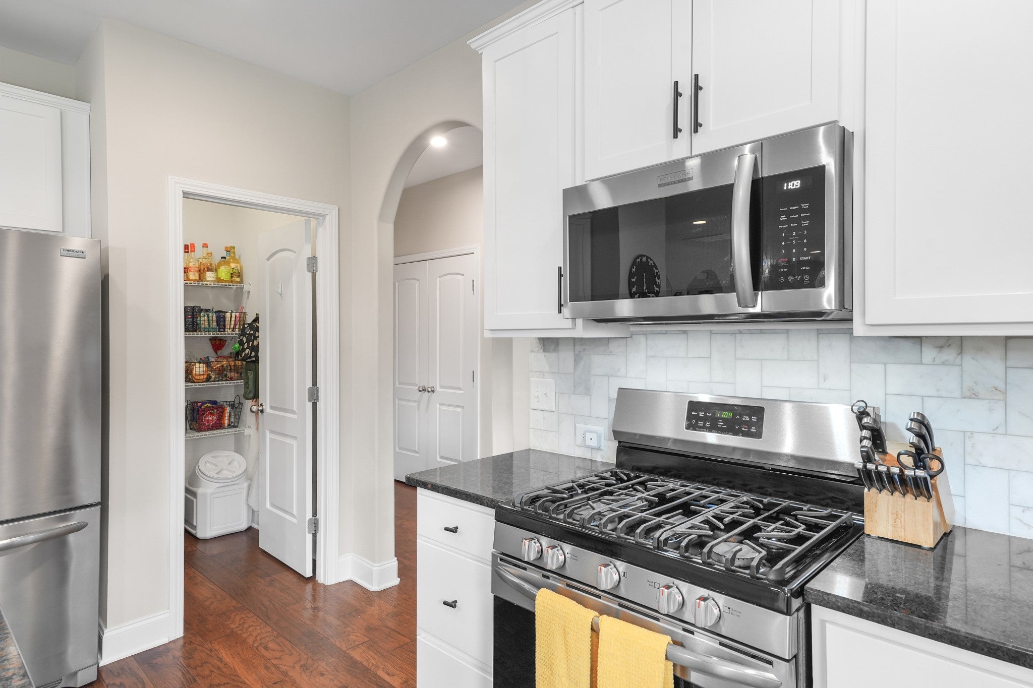 - Gas Oven, Gas Range, Dishwasher, Disposal, Ice Maker, Microwave, Refrigerator, Stainless Steel Appliance(s)