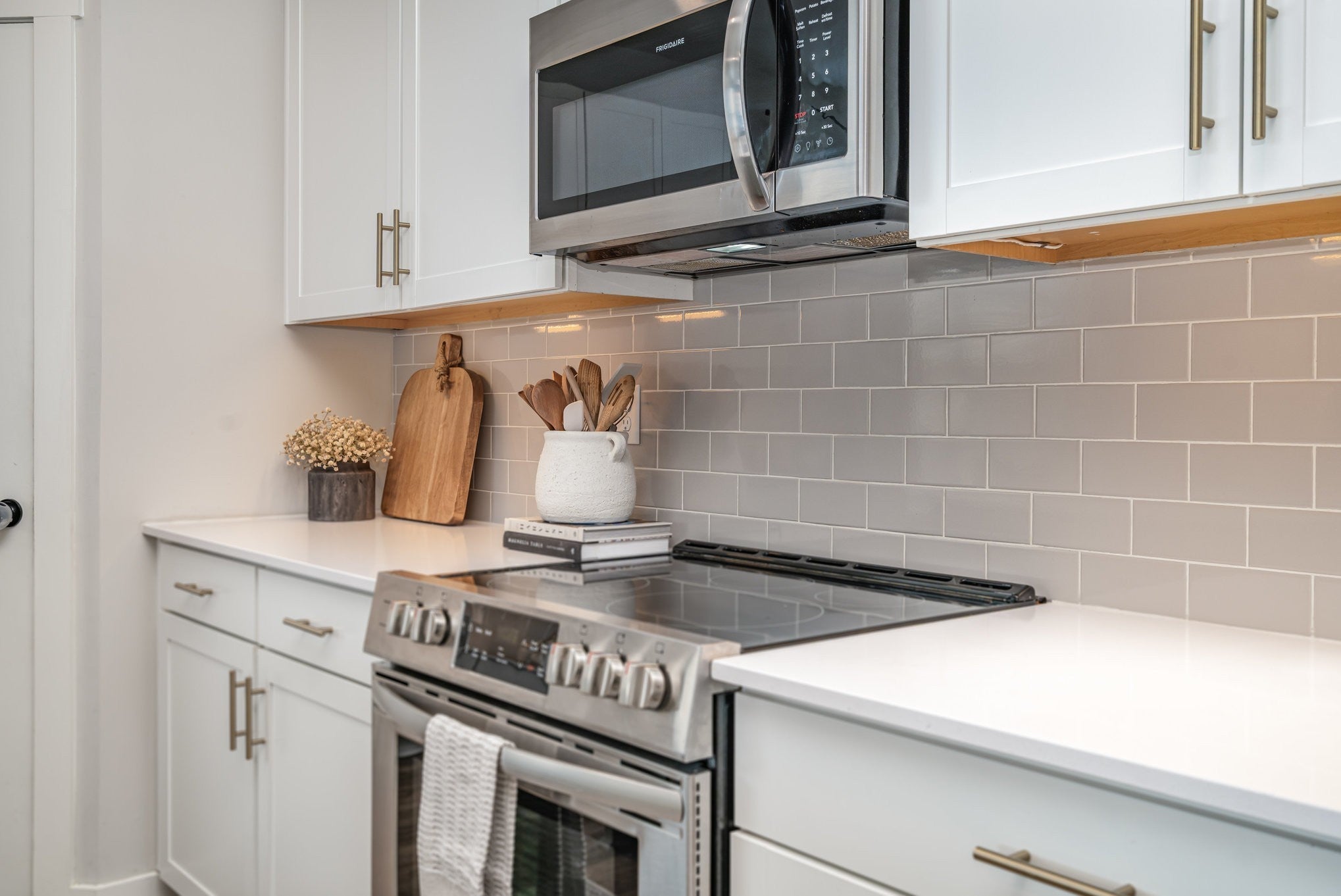 - Electric Oven, Electric Range, Dishwasher, Disposal, Dryer, Microwave, Refrigerator, Stainless Steel Appliance(s), Washer, Water Purifier